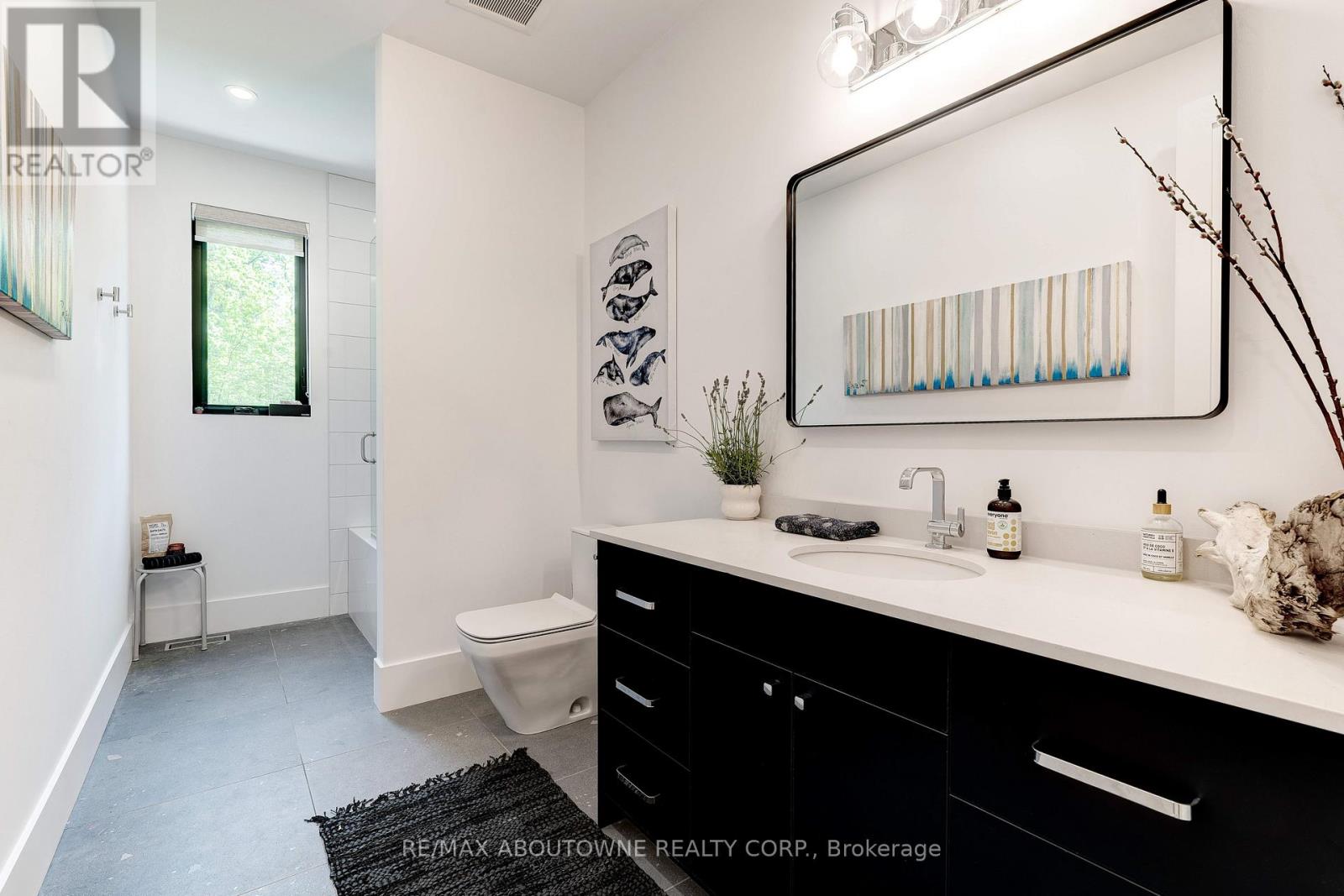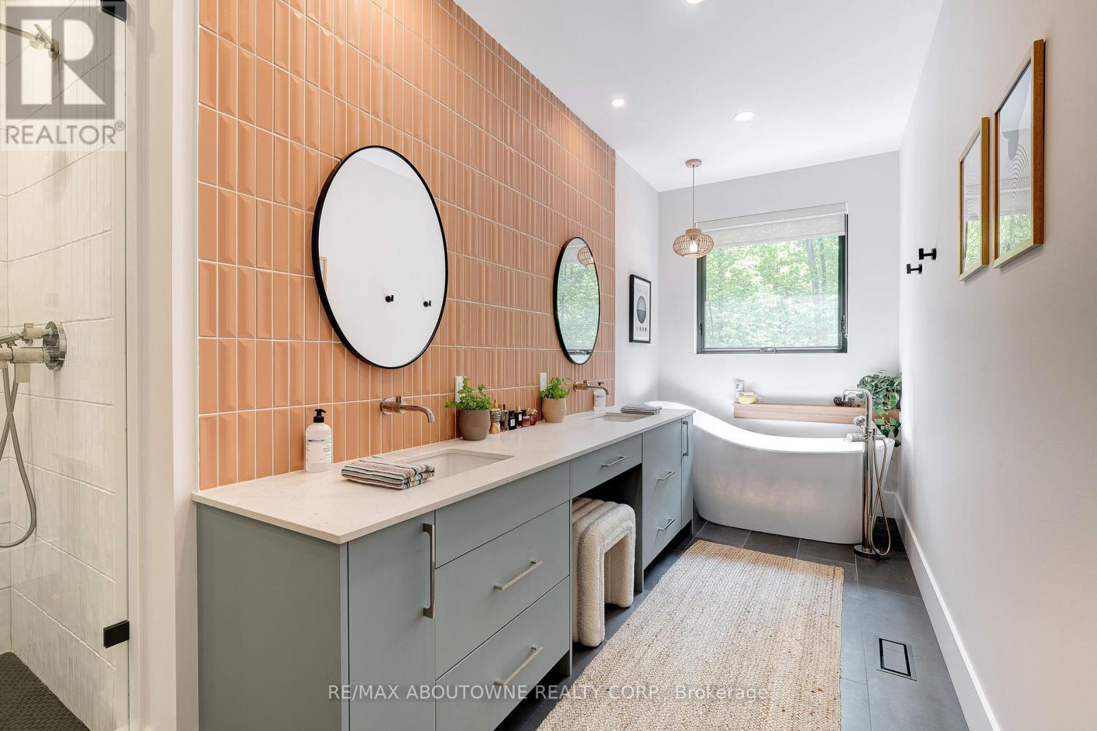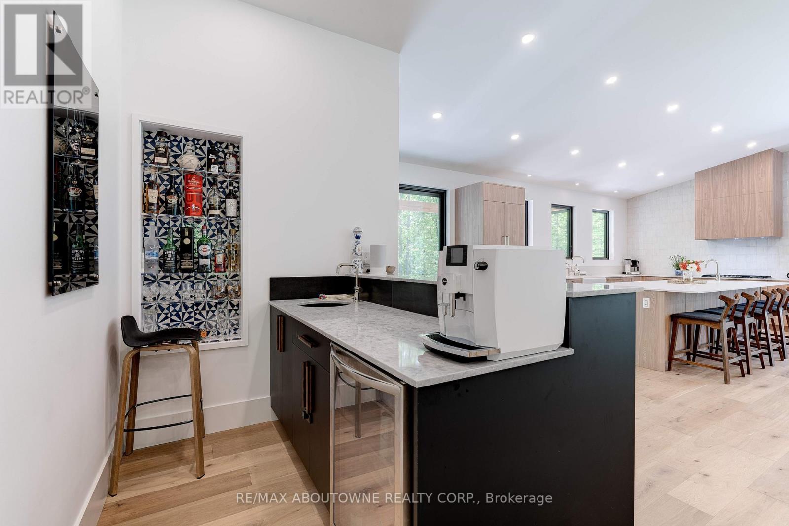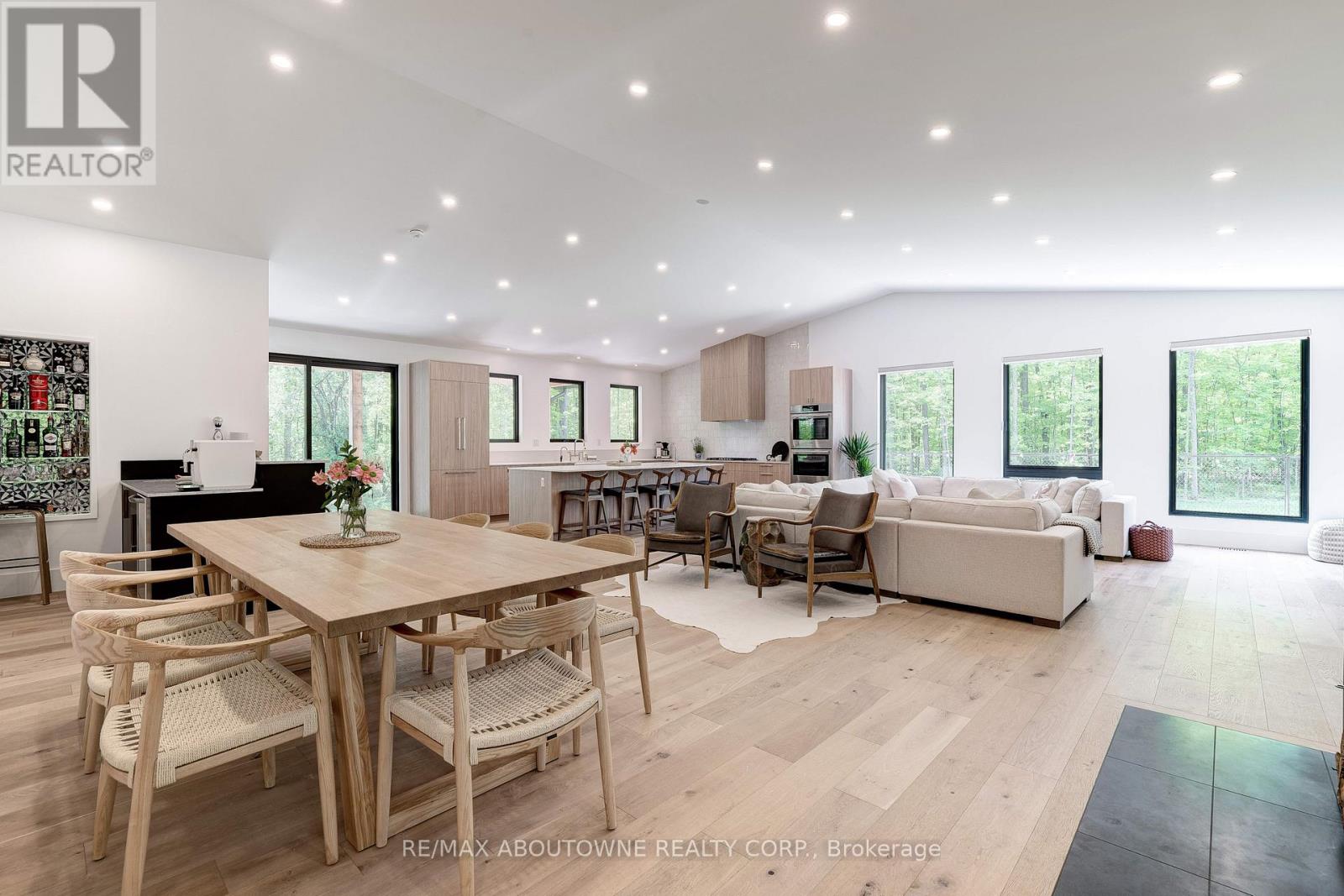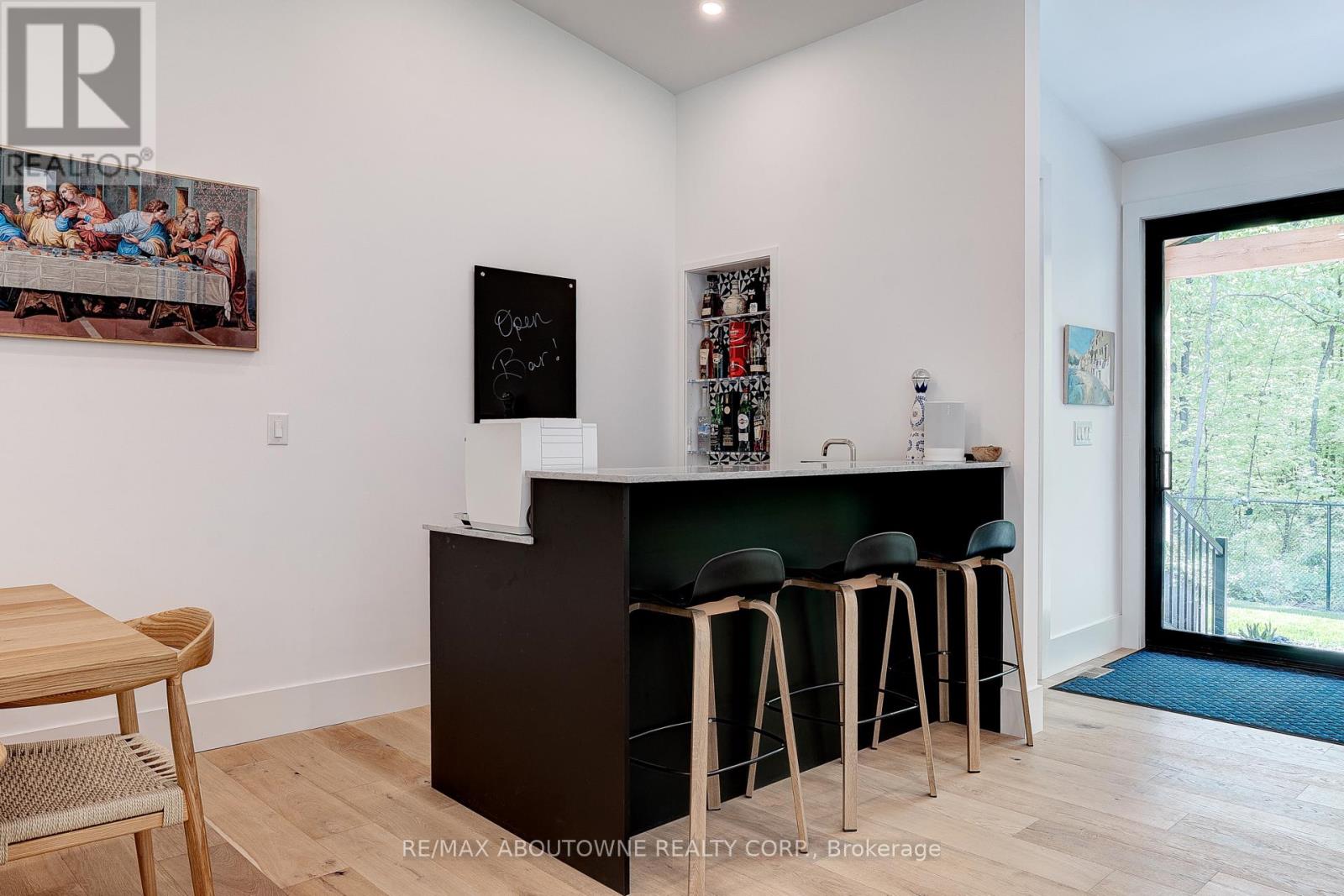 Welcome to The Forest Home! Live inside a painting with the changing seasons. A breathtaking custom estate nestled on 6.39 acres of pristine, wooded landscape, offering the ultimate in privacy, serenity, and refined living. Designed as a forever home and built to exacting standards, this exceptional bungalow is a masterclass in modern elegance and timeless design. From the moment you arrive, the home's architectural symmetry impresses with two double garages flanking the stately entrance for a dramatic and balanced curb appeal. Inside, approximately 3,250 sq. ft. of thoughtfully curated main floor living unfolds in an airy, open-concept layout. Inspired by Scandinavian simplicity and elevated farmhouse style, every space feels grounded in nature yet luxuriously appointed. Impeccable finishes and high-end upgrades are found throughout; too numerous to list here, but detailed in the attached brochure. Every detail has been carefully considered: from the gourmet kitchen, walk in pantry, coffee bar, every bathroom having a different theme with imported tiles and the rustic wood stove that boasts the most amazing roaring fires! Outdoor living is equally spectacular. Enjoy alfresco dining on the covered patio, unwind in the outdoor lounge, or soak in the hot tub under the stars and an entertainers dream and a private retreat in one. The expansive walk-out basement with separate entrance offers limitless potential for an in-law suite, studio, or bespoke entertaining space. The long driveway accommodates guests with ease, while the brand-new 40 ft well and septic system provide long-term peace of mind. Siding onto the 40 Mile Creek, this estate feels worlds away yet is just 6 minutes from charming downtown Grimsby and 30 minutes from the renowned wineries, boutiques, and fine dining of Niagara-on-the-Lake and Niagara Falls. With easy access to Hamilton and Burlington, this location perfectly balances seclusion and convenience. (id:4555)