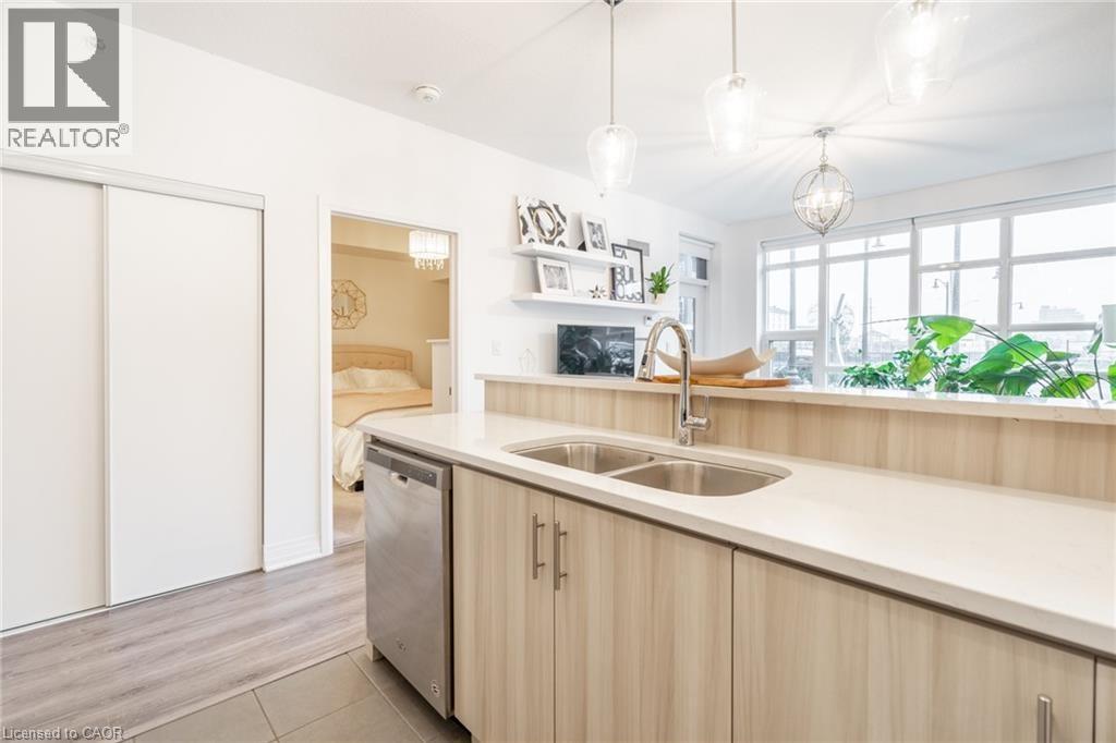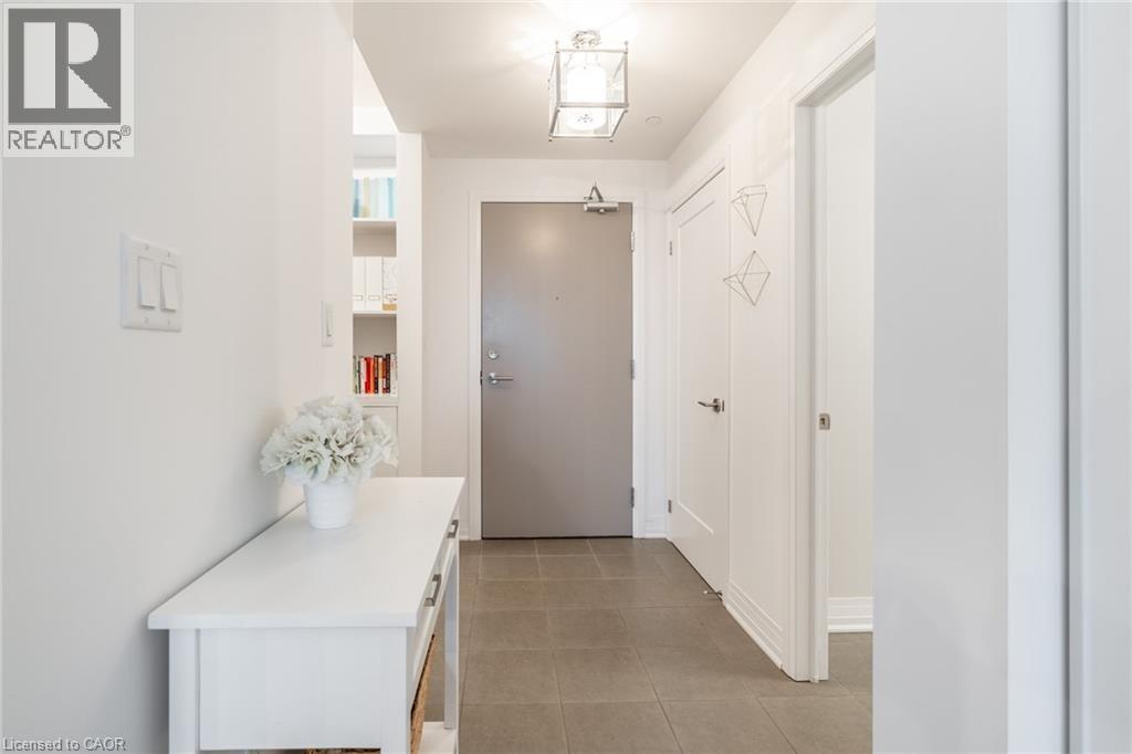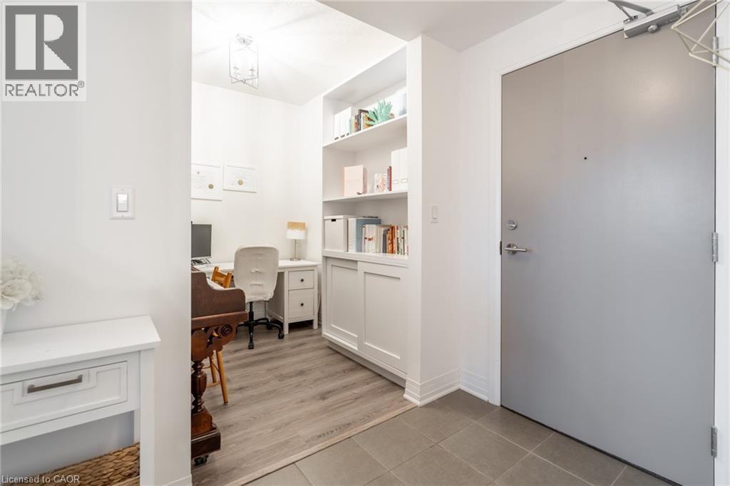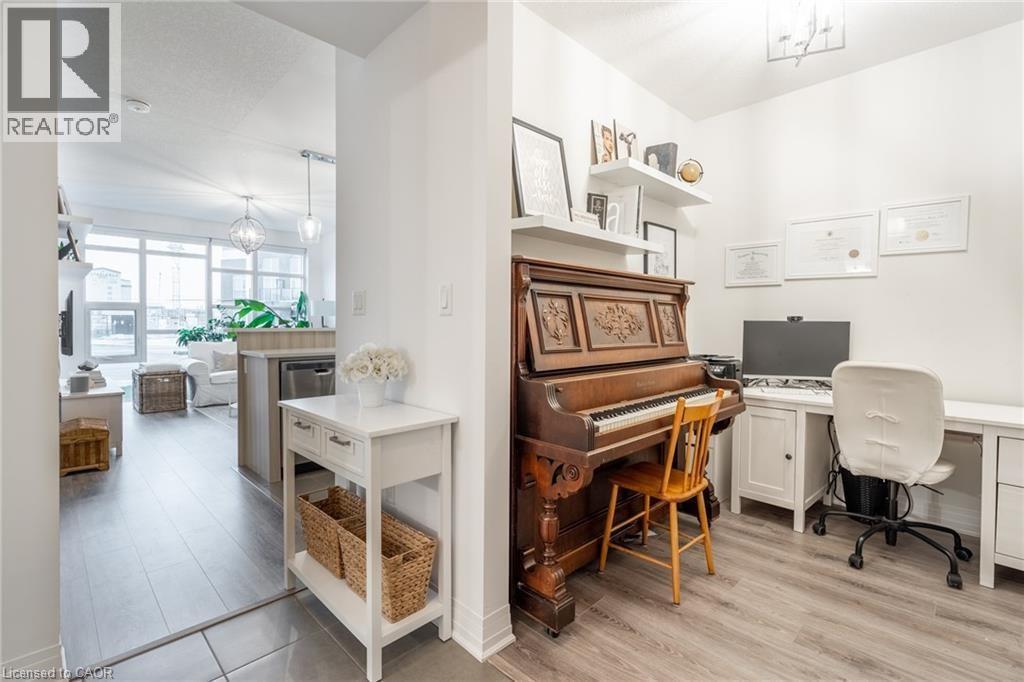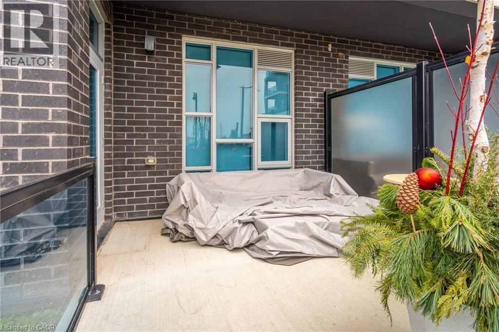 Welcome to Unit 102 at 10 Concord Place—where style meets waterfront living.Located in the heart of Grimsby Beach, this stunning 1 bed+den,1 bath ground-floor suite in Aquablu Condominiums offers 714 sq ft of upgraded,move-in-ready luxury.Enjoy floor-to-ceiling windows,high ceilings,sleek laminate flooring,designer lighting,quartz countertops,stainless steel appliances,hex tile backsplash,in-suite laundry,and custom blinds.The spacious bedroom features a walk-in closet with semi-ensuite access,while the versatile den with custom built-ins is perfect for a home office or guest space.Step out to your oversized private patio with easy access,plus 1 underground parking spot and a storage locker.Premium amenities include a fitness centre,party room,rooftop terrace,modern lobby,and visitor parking—just steps to shops,restaurants,lakefront trails,and quick QEW access.Waterfront living.Exceptional value.Book your showing today. (id:4555)