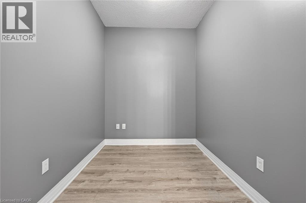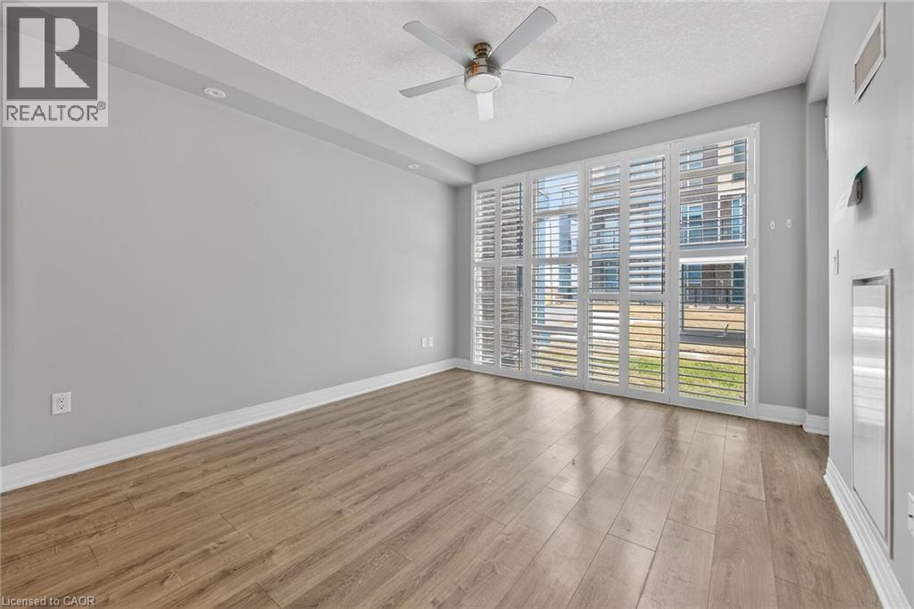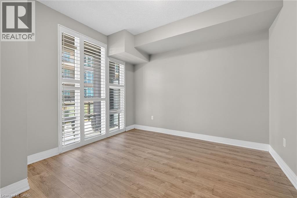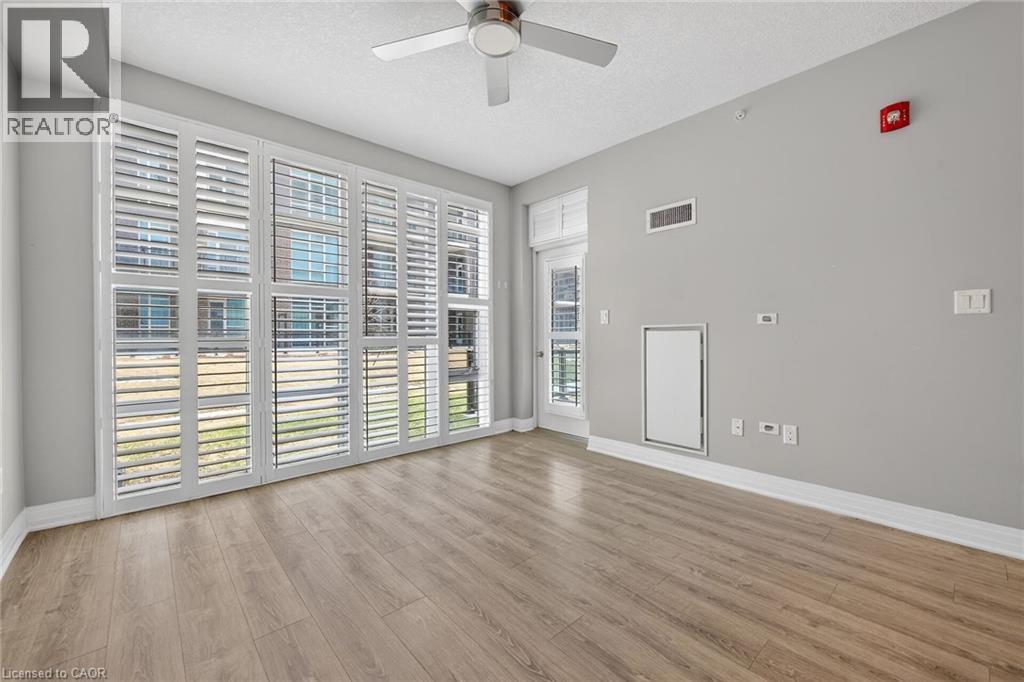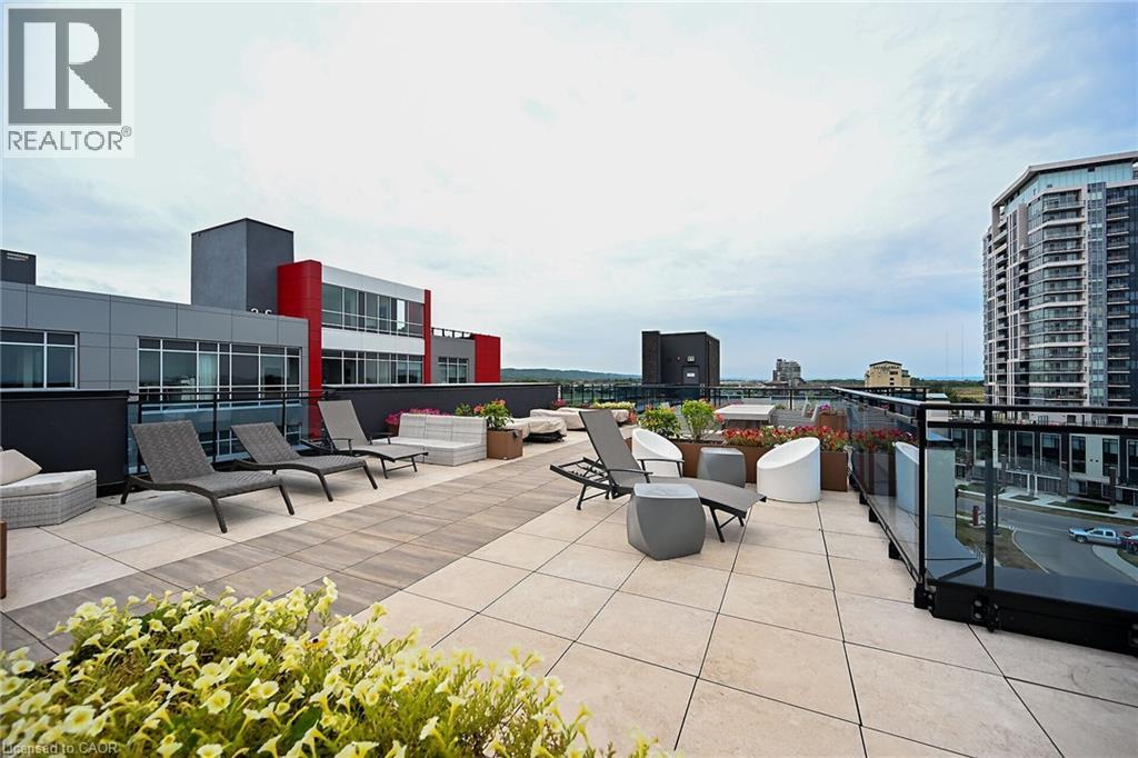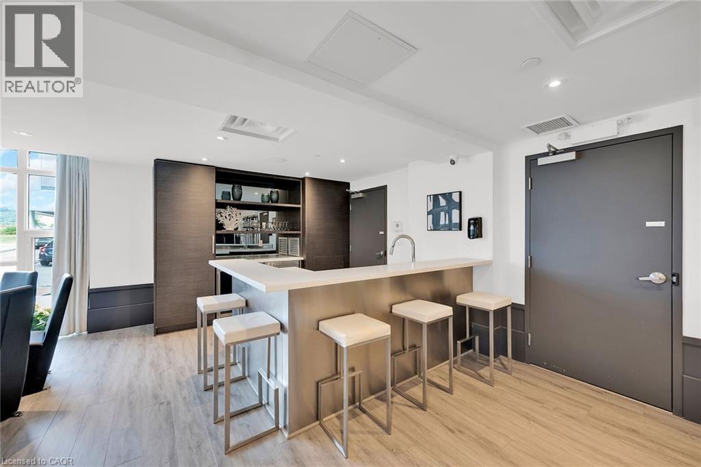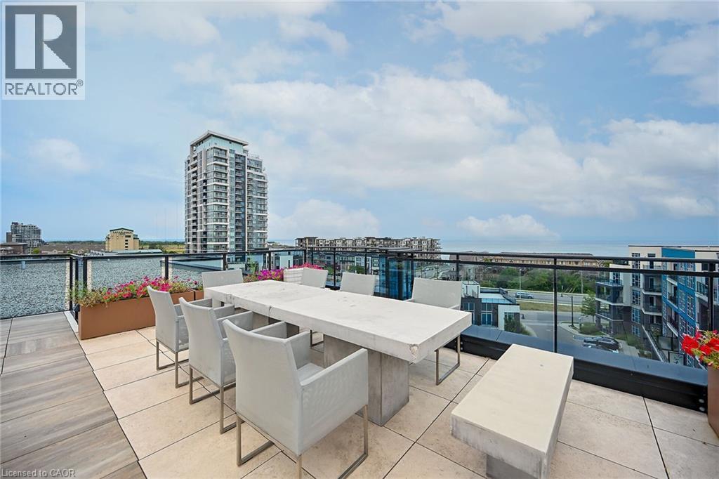 Bright and airy 1 bedrm + den condo located in the prestigious Aquablu building. Convenient main floor unit with private balcony and second entrance to the unit. Steps to the Lake and walking trails. The open concept living room, kitchen, foyer and den makes the unit feel larger than 620 sq/ft. Floor to ceiling window with custom California Shutters for privacy. Spacious living room and contemporary kitchen. Kitchen offers granite counters, rich dark stained cabinetry and a breakfast bar. Master bedroom retreat provides walk in closet and ensuite privilege. Den area is ideal for home office. Beautifully maintained building and common areas. Enjoy the exercise room, party room, meeting room, bicycle storage room, car wash station, roof top terrace and more. One underground parking space. Private patio area offers Lake views and overlooks green space between buildings. Ideal location for commuters with easy access to QEW. (id:4555)