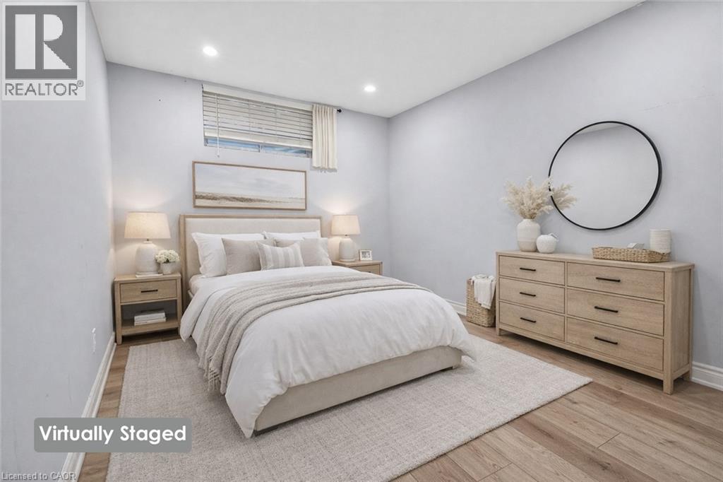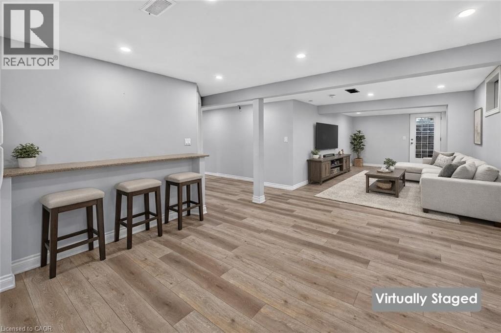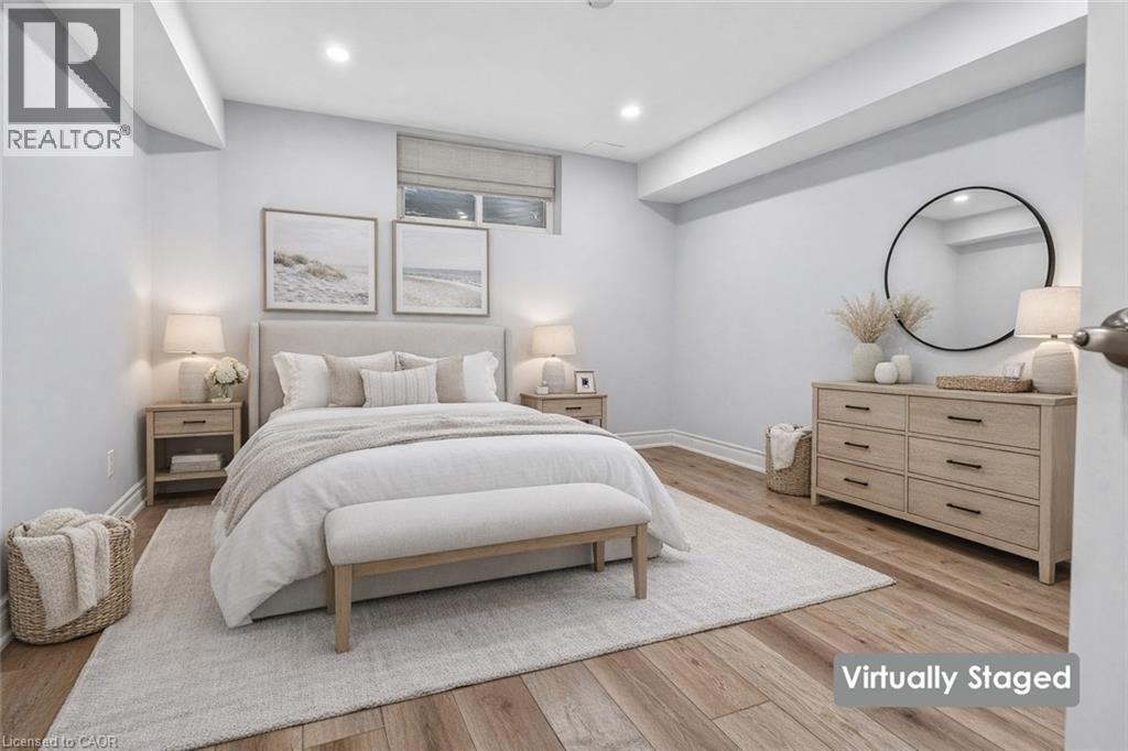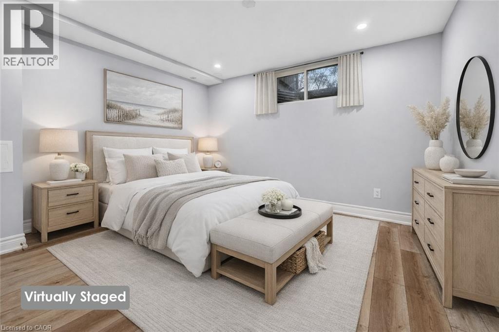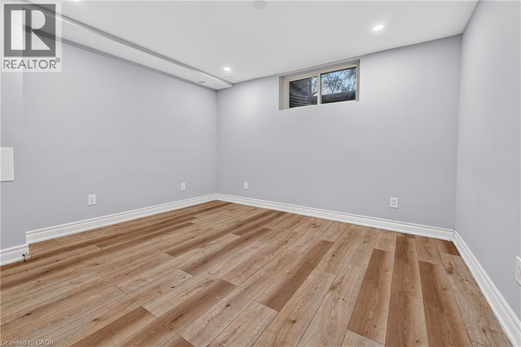 SPACIOUS LOWER-LEVEL LIVING…Set within the Blue Moon House on an impressive 210’ deep lot, this well-appointed lower-level apartment at 214 Main St E offers comfortable, functional living in the heart of Grimsby. With a PRIVATE ENTRANCE from the back of the bungalow, the space feels tucked away and inviting while still connected to everything the community has to offer. Inside, a hallway leads into an open kitchen and dining area finished with GRANITE counters, pot lights, and luxury vinyl flooring with added insulation for everyday comfort. The layout offers approximately 1,000 sq ft of living space, designed to balance practicality with warmth. Three well-sized bedrooms with closets, plus a 3-piece bathroom showcases a shower with porcelain tile flooring and shower surround. Laundry is in a shared common area, two parking spaces are included, and the tenant is responsible for 40% of utilities. No pets due to severe allergies and shared ventilation. Location is a standout. Enjoy a short WALK TO DOWNTOWN Grimsby, with close proximity to the hospital, schools, parks, and quick QEW access for easy commuting. Daily errands, community amenities, and a peaceful residential setting all come together in one well-positioned rental opportunity. Room sizes approximate. (id:4555)