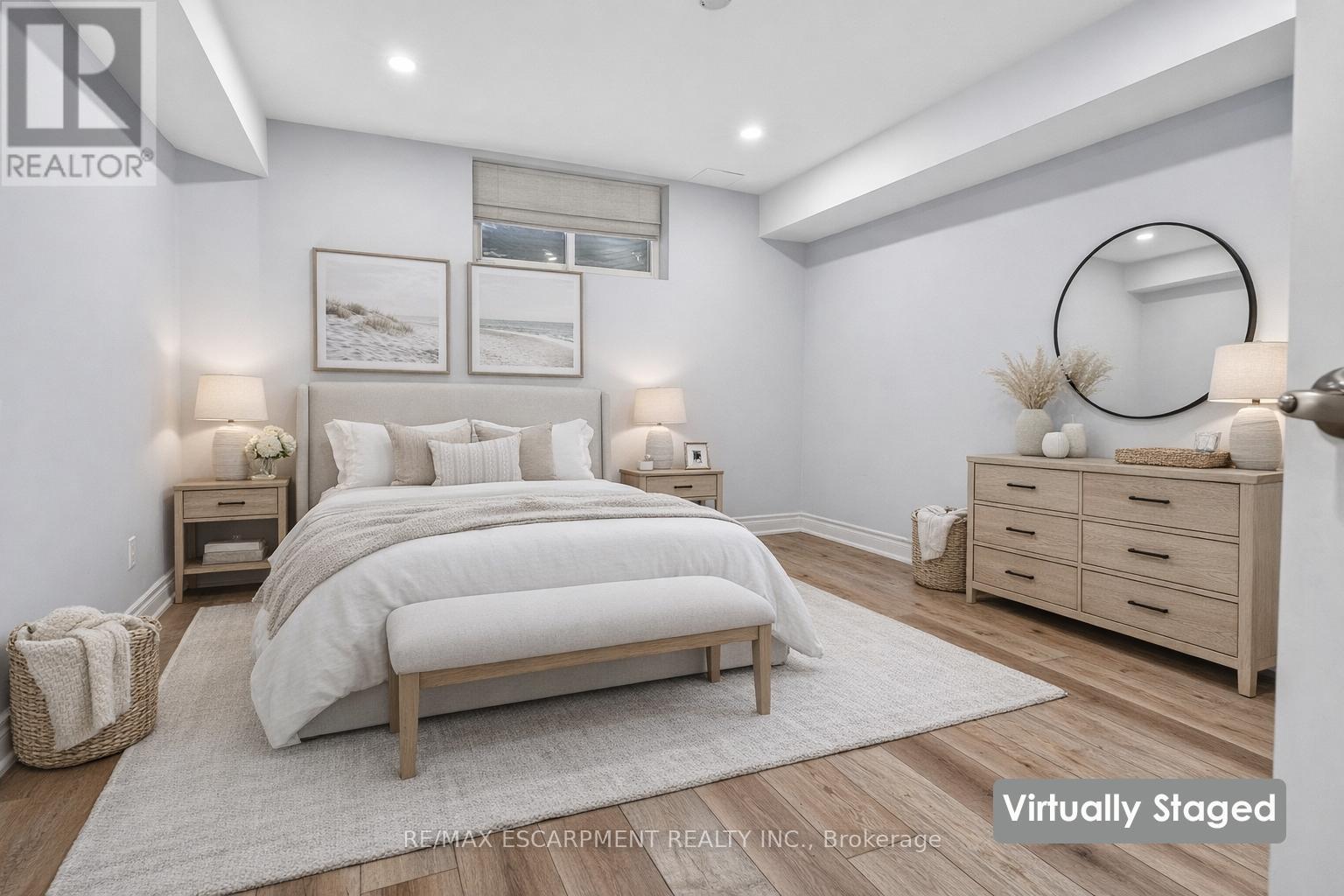 SPACIOUS LOWER-LEVEL LIVING...Set within the Blue Moon House on an impressive 210' deep lot, this well-appointed lower-level apartment at 214 Main St E offers comfortable, functional living in the heart of Grimsby. With a PRIVATE ENTRANCE from the back of the bungalow, the space feels tucked away and inviting while still connected to everything the community has to offer. Inside, a hallway leads into an open kitchen and dining area finished with GRANITE counters, pot lights, and luxury vinyl flooring with added insulation for everyday comfort. The layout offers approximately 1,000 sq ft of living space, designed to balance practicality with warmth. Three well-sized bedrooms with closets, plus a 3-piece bathroom showcases a shower with porcelain tile flooring and shower surround. Laundry is in a shared common area, two parking spaces are included, and the tenant is responsible for 40% of utilities. No pets due to severe allergies and shared ventilation. Location is a standout. Enjoy a short WALK TO DOWNTOWN Grimsby, with close proximity to the hospital, schools, parks, and quick QEW access for easy commuting. Daily errands, community amenities, and a peaceful residential setting all come together in one well-positioned rental opportunity. Room sizes approximate. (id:4555)