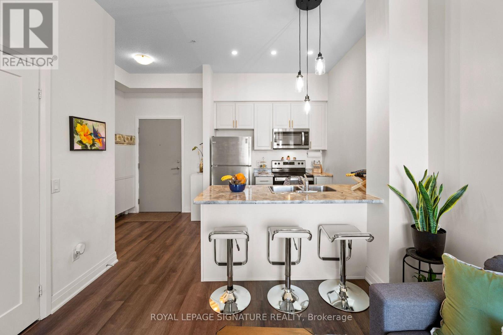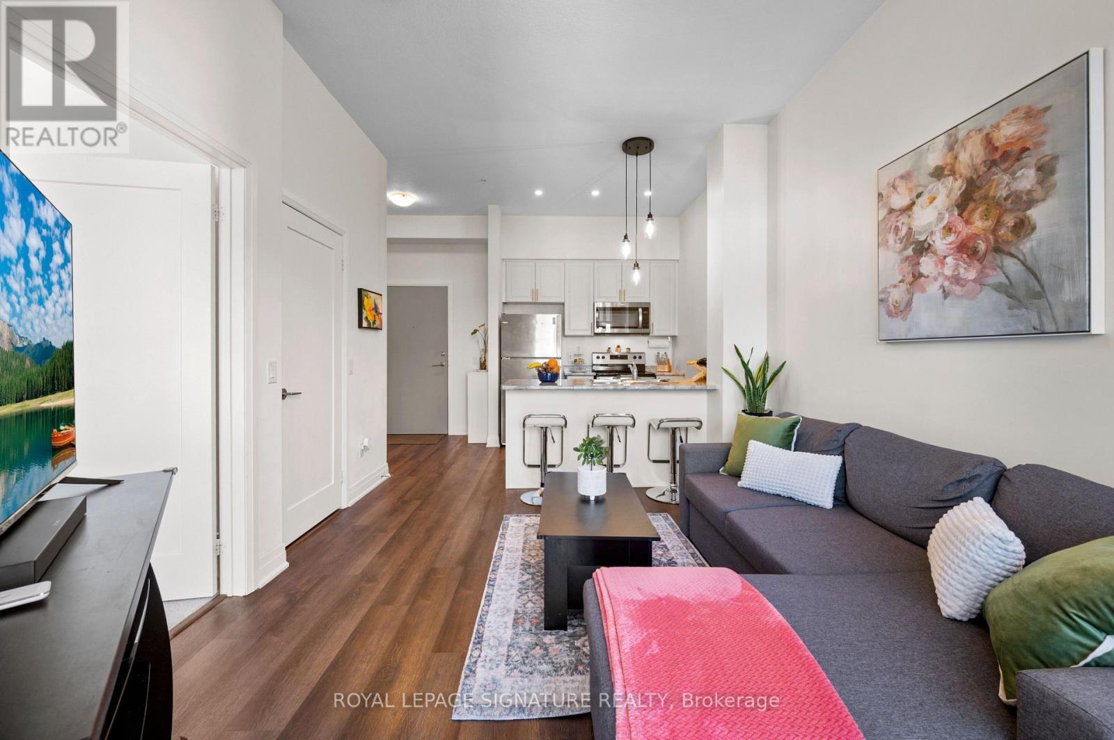 Welcome to Aquazul | Grimsby-on-the-Lake. Property Highlights: Executive 1-bedroom suite in sought-after Aquazul, Soaring 10-foot ceilings, Wall-to-wall windows with abundant natural light, Bright open-concept living & dining layout, Modern kitchen with upgraded cabinetry & breakfast bar, Sleek bathroom with standing glass shower, Private open balcony with refreshing lake breeze, Parking & locker included. This unit provides Resort-Style Amenities: Heated outdoor pool with cabanas, Fully equipped fitness centre & yoga studio, Private theatre room & games lounge, Party/social room with full kitchen, Landscaped courtyard with BBQ area, Secure underground parking & ample visitor parking. Not only that, it's in a Prime Location: Steps to boutique shops, restaurants & lakefront boardwalk, Easy QEW access, Approx. 1.5 km to future Grimsby GO Station, Views of Lake Ontario & CN Tower on clear days from the lake board walk. This is a place where every day feels like a getaway. (id:4555)