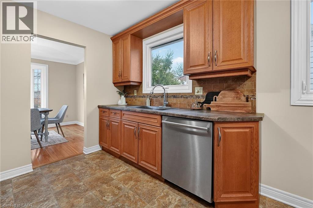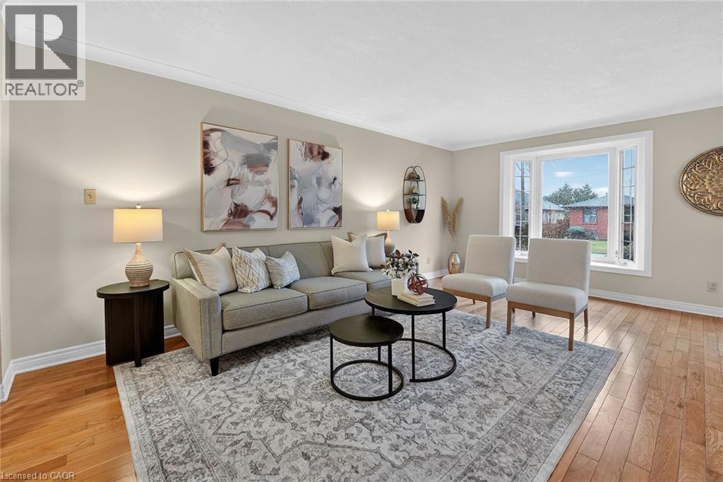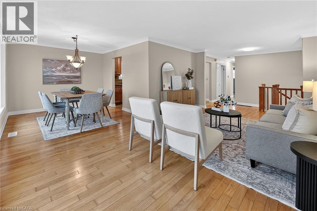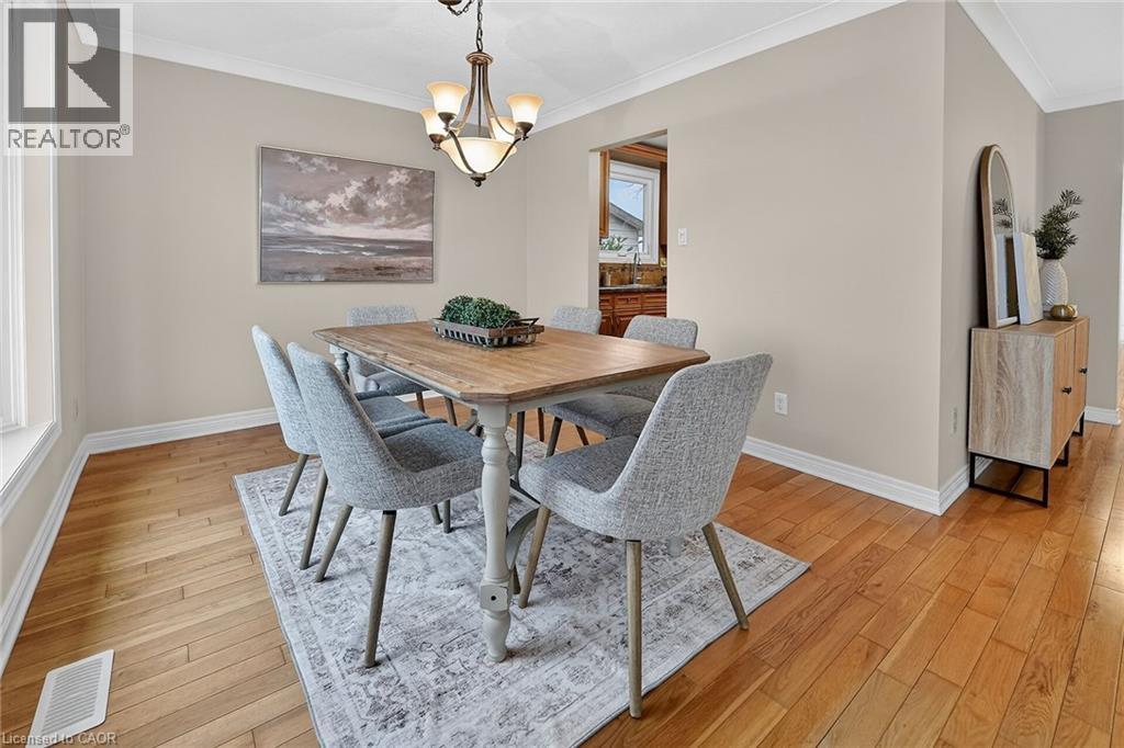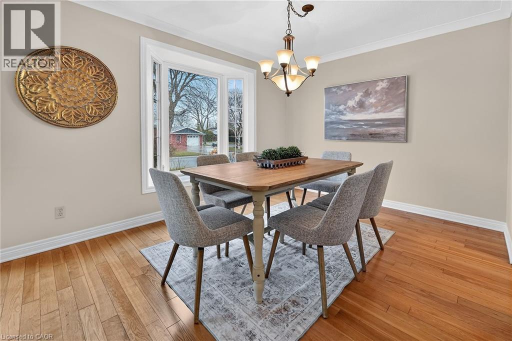 Welcome to 9 Sidare Court, an impeccably maintained raised bungalow nestled on a quiet court in one of Grimsby’s most desirable neighbourhoods. Bright, spacious, and truly move-in ready, this home offers 3 + 1 bedrooms, 2 full bathrooms, and a thoughtfully designed layout perfect for comfortable everyday living. A spacious foyer welcomes you to the main level, where you’ll find a generous living and dining area with hardwood flooring, highlighted by two oversized bay windows that fill the space with natural light. The main floor also features an eat-in kitchen, four-piece bathroom, and three lovely bedrooms with new carpeting, including a spacious primary bedroom. The fully finished lower level adds approximately 850 sq. ft. of additional living space, offering exceptional versatility. Here you’ll find a large recreation room with a cozy gas fireplace, an updated three-piece bathroom, a sizable games or hobby room, and an additional room with a large window that could easily serve as a bedroom, office, or guest space. Step outside to your private backyard retreat, complete with a well-maintained in-ground pool. The pump was replaced approximately two years ago, and the liner—installed around 2015—remains in good condition. The home also features an attached single garage and a large aggregate and stamped concrete driveway, providing ample parking. Mature landscaping enhances the home’s curb appeal, creating a welcoming first impression. Ideally located just minutes from Fifty Point Conservation Area, the beachfront, scenic walking trails, dining, shopping, Costco, and convenient highway access. This home is truly flexible, perfect for families, downsizers, or anyone seeking space, comfort, and location all in one. (id:4555)