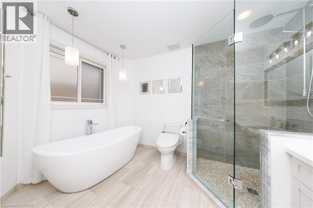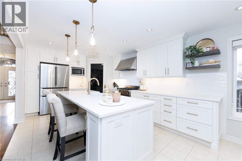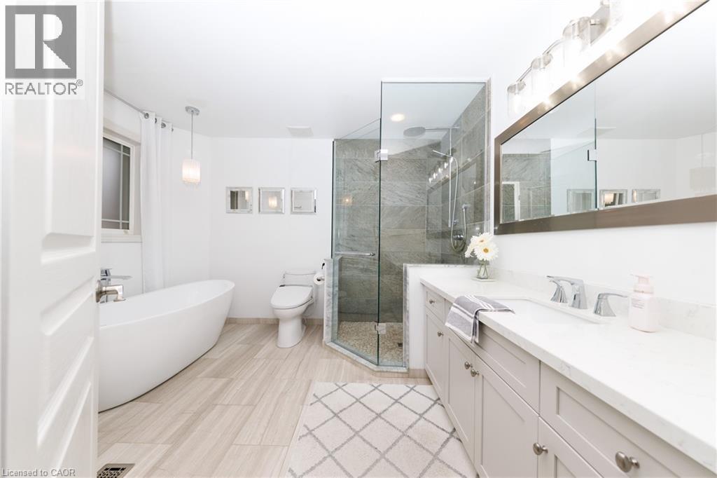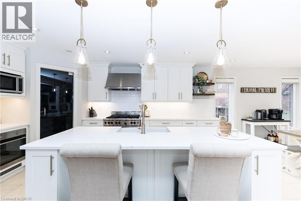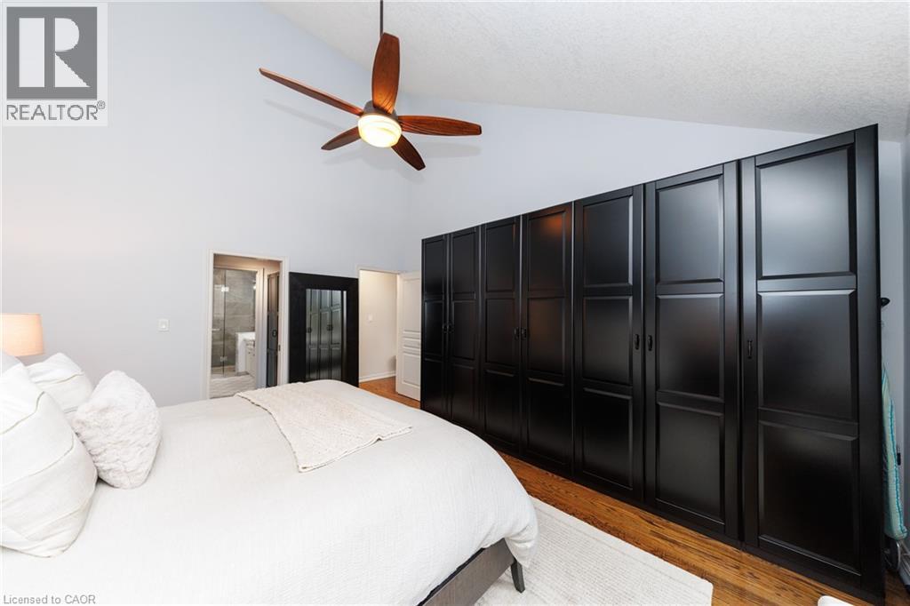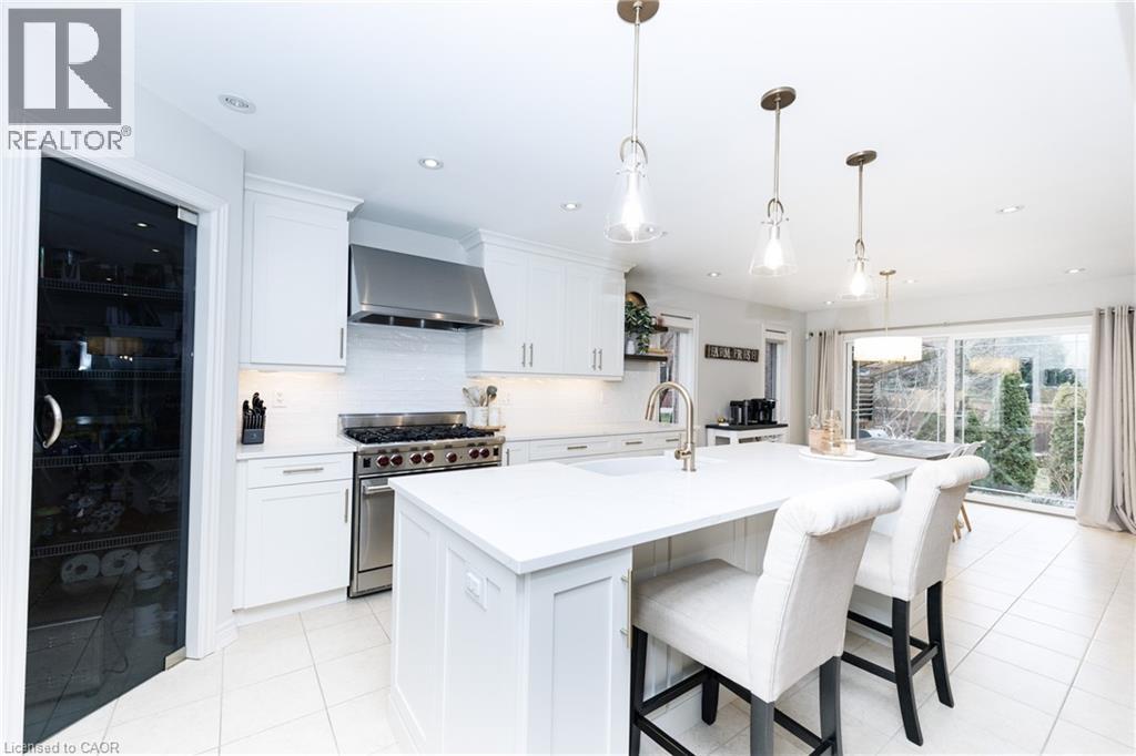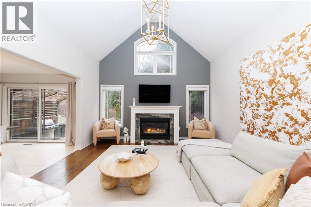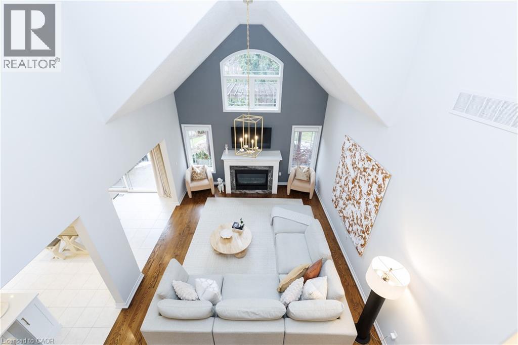 Experience the height of luxury living in this stunning bungaloft, ideally situated on a quiet cul-de-sac in Grimsby near the base of the picturesque Niagara Escarpment. Expertly crafted, this exceptional home showcases high-end finishes and meticulous attention to detail, seamlessly blending style, functionality, and sophistication throughout. Be immediately impressed as you step into the inviting foyer and pass the formal dining room before entering the ultra-spacious great room. Dramatic 20-foot vaulted ceilings, a cozy gas fireplace, and a breathtaking open staircase. Expansive windows flood the space with natural light while offering serene views creating a rare sense of privacy and tranquillity. Beautifully updated chef’s kitchen, featuring top-of-the-line built-in appliances including double ovens and. WOLF range. A walk-in pantry, custom cabinetry, quartz countertops, a farmhouse sink, and a generous breakfast bar. Adjacent is a spacious dining area with oversized sliding doors that open to a thoughtfully designed outdoor living area—complete with an outdoor kitchen, built-in BBQ, decorative concrete patio, and pergola—perfect for effortless outdoor entertaining. Retreat to the main-floor primary suite, a private sanctuary featuring vaulted ceilings, custom built-in cabinetry, and a walk-in closet that leads to a spa-inspired ensuite with a floor-to-ceiling glass shower and a freestanding soaker tub designed for ultimate comfort and relaxation. Upstairs, a charming loft overlooks the main living area. Two well-appointed bedrooms and a 4-piece bathroom with ensuite privilege provide a comfortable space for family or guests. The basement recreation room offers additional space for relaxation, entertainment, or a home theatre setup. With its exceptional design, premium finishes, and serene escarpment setting, this remarkable home offers a rare opportunity to enjoy refined living in one of Grimsby’s most desirable neighbourhoods. (id:4555)