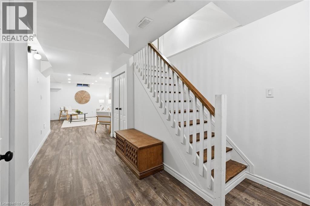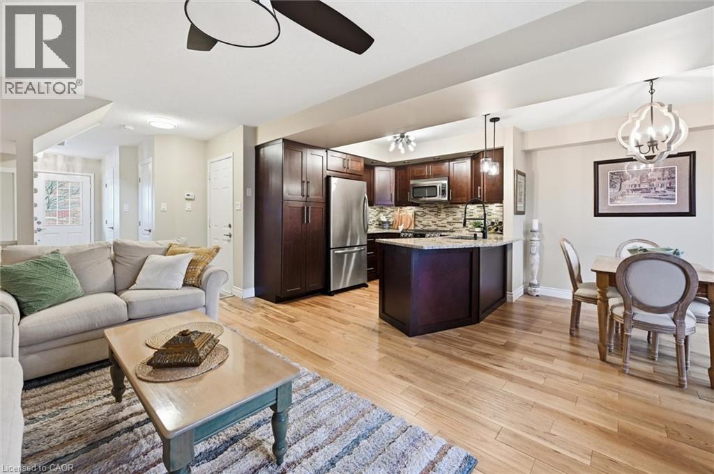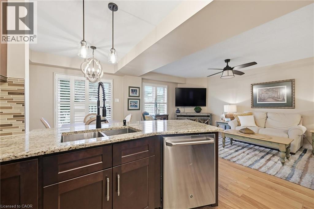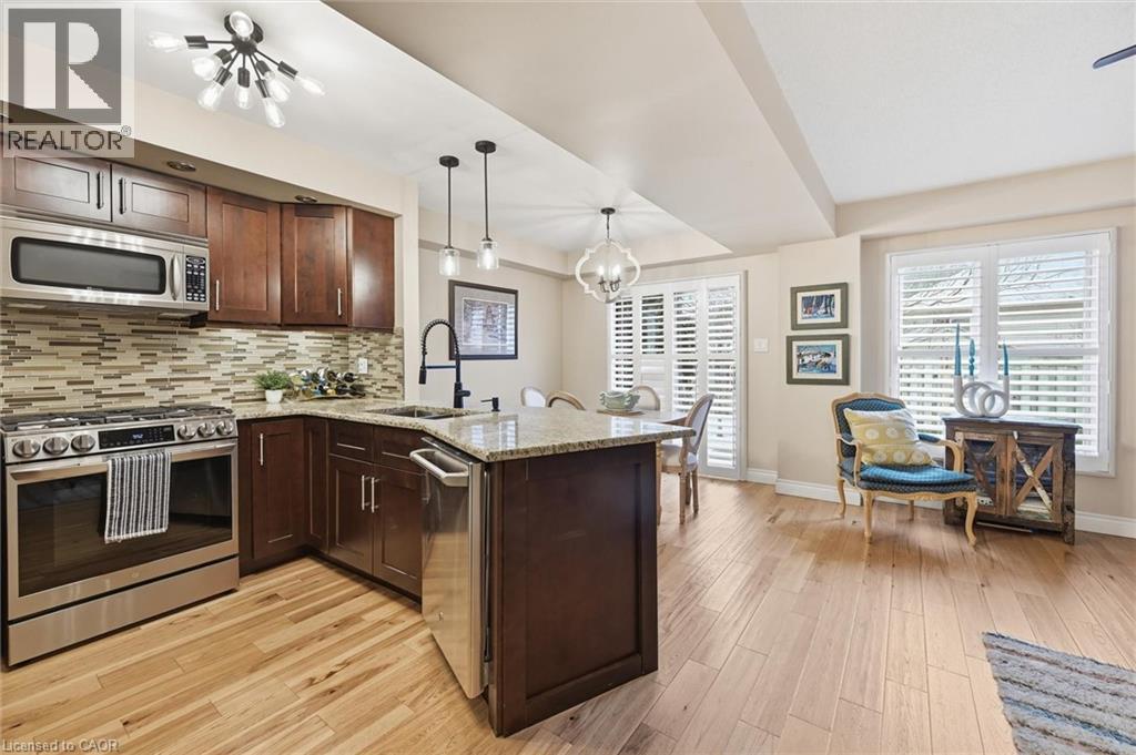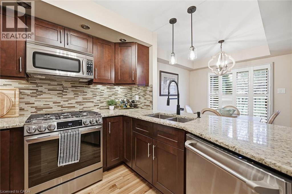 Welcome to this 3-bedroom, 3-bathroom end-unit condo townhouse tucked into a quiet, private corner of the sought-after Westbrook Village community in west Grimsby. With extra privacy and a bright, open layout, this home offers comfortable living in a fantastic family-friendly location. The main level features hardwood flooring and a modern kitchen with granite countertops, upgraded sink and faucet, stainless steel appliances, and a gas stove. The dining area opens to a beautifully landscaped backyard with a patio, perfect for summer BBQs and outdoor relaxation. Upstairs you’ll find three comfortable bedrooms, including a spacious primary suite with two closets, both featuring custom organizers. A second-floor laundry room adds everyday convenience, along with a well-appointed 4-piece bathroom. The recently renovated finished basement expands the living space with vinyl plank flooring, LED pot lights, and a spa-inspired 3-piece bathroom—ideal for a home office, family room, or guest retreat. Additional features include a stamped concrete front walkway, natural gas BBQ hookup, and an owned hot water tank. This location is hard to beat—just a 1-minute walk to Chestnut Park and Aspen Park, minutes to Blessed Trinity Catholic Secondary School, and the Peach King Community Centre, offering a gym, indoor walking track, and outdoor splash pad. You're also just a short drive to downtown Grimsby, lakefront trails, wineries, and the QEW, making commuting easy while enjoying the charm of Niagara living. A wonderful opportunity for families, professionals, and commuters looking for comfort, privacy, and convenience. (id:4555)