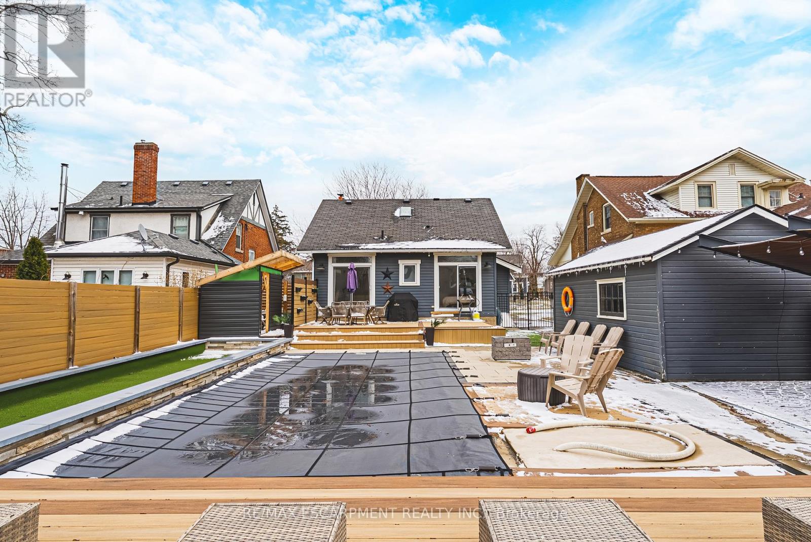 Summer awaits you, at 6 Nelles Blvd! Ideally situated in one of Grimsby's most sought-after neighbourhoods. Surrounded by mature trees and offering stunning escarpment views, this location provides the perfect blend of tranquility and convenience, just moments from all amenities. Set on an oversized lot, the backyard is a true private oasis. In 2021 a full $200 hundred thousand dollar backyard renovation was completed. Enjoy an in-ground saltwater pool, bocce ball court, composite decking, and a cozy gas fireplace-perfect for entertaining or relaxing. With so many exceptional features, this outdoor space truly has it all. The beautifully finished, move-in ready home features two main floor bedrooms, each with walkouts to the backyard. The upper level boasts a luxurious primary suite complete with a skylight and a private ensuite, creating a bright and serene retreat. The gourmet kitchen is thoughtfully designed, featuring high-end finishes and a cozy built-in breakfast nook-perfect for casual dining and everyday living. The living room is complete is with a wood burning fireplace, perfect for a night in. Set on an oversized lot, the backyard is a true private oasis. Enjoy an in-ground saltwater pool, this outdoor space truly has it all. Ample parking for up to five vehicles adds to the home's exceptional functionality and convenience. (id:4555)