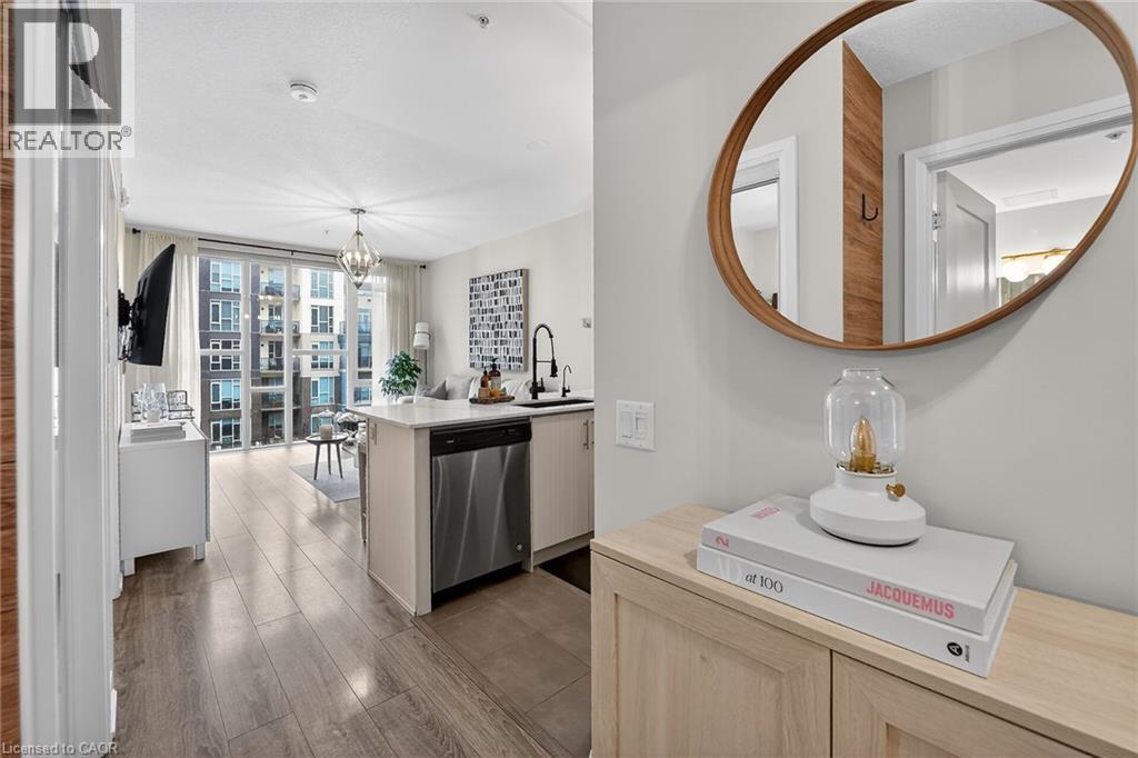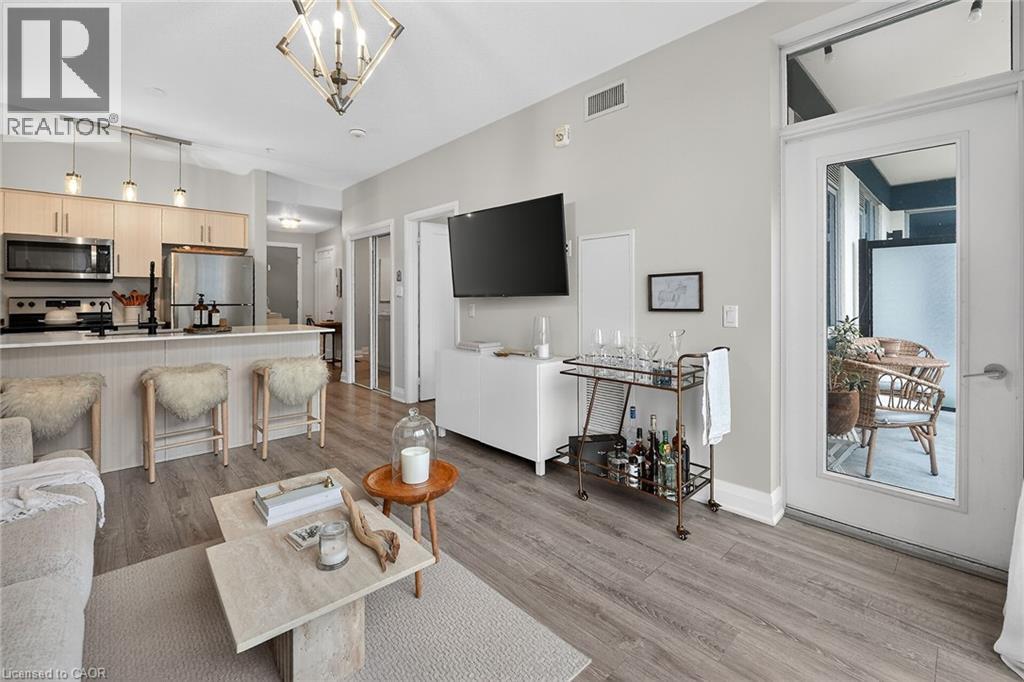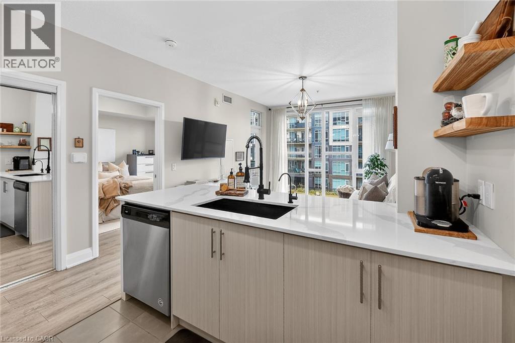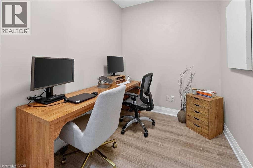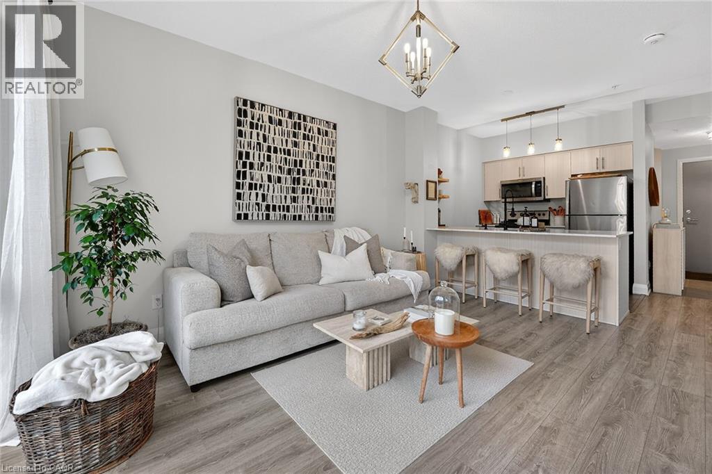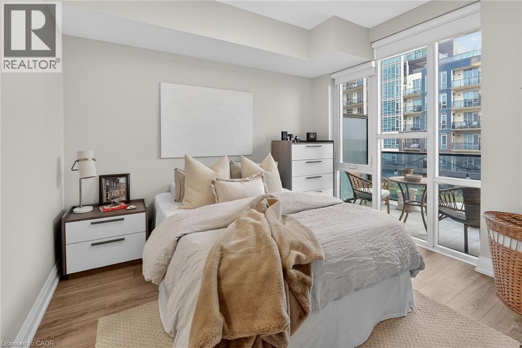 Welcome to Aquzul Lakeside Condominiums in the highly sought-after Grimsby on the Lake community. This stunning 1-bedroom plus den suite showcases soaring ceilings and expansive floor-to-ceiling windows, filling the space with natural light while offering breathtaking views of the lake and beautifully landscaped, resort-style courtyard. The thoughtfully designed open-concept layout features in-suite laundry, a modern kitchen complete with quartz countertops, stainless steel appliances, and a convenient breakfast bar—perfect for both everyday living and entertaining. The bright living area extends seamlessly to a private balcony, providing the ideal setting to relax and take in the picturesque surroundings. The spacious primary bedroom offers a walk-in closet and semi-ensuite access to a stylish 4-piece bathroom. The versatile den provides the perfect space for a home office, guest area, or additional living space. Residents enjoy access to an impressive array of premium amenities, including an outdoor pool, landscaped courtyard with BBQ areas, fitness centre, party/meeting room, theatre room, and more. Ideally located just steps from the waterfront, restaurants, and cafés, with convenient highway access for commuters. Includes one underground parking space and storage locker. (id:4555)