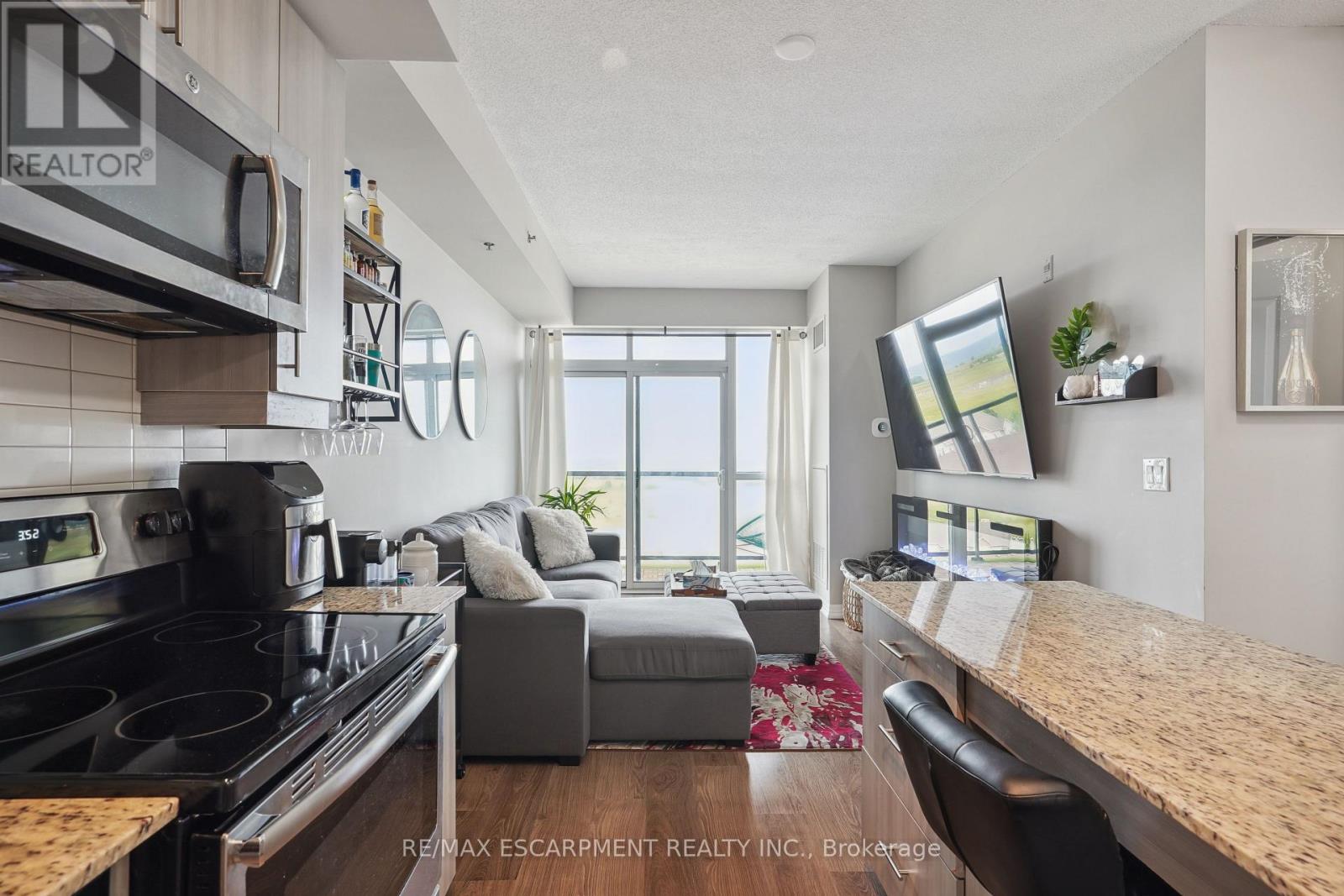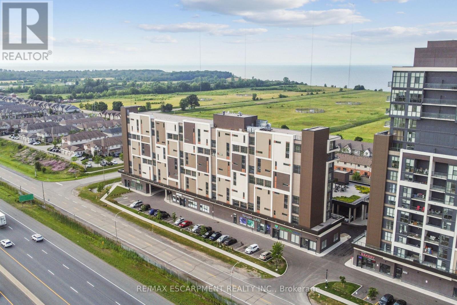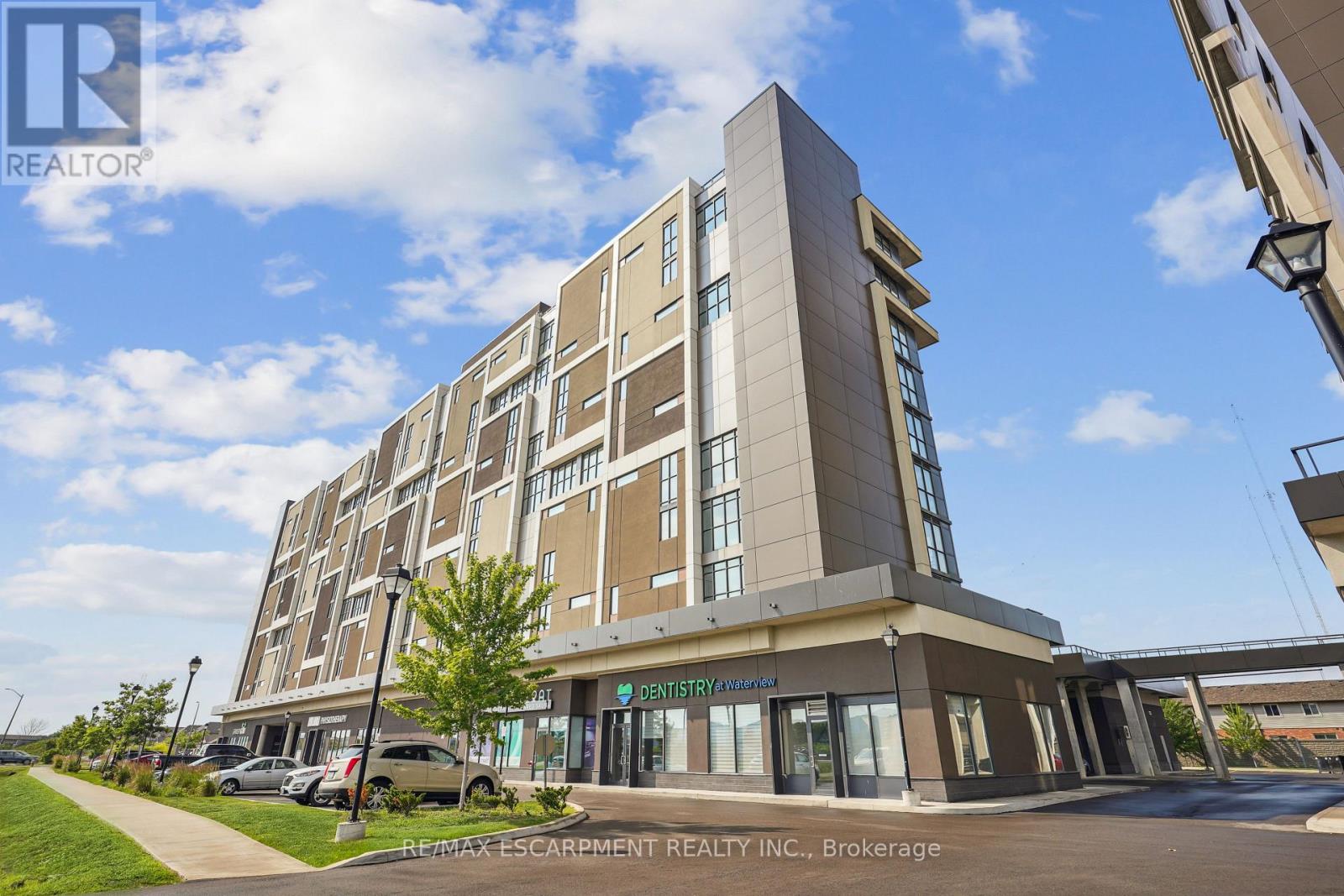 Welcome to this beautifully appointed 1-bedroom plus den condo, perfectly situated in the vibrant and growing community of Grimsby on the Lake. Offering approximately 670 sq ft of thoughtfully designed living space, this modern unit features a functional open-concept layout, seamlessly combining the kitchen and living area-ideal for both everyday living and entertaining. The bedroom is complemented by a well-designed 4-piece bathroom, while the versatile den provides the perfect space for a home office or guest area. A convenient 2-piece powder room adds extra comfort for visitors. Enjoy the ease of in-suite laundry, along with the added value of underground parking and a private storage locker. Take in scenic views from your living space and enjoy access to fantastic building amenities, including a large party room and a beautiful rooftop terrace-perfect for relaxing or hosting gatherings. Located just minutes from the highway, shopping, dining, and the waterfront, this condo offers a great blend of lifestyle and convenience. An excellent opportunity for first-time buyers and investors alike. (id:4555)