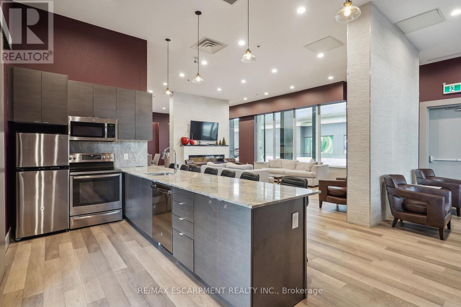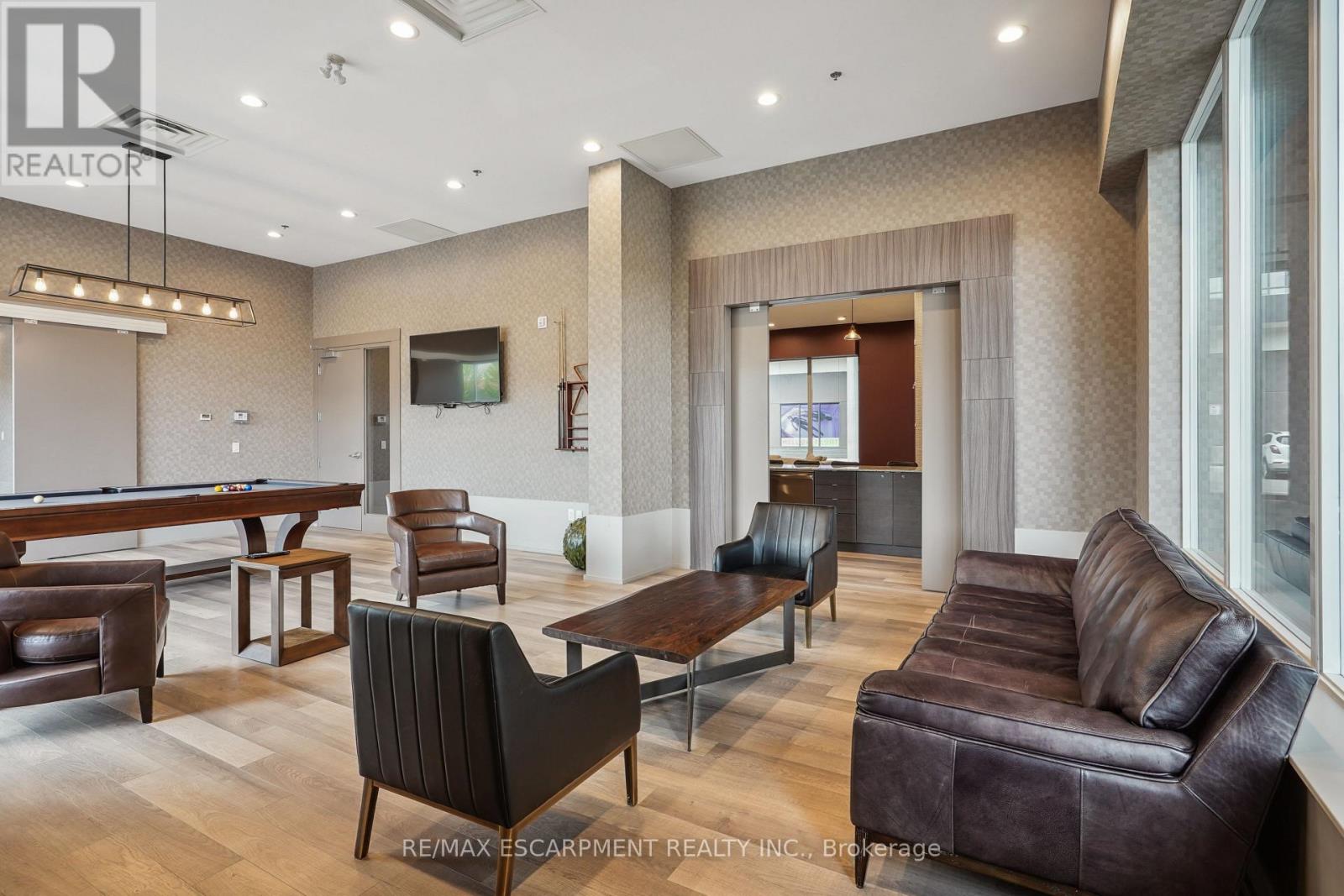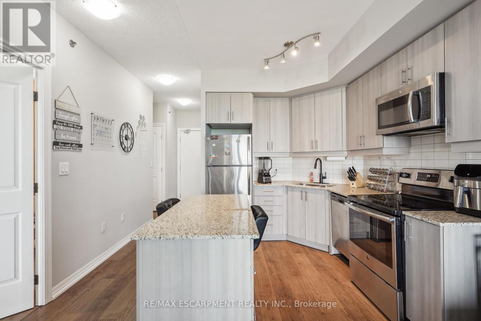 Welcome to this beautifully appointed 1-bedroom plus den condo, perfectly situated in the vibrant and growing community of Grimsby on the Lake. Offering approximately 670 sq ft of thoughtfully designed living space, this modern unit features a functional open-concept layout, seamlessly combining the kitchen and living area-ideal for both everyday living and entertaining. The bedroom is complemented by a well-designed 4-piece bathroom, while the versatile den provides the perfect space for a home office or guest area. A convenient 2-piece powder room adds extra comfort for visitors. Enjoy the ease of in-suite laundry, along with the added value of underground parking and a private storage locker. Take in scenic views from your living space and enjoy access to fantastic building amenities, including a large party room and a beautiful rooftop terrace-perfect for relaxing or hosting gatherings. Located just minutes from the highway, shopping, dining, and the waterfront, this condo offers a great blend of lifestyle and convenience. An excellent opportunity for first-time buyers and investors alike. (id:4555)