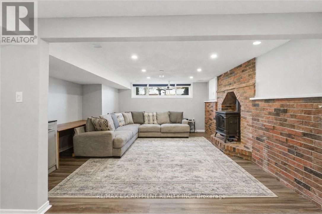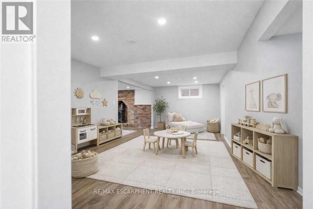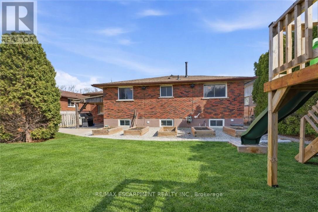 Welcome to this brick bungalow in a prime Grimsby location just steps to the waterfront. Featuring an updated kitchen and a bright, spacious living room, this home offers 3+1 bedrooms and 2 full bathrooms. The finished basement includes a cozy rec room with exposed brick, a gas fireplace, and a projector-perfect for relaxing or entertaining. Enjoy the large, private backyard complete with an incredible playground-ideal for families-along with the convenience of an attached garage. Located within walking distance to Nelles Beach Park, Lakeview Terrace Park and the Grimsby Marina, with quick QEW access for commuters. This is the perfect home for a young family, a first time buyer or someone looking to upsize from their condo. (id:4555)