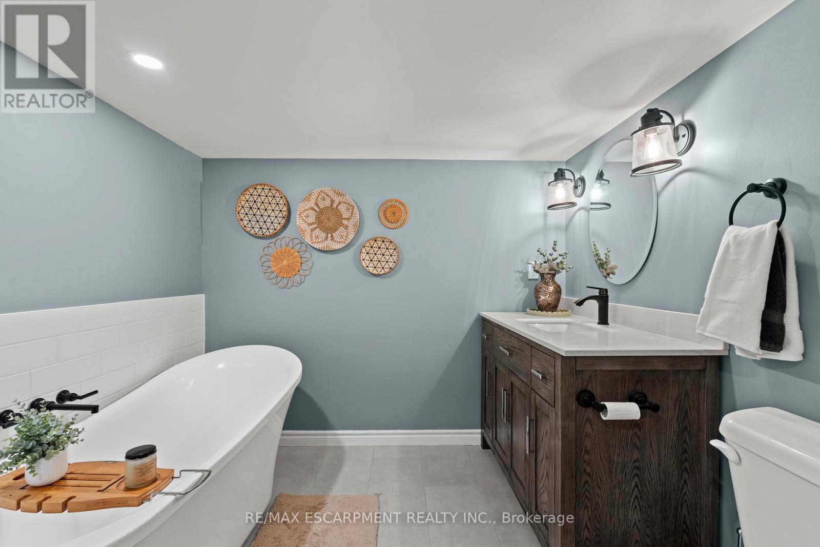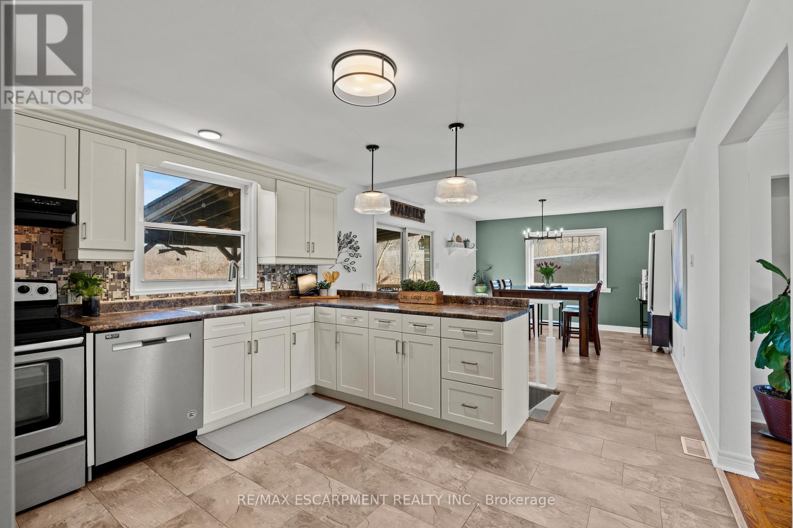 Tucked away on a quiet dead-end street beneath the escarpment, this sprawling all-brick bungalow offers over 3,000 sq ft of thoughtfully designed living space. Set on an expansive 110 x 120 ft lot with no rear neighbours, the setting is as private as it is peaceful. Inside, the home features 3+2 bedrooms, a functional main floor laundry, and a beautifully defined dining room, perfect for hosting and everyday living. The layout offers both openness and intention, anchored by two wood-burning fireplaces that bring warmth and character to multiple living spaces. The kitchen walks out to a covered deck overlooking the private backyard, complete with a hot tub, creating a seamless indoor-outdoor experience ideal for relaxing or entertaining. With abundant storage throughout and parking for up to 8 vehicles, this home delivers both comfort and practicality. A rare opportunity to live in a quiet, established pocket while enjoying space, privacy, and the natural beauty of the escarpment. (id:4555)