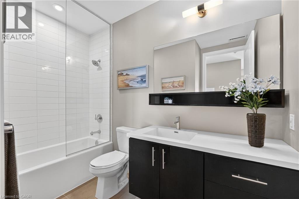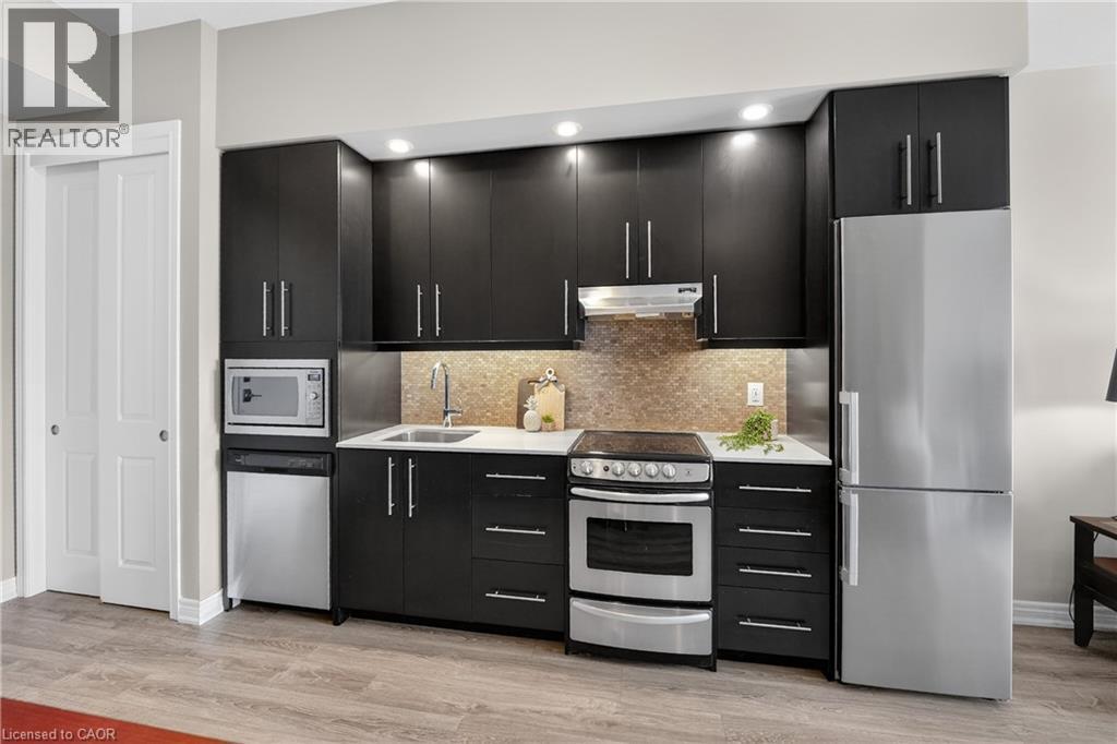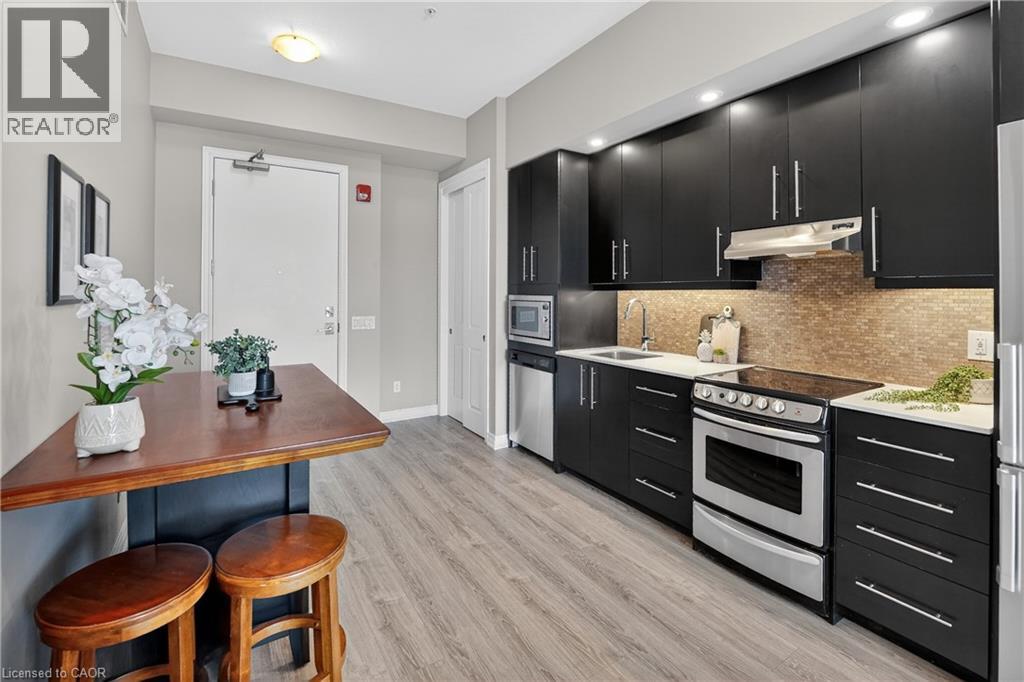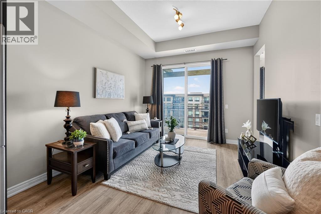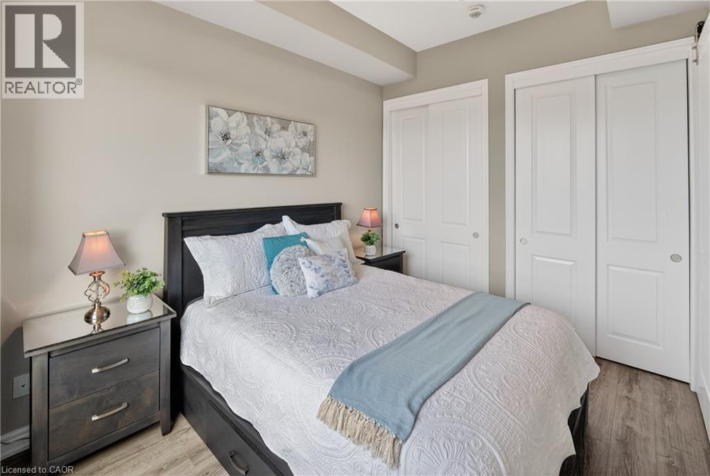 ELEGANT PENTHOUSE LIVING … Perched on the top floor, this stunning LAKESIDE CONDO at 602-10 Esplanade Place captures the essence of effortless, CAREFREE, WATERFRONT living in the heart of Grimsby. With 10’ ceilings and an abundance of natural light, this thoughtfully designed 1-bedroom PLUS DEN layout offers both comfort & style complemented by a 65 sq ft PRIVATE BALCONY showcasing breathtaking POOL & LAKE VIEWS. The open-concept living space is finished with sleek vinyl flooring and anchored by a modern kitchen featuring built-in appliances, QUARTZ countertops, tile backsplash, under-cabinet lighting, and potlights - creating a clean, contemporary feel ideal for everyday living or entertaining. The spacious primary bedroom is complete with double closets and LAKE VIEWS, while the versatile den offers flexibility for a home office or guest space. Convenience is key with IN-SUITE STACKABLE LAUNDRY, a well-appointed 4-pc bath, and ample storage solutions including locker (#198) and dedicated underground bike storage. Parking is a breeze with an UNDERGROUND SPACE (#128). Beyond the unit, residents enjoy access to a FULL SUITE OF AMENITIES, including a fitness centre, dog wash, party room, pool, PLUS VISITOR PARKING - enhancing the lifestyle experience this building has to offer. Set just steps from the waterfront, scenic trails, Grimsby Public Beach, and a vibrant mix of boutique shops & restaurants, this location balances relaxation with everyday convenience. With highway access just one minute away, commuting is seamless while still enjoying the charm of LAKESIDE LIVING. A rare opportunity to own a penthouse-level suite in one of Grimsby’s most desirable waterfront communities. CLICK ON MULTIMEDIA for virtual tour, floor plans, drone photos & more. (id:4555)