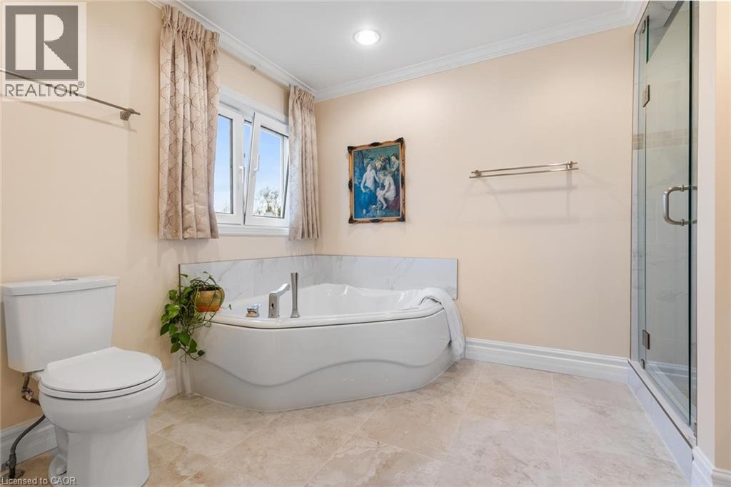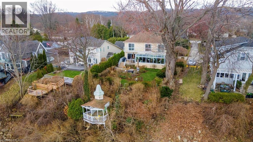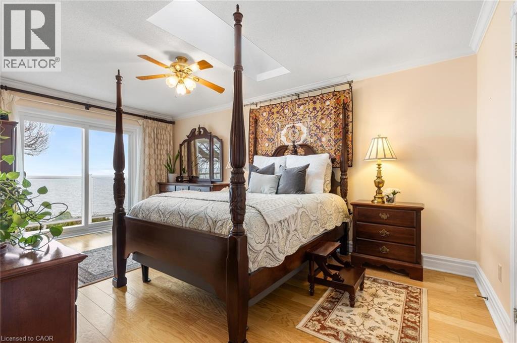 Exceptional waterfront 3 +1 bedroom and 3.5 bathrooms detached home in Grimsby, offering a grand double door entry and an impressive foyer with soaring high ceilings. This well-appointed home features a beautiful wood staircase and a spacious layout designed for both comfortable living and entertaining. The bright living room showcases rich hardwood flooring and a charming wood-burning fireplace, while the inviting family room seamlessly opens to a stunning and expansive sunroom complete with a gas fireplace—perfect for relaxing and enjoying natural light year-round. The well-equipped kitchen features tile flooring, stainless steel appliances, a built-in wine rack, garburator, and abundant cabinetry and counter space. A separate dining area is ideal for hosting guests, while the breakfast area provides the perfect setting for morning coffee or tea. Main floor laundry adds everyday convenience. The upper level offers three generously sized bedrooms, 2 full bathrooms, and access to a charming balcony. The primary bedroom retreat includes a walk-in closet and a private ensuite with a tub and jacuzzi. The finished basement provides additional living space with a large recreation room featuring a gas fireplace, a dedicated office for working from home, an additional bedroom, a full bathroom, and ample storage. Step outside to enjoy a large deck, garden shed, and gas BBQ hookup, ideal for outdoor entertaining. The home also features a double garage with extra ceiling height and windows for added light. Just steps to the waterfront, gazebo, and breathtaking sunsets. Close to parks, trails, schools, shopping, and easy highway access. (id:4555)