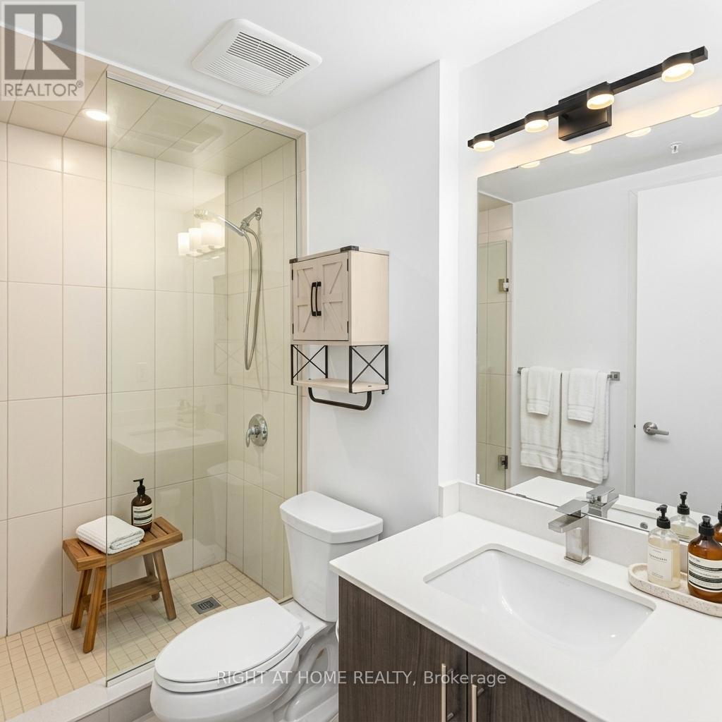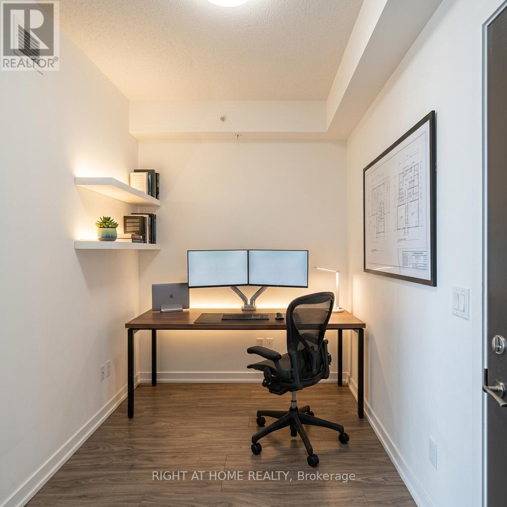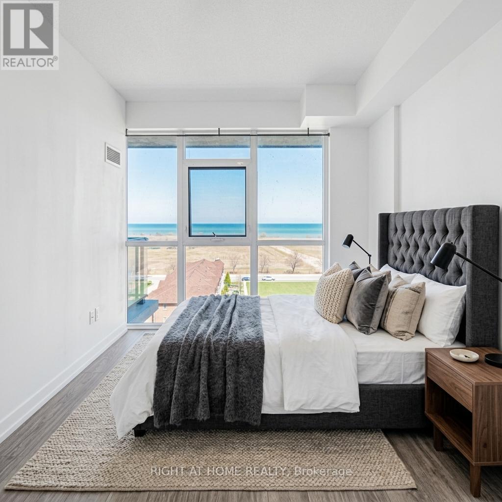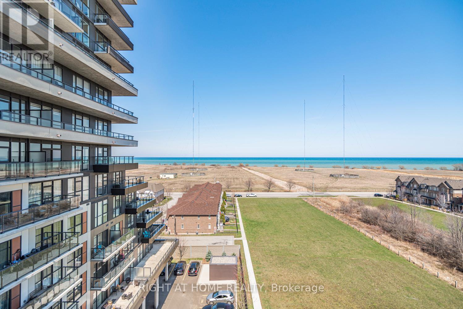 NORTH FACING LAKE VIEWS AND 9 FT CEILINGS IN GRIMSBY WATERFRONT COMMUNITY! It feels different from the moment you step inside. The space breathes. With 9 ft ceilings overhead and floor to ceiling windows pulling Lake Ontario into the room, the light is generous without the afternoon sun baking through, and there is a stillness here that the city simply cannot offer. Over 700 sq ft of open concept living, carpet free throughout, private balcony with nothing but water and sky ahead. The kitchen earns its place with granite countertops, stainless steel appliances, a grey subway tile backsplash, white shaker cabinetry and a centre island. Primary bedroom with walk in closet and a clean 3 piece bath with glass shower. The den handles the office, the guests, or whatever life asks of it. In suite laundry, one underground parking space and a storage locker. The building brings 24 hour concierge, a rooftop terrace and BBQ, fitness centre, party room and guest suites so the amenities match the lifestyle. Step outside and Casablanca Waterfront Park is right next door, a km of shoreline with beaches, trails, pavilions and open green space that most city dwellers drive an hour to find. Fifty Point Conservation Area with its marina and beach is a 5 minute drive west. The Bruce Trail and Beamer Memorial Conservation Area are minutes up the escarpment. Wine country begins right here in Grimsby with over 88 wineries within easy reach along the Niagara Bench. The QEW and GO Station are minutes away for when the city calls. This is the life people keep saying they will get around to one day. (id:4555)