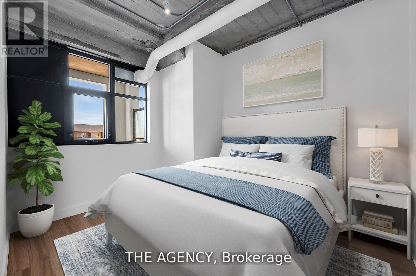 Attention investors: This unit is rented until April 30, 2027 for $2,300 per month plus utilities. A great turnkey opportunity. Where heritage charm meets modern edge. Step into this authentic hard-loft conversion that pairs century-old character with contemporary design. This bright and open 1-bed, 1-bath condo showcases soaring 10-foot ceilings, oversized windows, and a fluid layout that makes a statement the moment you walk in. Thoughtful upgrades include a sleek waterfall quartz countertop and upgraded baseboards for a polished, elevated finish. Enjoy the convenience of a separately deeded parking space and storage locker. Just minutes from Guelphs vibrant downtown: coffee shops, boutiques, and dining are all close at hand, yet the building itself exudes soul, history and genuine warmth. Your private 150 sq. ft. balcony becomes an extension of your living space, perfect for morning coffee or evening stargazing. Inside, the clean, modern aesthetic is complemented by access to premium amenities: a 2,200 sq. ft. rooftop patio with BBQ, fire cube, and lounge seating; heated bike ramp with indoor storage; a fully equipped gym; games room; and even a pet wash for your four-legged friend. Whether youre working from home, entertaining, or simply enjoying the vibe, this loft delivers the best of boutique, urban living. (id:4555)