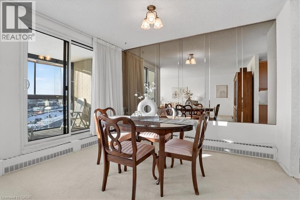 Super bright, 1380 sq ft CORNER unit in sought after complex of Riverside Park area in Guelph. HEAT, HYDRO, WATER included in condo fees! Excellent layout with floor to ceiling windows, sunroom/balcony with great sunset views. Large open concept design featuring formal Living, Dining rooms and spacious eat-in Kitchen offering ample cabinets and counter space. 3 good sized Bedrooms, one is used as a Den/Office with built-in wall unit, 3pc main bath and the Primary with 2pc ensuite. Tons of storage, in-suite laundry and one assigned parking space in covered garage. Very clean and airy home. Well maintained building with many amenities including: tennis courts, outdoor pool, sauna, games room, gym, guest suite, community rooms, library, workshop and more. Located in walking distance to Riverside Park, shopping, restaurants, trails, public transit and easy access to major routes. (id:4555)