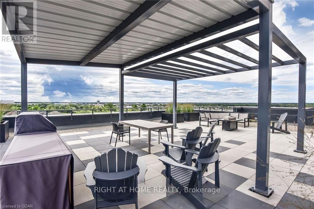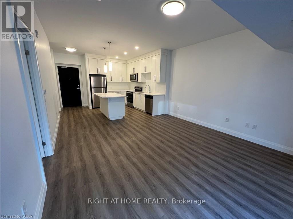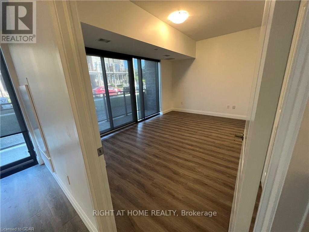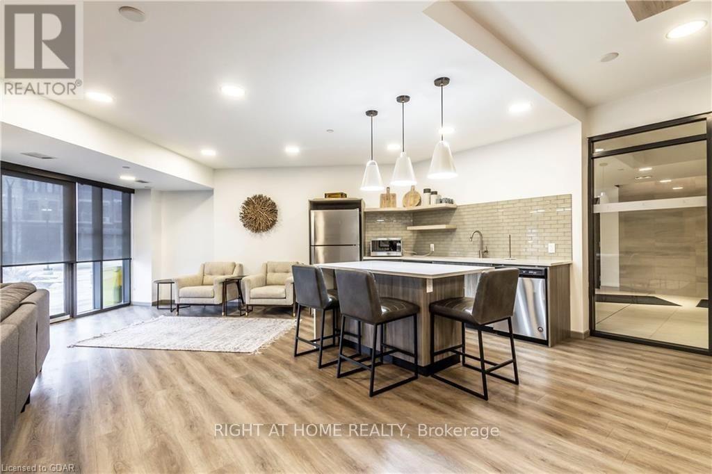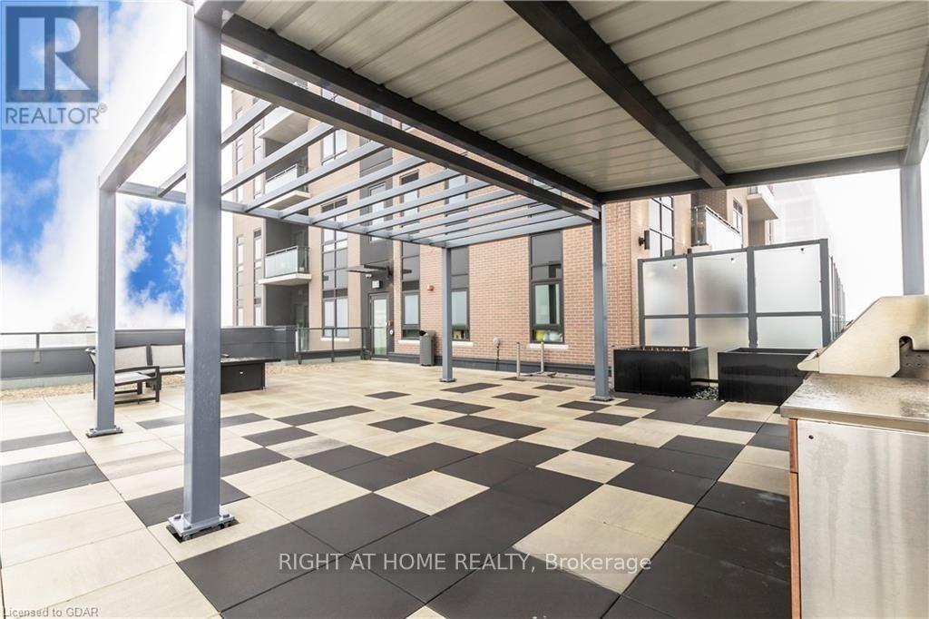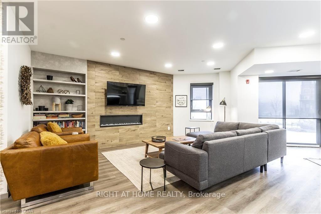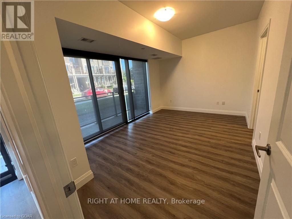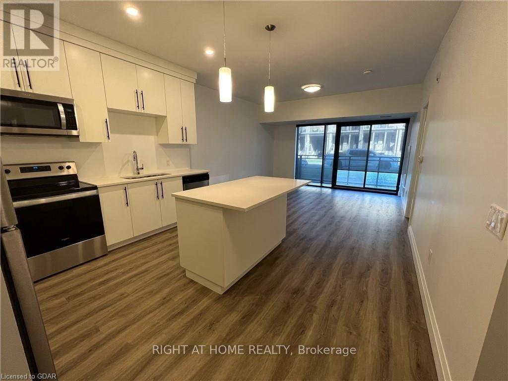 Welcome to this exceptional ground-floor one-bedroom plus den residence. Boasting 9-foot ceilings and a thoughtfully designed layout, this residence features a modern kitchen with quartz countertops, stainless steel appliances and quality finishes throughout. Luxury vinyl flooring flows seamlessly across the space. Enjoy the added convenience of in-suite laundry and step out onto your private balcony-ideal for morning coffee or unwinding at the end of the day. The versatile den easily adapts to your lifestyle, functioning as a second bedroom, home office, or dedicated dining area. Located in a well-managed building with attentive management, residents enjoy an impressive selection of amenities including a fully equipped fitness centre, two expansive fifth-floor outdoor terraces-one with BBQ facilities-a dog wash station, party room/lounge, bike storage, and ample visitor parking. Perfectly located just minutes from an impressive selection of restaurants, multiple grocery stores, a movie theatre, public transit, and easy highway access, this home delivers outstanding comfort, convenience, and lifestyle. Utilities are not included. (id:4555)