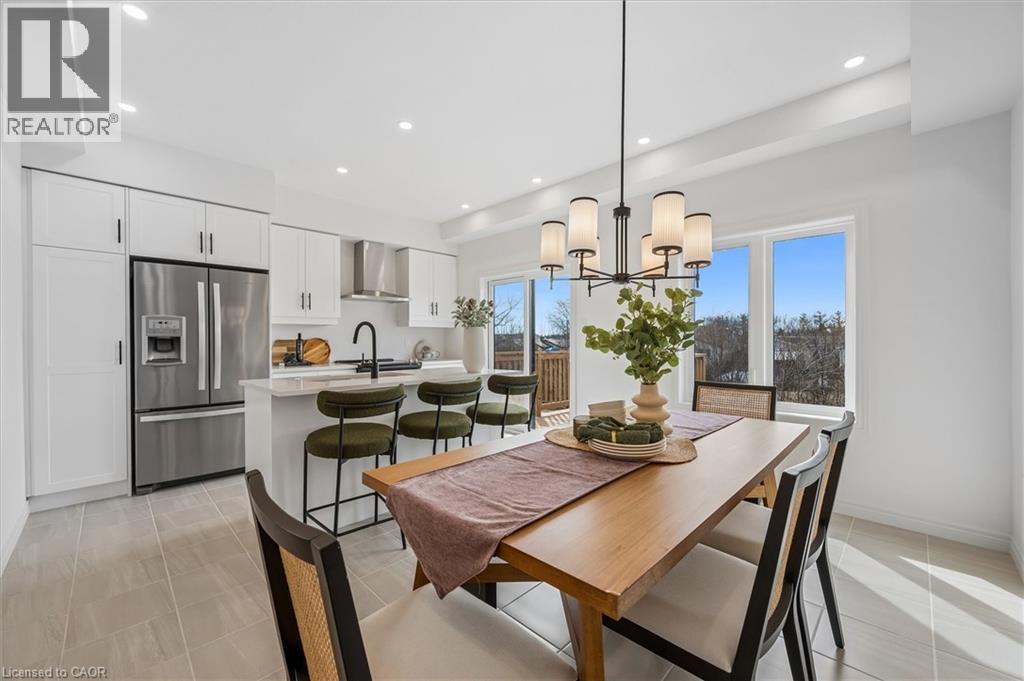 Welcome to 2 Sora Lane, nestled in a warm and welcoming enclave in Guelph’s highly sought-after east end. This vibrant, family-friendly community is known for its parks, trails, and exceptional quality of life, offering the perfect balance of nature and everyday convenience. Built by Fusion Homes, this brand-new, never-lived-in end-unit townhome offers 1,425 sq. ft. of beautifully finished living space, featuring 3 bedrooms, 2.5 bathrooms, and an attached garage. Designed for modern living, the bright open-concept main floor is ideal for both entertaining and daily life, showcasing hardwood flooring, quartz countertops, premium stainless-steel appliances, and designer-selected finishes throughout. With nearly $50,000 in upgrades, this home delivers exceptional style and value. The chef-inspired kitchen flows seamlessly into the living and dining areas, creating a welcoming space for gatherings with family and friends. Upstairs, the spacious primary suite offers a walk-in closet and spa-inspired ensuite. Two additional well-sized bedrooms and a modern shared bathroom complete the upper level. The walk-out basement provides incredible flexibility for future living space, a home office, gym, or recreation area. Enjoy the Fusion Homes difference, including their industry-leading warranty program averaging twice the industry standard. With private garage parking and close proximity to schools, shopping, parks, and trails, this home combines comfort, style, and location. Bonus: Designer furniture included, making this an exceptional move-in-ready opportunity in one of Guelph’s most desirable communities. (id:4555)