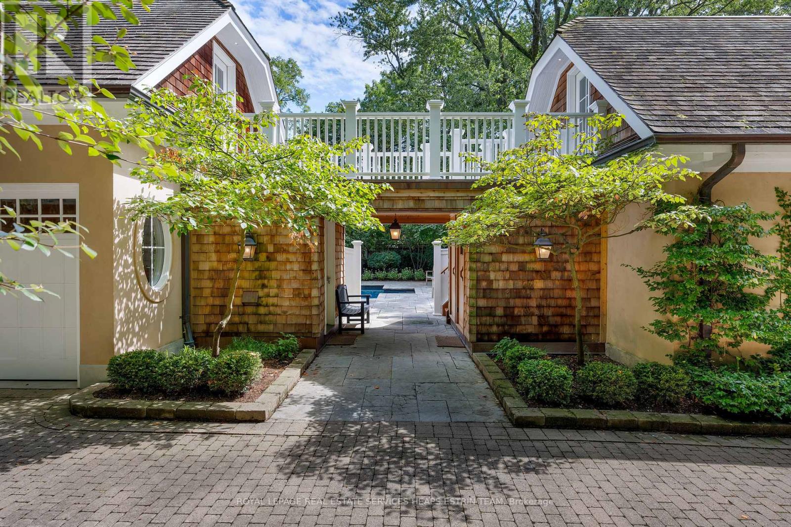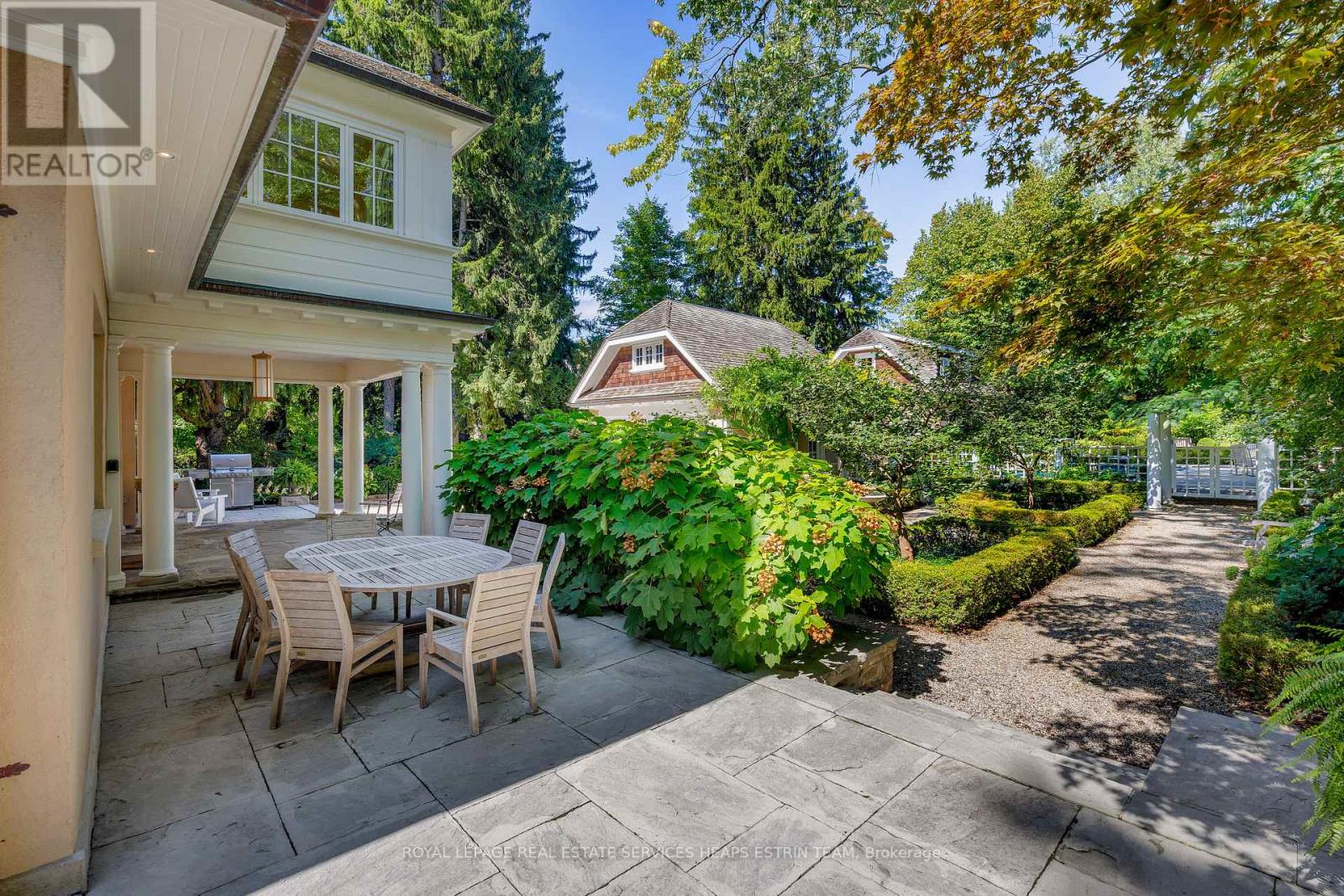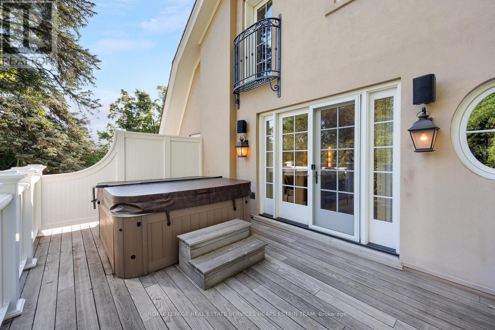 A landmark estate in St. George's Park. Privately set on one of Guelph's most prestigious streets, 75 Queen Street is a legacy residence of rare scale and architectural significance. This fully reimagined Dutch Colonial estate sits elevated on an 89 x 264-foot lot, surrounded by professionally designed grounds that have been meticulously cultivated and maintained for over 25 years. The exterior offers resort-quality living, with a saltwater pool, wood-burning fireplace, outdoor shower, and dedicated pool bathroom, framed by mature trees and layered stonework. The sense of privacy and serenity is immediate. Inside, the home spans over 5,700 square feet of finished space and follows a classic centre-hall plan with gracious flow and custom detail throughout. The main level includes a grand great room, formal dining room, glass-enclosed sunroom, chef's kitchen with granite surfaces and premium appliances, and a private office. Upstairs, the primary suite features two fireplaces, a walk-in closet, a five-piece ensuite, and a private balcony with hot tub. The third floor offers additional bedrooms, a large family room with wet bar, and elevated views of the gardens and city skyline. The fully finished lower level includes radiant heated floors, a home theatre, cigar lounge with ventilation, wine cellar, kitchenette, and full laundry. A detached garage and separate outbuilding provide parking for four vehicles, a sauna, a full bath, and two upper lofts that are ideal for guest accommodation, a studio, or a wellness retreat. In total, there is parking for 14 vehicles. All buildings are security-monitored and equipped with heat sensors, ensuring peace of mind and enhanced safety throughout the estate. Just steps to St. George's Park and within walking distance to downtown, the GO Station, and top schools, this property presents a rare opportunity to own one of Guelph's most iconic estates. Timeless, private, and built without compromise. (id:4555)