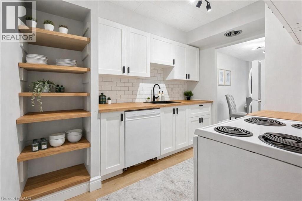 Welcome to 102-105 Conroy Crescent, a bright, NEWLY RENOVATED, 2-bedroom condo backing onto peaceful green space and scenic trails that lead to the river! With a completely refreshed interior and a location surrounded by everyday conveniences, this home offers unbeatable value for first-time buyers, investors and downsizers alike. Step inside and you’ll immediately notice the brand-new flooring and the tastefully renovated kitchen, featuring crisp white shaker cabinetry, butcher-block countertops, subway tile backsplash, modern black hardware and a sleek black sink. The thoughtful addition of open shelving makes this kitchen as functional as it is stylish. The spacious living and dining area is flooded with natural light from a full wall of windows. Freshly updated with neutral wide-plank flooring, this open-concept space is perfect for both relaxing and entertaining. Sliding doors lead to your large private balcony overlooking greenery-an ideal spot for your morning coffee or unwinding at the end of the day. The generously sized primary bedroom offers plenty of room for a king-size bed, while the second bedroom is perfect for guests, a home office or a roommate. A modern 4-piece bathroom completes the unit with updated vanity, fixtures and finishes. This condo includes an oversized parking spot located right next to the back building entrance, plus a convenient storage locker. The unit is situated on the main floor in a building with no elevator, making grocery trips and daily access a breeze. Just steps away is a bus stop with a direct route to the University of Guelph. You’re also minutes from Stone Road Mall, LCBO, Shoppers, restaurants, banks, Dovercliffe Park and quick access to the Hanlon Parkway—perfect for commuters. Freshly renovated, move-in ready and set in a peaceful yet central location—this is an opportunity you won’t want to miss! (id:4555)