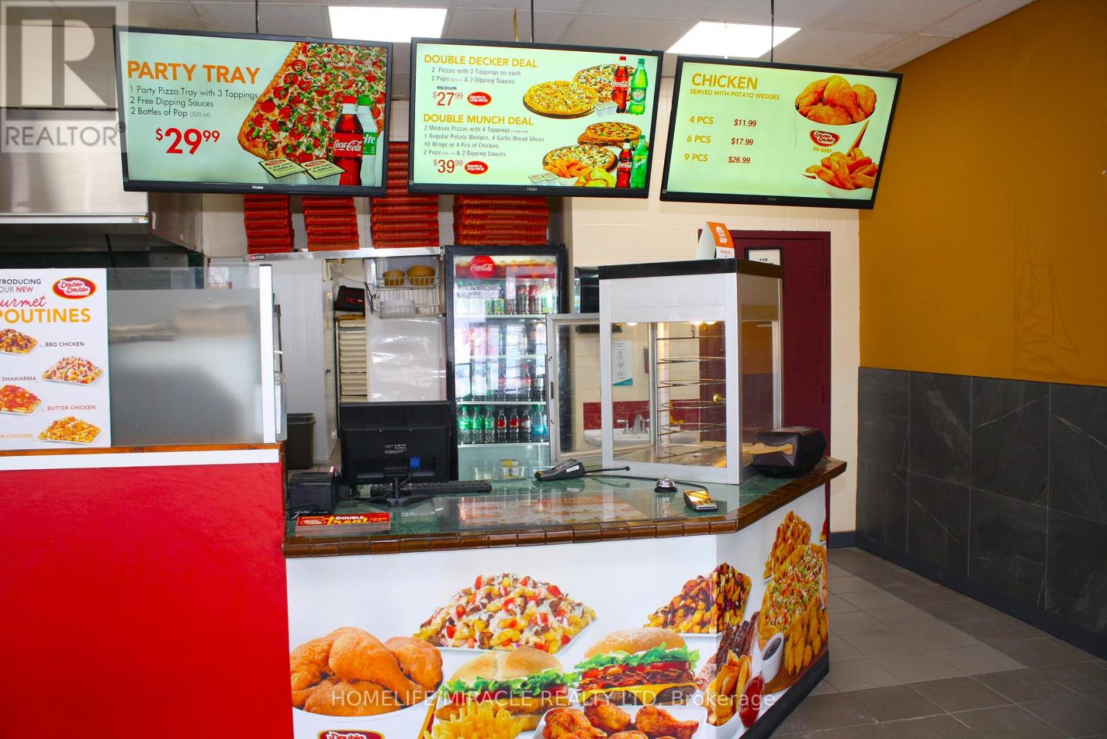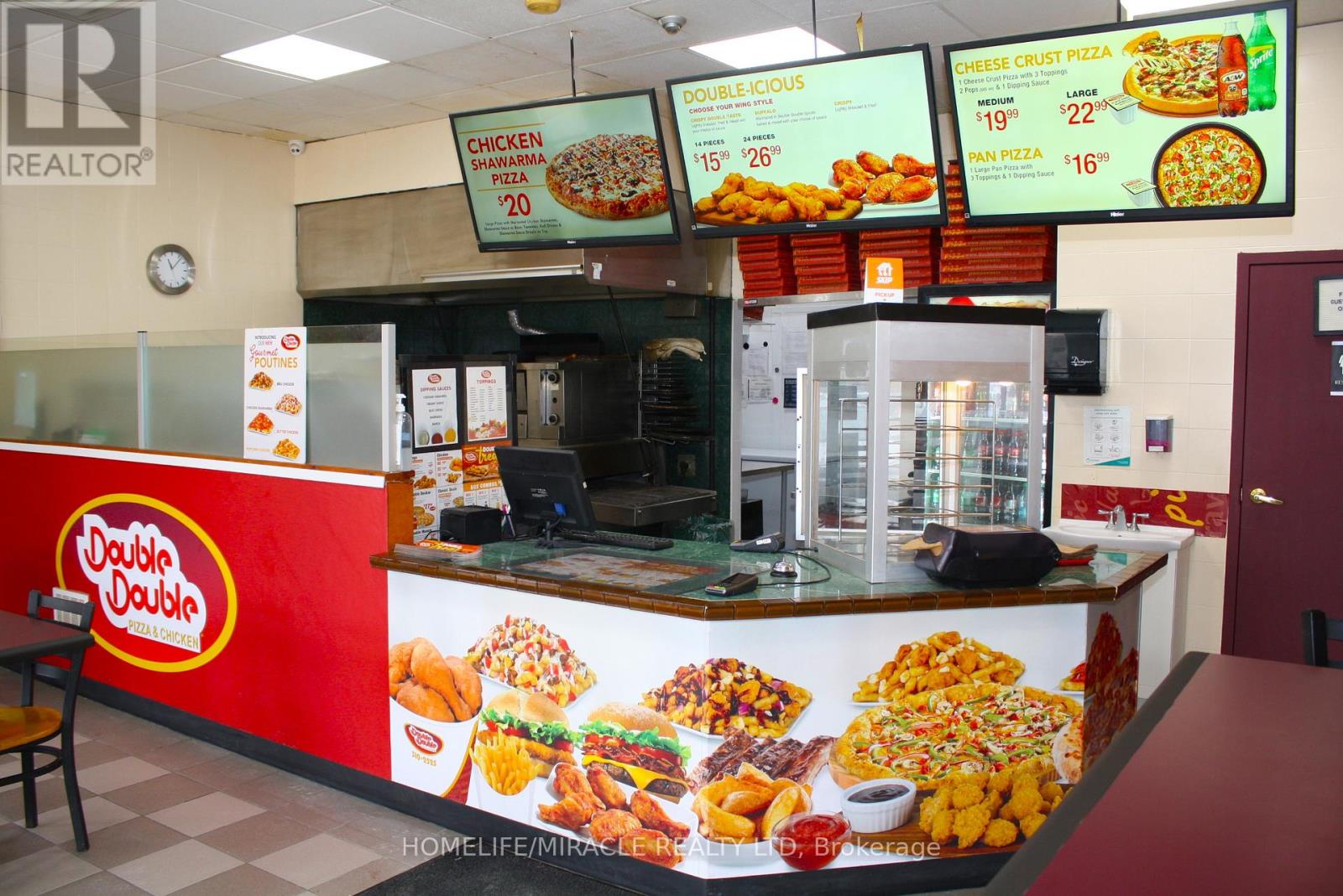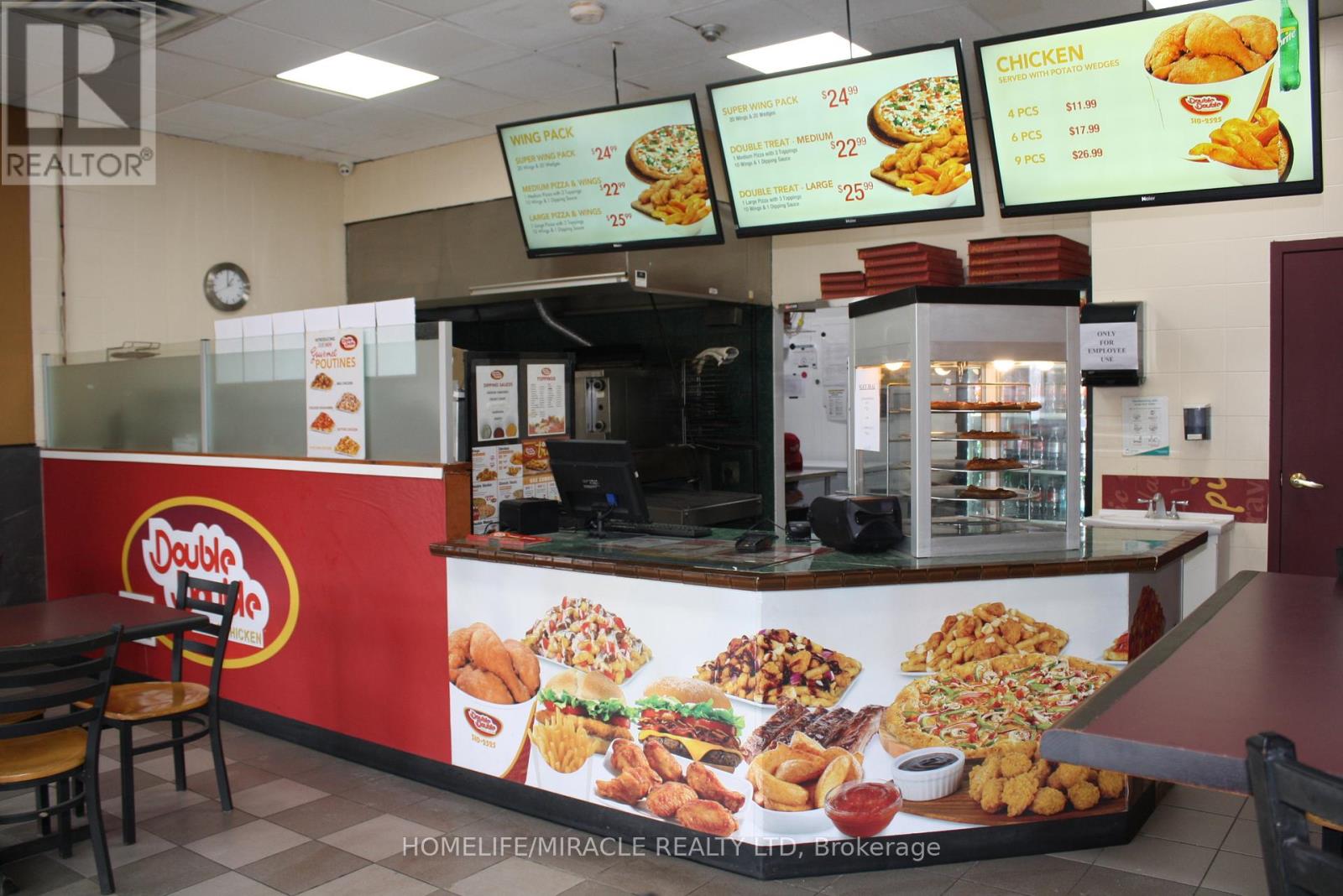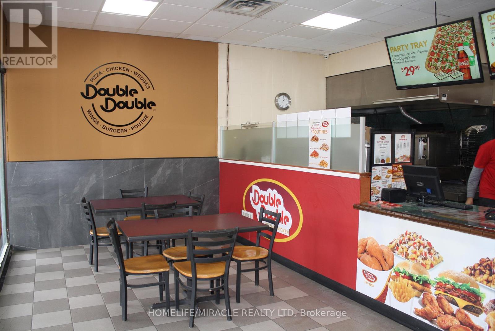 Excellent turnkey franchise opportunity to own a well-established Double Double Pizza & Chicken at the busy intersection of Woolwich Street and Speedvale Avenue in Guelph. This location offers immediate possession, making it ideal for owner-operators or investors looking for a seamless transition. The business operates from a 1,121 sq. ft. space with an all-inclusive monthly rent of $3,710.45 (TMI & HST included). The current lease is secured until September 30, 2027, with the added benefit of a five-year renewal option, providing long-term stability. The franchise transfer fee is $25,000 plus tax, shared equally between buyer and seller. The only rental item is a Reliance hot water heater at $32.99 per month plus tax, keeping ongoing costs minimal. A rare opportunity to acquire a turnkey operation in a high-traffic, sought-after location. (id:4555)