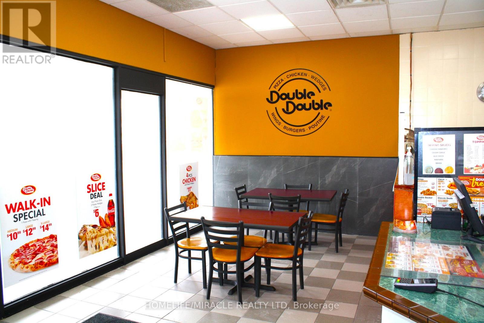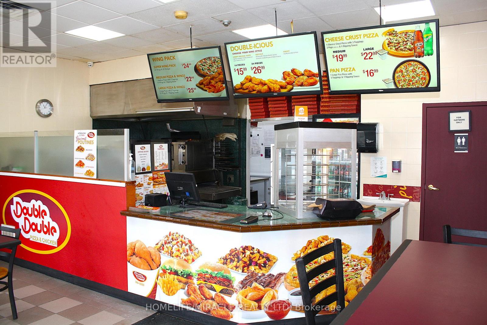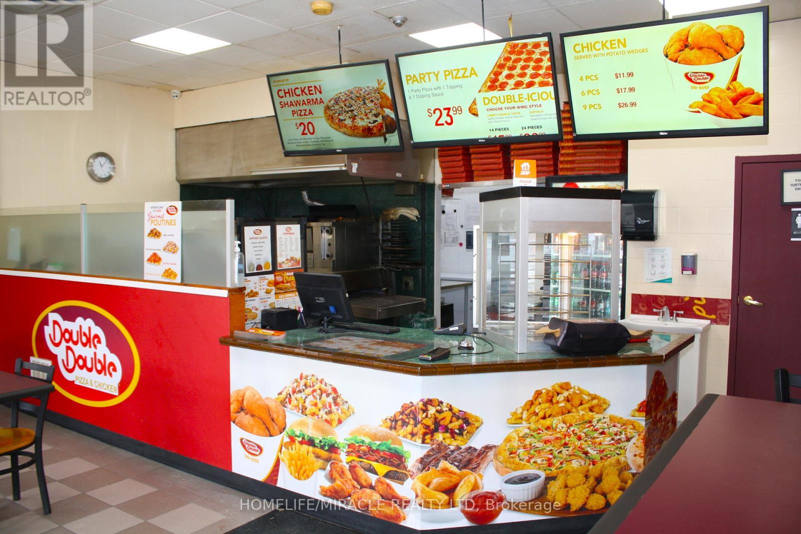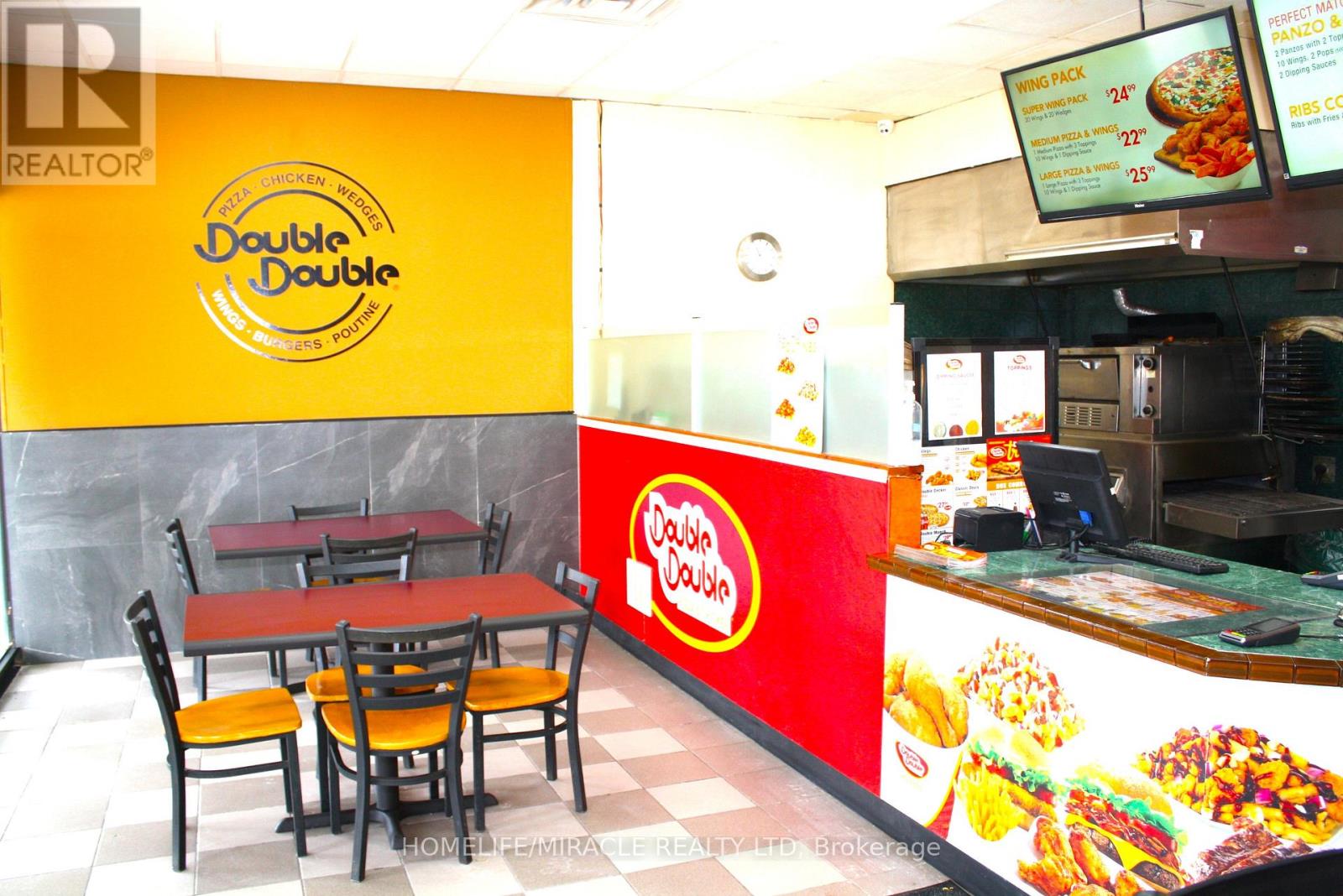 Excellent turnkey franchise opportunity to own a well-established Double Double Pizza & Chicken at the busy intersection of Woolwich Street and Speedvale Avenue in Guelph. This location offers immediate possession, making it ideal for owner-operators or investors looking for a seamless transition. The business operates from a 1,121 sq. ft. space with an all-inclusive monthly rent of $3,710.45 (TMI & HST included). The current lease is secured until September 30, 2027, with the added benefit of a five-year renewal option, providing long-term stability. The franchise transfer fee is $25,000 plus tax, shared equally between buyer and seller. The only rental item is a Reliance hot water heater at $32.99 per month plus tax, keeping ongoing costs minimal. A rare opportunity to acquire a turnkey operation in a high-traffic, sought-after location. (id:4555)