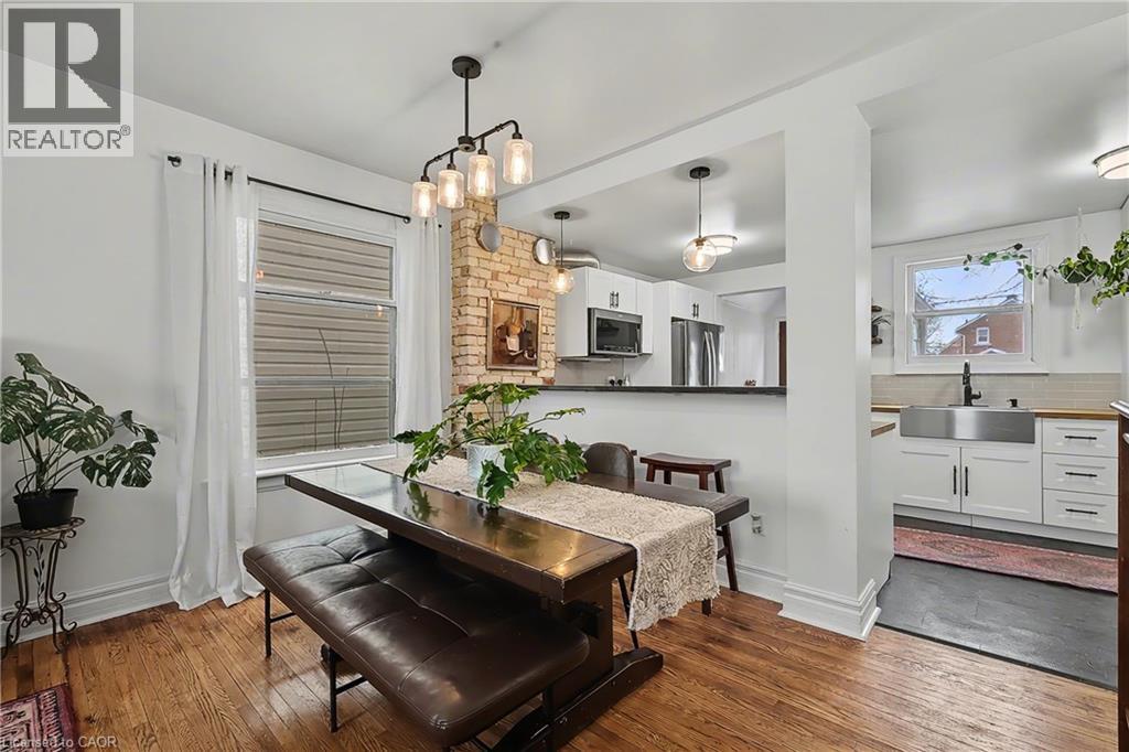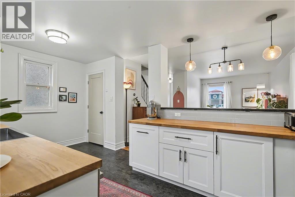 Charming Circa 1912 home in the heart of the downtown core. This home has been beautifully renovated throughout, offering an open concept main level with a gourmet style kitchen, that includes timeless white cabinetry, sleek stainless steel appliances, butcher block counter top, and a casual breakfast bar...plus eye catching exposed brick. Original hardwood flooring flows seamlessly through the dining area, and in to the cozy living room, filled with streams of natural light. Upstairs, 3 generous sized bedrooms are perfect for a growing family, and an updated bath tops off this incredible home. Outdoors, relax on your private deck, with a fully fenced yard, ideal for the kids at play. Just steps to Eramosa River Park, you can take in a volleyball game, paddle downstream in your kayak, or simply enjoy nature, with the walking trails that surround this fantastic area (id:4555)