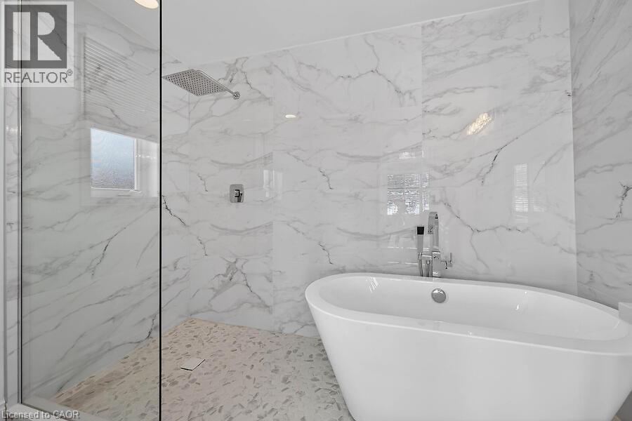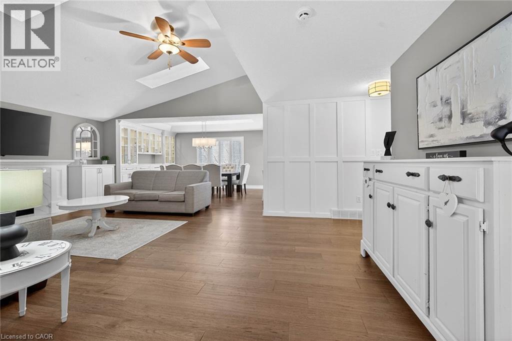 Welcome to 90 Kortright Road East located in one of Guelph's most sought after south end neighbourhoods. From the moment you step inside you will be impressed by this beautifully finished 2+3 bedroom, 3-bath bungalow with a fully self-contained accessory apartment. The main level features a bright, open-concept living and dining area with cathedral ceilings, skylights, a gas fireplace and custom built-in cabinetry - an ideal space for entertaining. The gourmet kitchen offers an island and peninsula, quartz countertops and backsplash, and French doors leading to the back deck. The spacious primary bedroom includes a walk-in closet and a luxurious 4-piece ensuite with soaker tub and separate shower. A second bedroom offers two large closets and ensuite privileges to a 3-piece bath. Convenient main-floor laundry completes this level. The lower-level accessory apartment is equally impressive, featuring two bedrooms plus an additional bedroom/den, all with closets, an open-concept kitchen and family room, a 3-piece bath, second laundry area, and ample storage. Enjoy outdoor living in the fully fenced backyard with deck, gazebo, and BBQ gas line. Parking is plentiful with a four-car driveway and double garage, which includes two interior entry points—one providing direct access to the basement apartment. Extensive updates over the past four years include kitchens, primary ensuite, built-in dining cabinetry, garage door, fascia, eavestroughs, and select flooring throughout. Ideally located close to schools, parks, and unique shopping and dining experiences. A truly exceptional home—don’t miss your opportunity to make it yours. (id:4555)