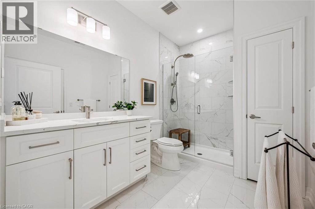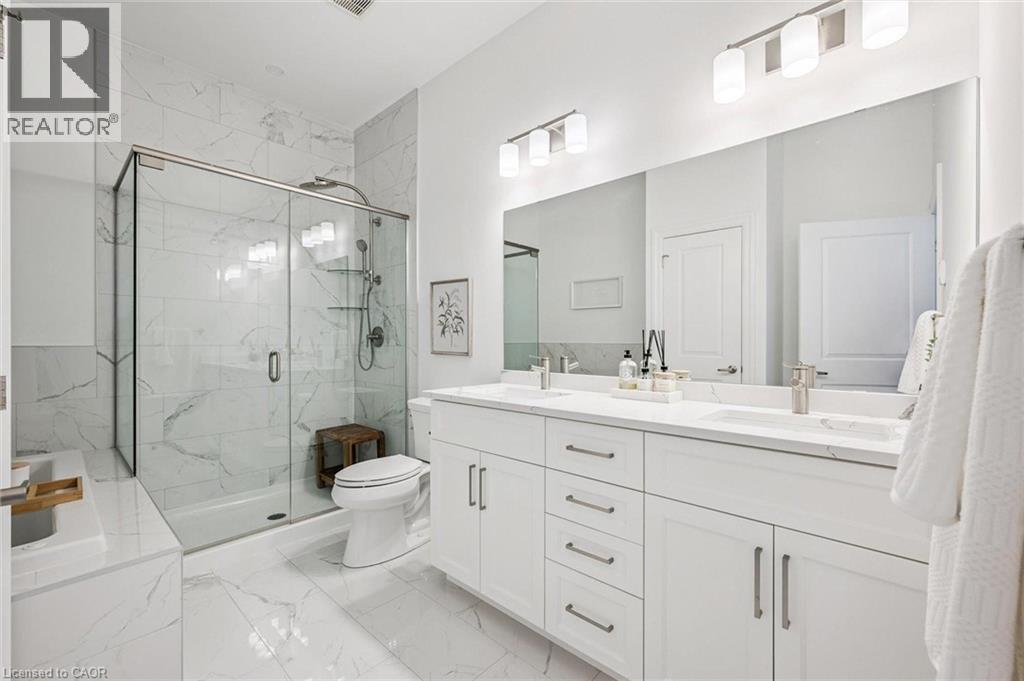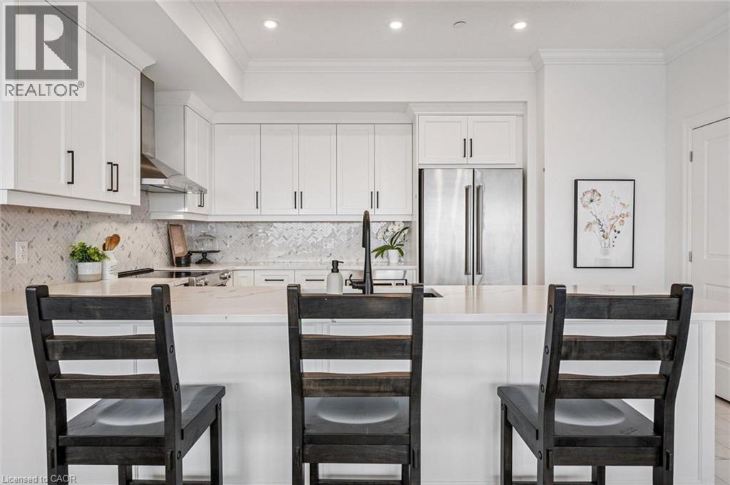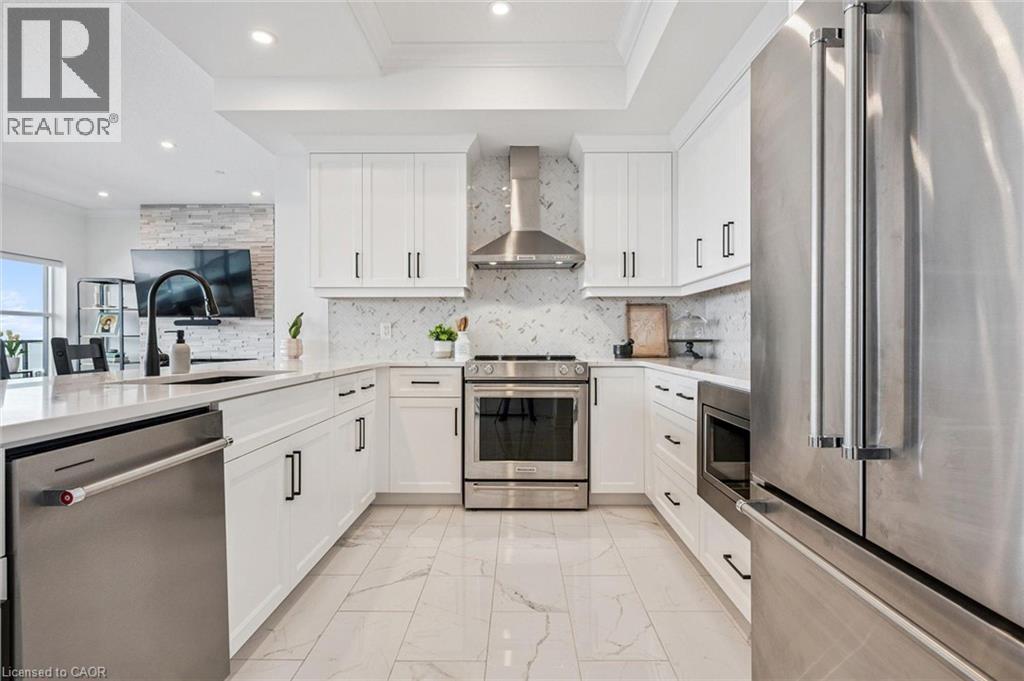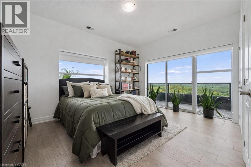 Spectacular 3-bdrm + den residence offering 2006sqft of refined living space in Guelph’s most sought-after south-end addresses! Nestled within esteemed prof. managed building W/resort-style amenities, this exceptional penthouse delivers perfect balance of luxury, comfort & convenience. Breathtaking wall of floor-to-ceiling windows span living & dining areas flooding the home W/natural light & framing treetop views. Open-concept layout feels expansive yet welcoming ideal for everyday living & entertaining. Dining area flows seamlessly into living room where fireplace adds warmth & architectural interest. Sliding doors lead to massive 1042sqft south-facing private terrace offering unobstructed views over lush greenspace, tranquil water & miles of trails. Designed for unforgettable gatherings or peaceful moments, this space accommodates multiple seating areas. Whether hosting under the stars or enjoying morning coffee, this terrace isn’t just an extension of living space, it’s your serene retreat from hustle & bustle of everyday life! Chef-inspired kitchen W/white cabinetry is complemented by elegant backsplash, quartz counters & island W/breakfast bar seating. High-end S/S appliances, range hood & B/I microwave complete a space that is functional & beautiful. Primary bdrm W/dramatic wall of windows & serene views, W/I closet & ensuite W/dbl quartz vanity, soaker tub & W/I glass shower. 2 add'l bdrms offer large windows & closet space. Glass French doors open to den perfectly suited for home office or reading room. 4pc main bath W/quartz counters & W/I glass shower. 2pc bath completes the layout. Enjoy access to impressive amenities: state-of-the-art fitness centre, lounge W/kitchen & billiards, outdoor terrace, golf simulation W/bar area & guest suites. Located in the vibrant south end you'll have access to 401, UofG, GO Transit, dining, shopping & more. Penthouse 1404 is a rare offering, 1 of only 4 penthouses combining exceptional space, views & elevated lifestyle! (id:4555)