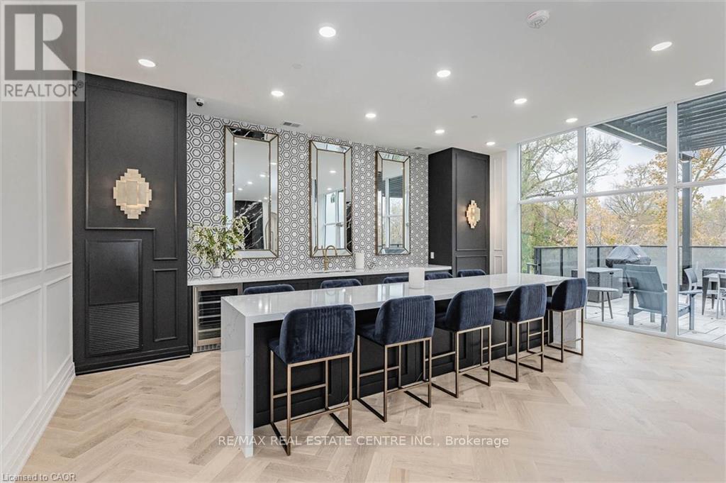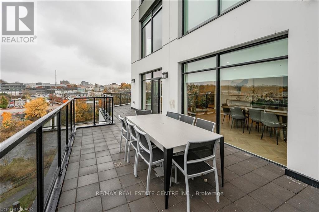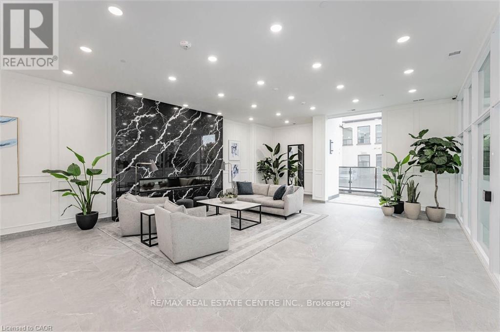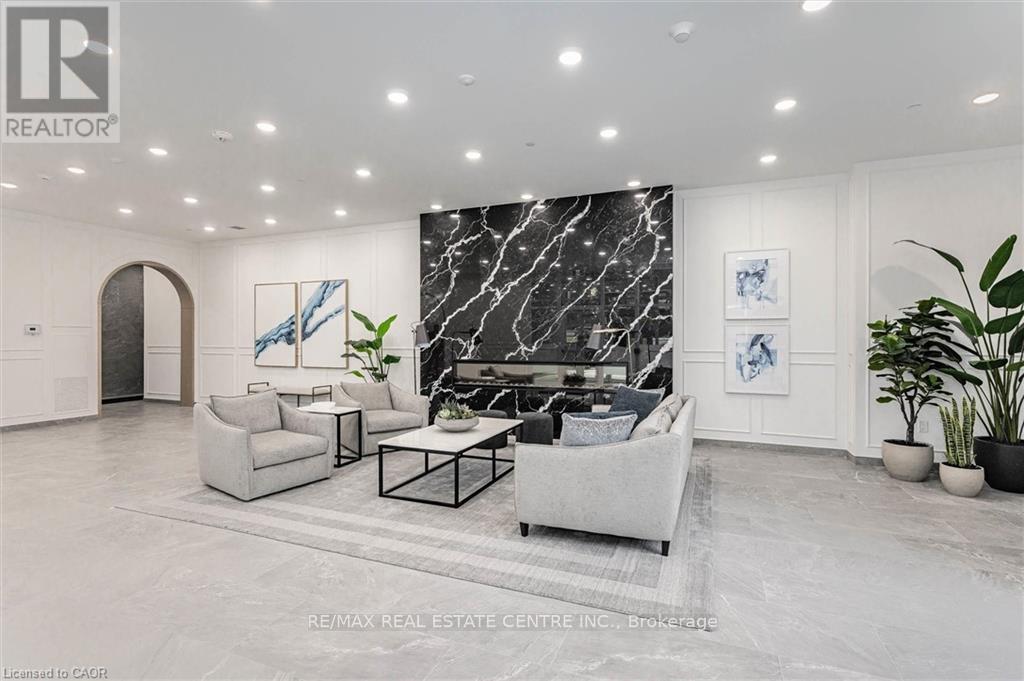 Experience refined condo living at Edgewater Condominium, ideally located along the Eramosa River in the heart of Downtown Guelph. Unit 608 is a well-appointed 2-bedroom, 2-bath suite offering two private balconies and a functional open-concept layout with approx. 1260 square feet of living space. Engineered hardwood flooring extends throughout the living areas and bedrooms. The kitchen features a waterfall island, stone countertops, modern backsplash, and premium appliances, opening to the living and dining areas highlighted by a floor-to-ceiling tiled fireplace and walk-out to a balcony with city views. The primary bedroom includes a walk-in closet, private balcony, and a 5-piece ensuite with freestanding tub, glass shower, and heated floors. A second bedroom, 3-piece bath, and in-suite laundry complete the suite. Large windows provide abundant natural light and neutral finishes throughout. Includes one underground parking space, one storage locker, and access to building amenities including a library, party and media rooms, fitness centre, and guest suites. Steps to downtown amenities, riverfront trails, and GO/VIA Rail access. (id:4555)