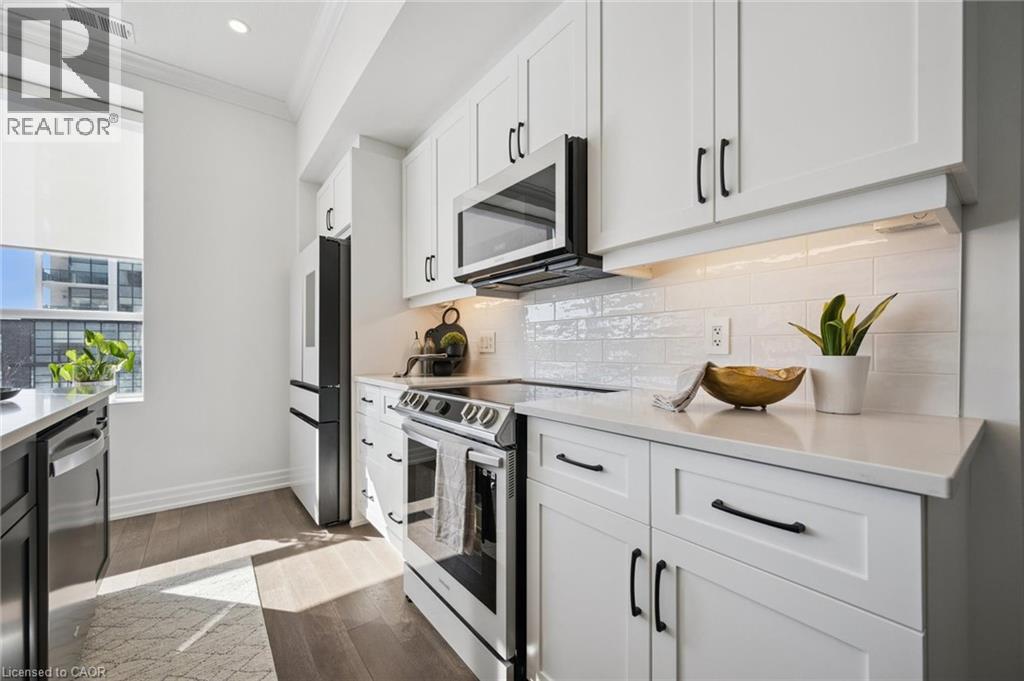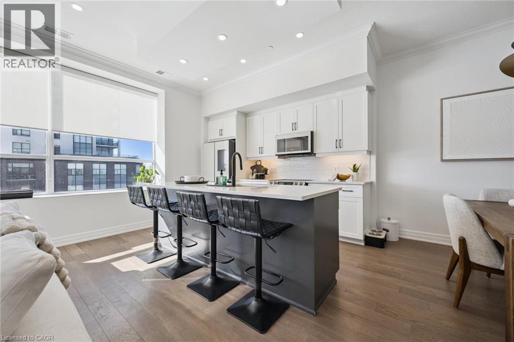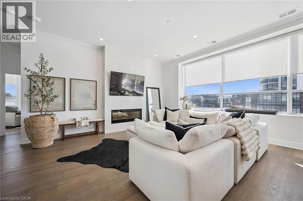 Live in Light, Luxury, and Convenience. Step into this sun-drenched 2-bedroom, 2-bathroom corner unit condo and feel instantly at home. Expansive windows flood the space with natural light. Highlighting 10' ceilings, hardwood floors, designer lighting, and cozy heated bathroom floors for comfort you’ll feel the moment you step in. Smart, stylish storage has been crafted for seamless functionality: every closet and laundry area feature custom-built organizers, creating seamless spaces that keep your home clutter-free without compromising style. Located on the second floor for quick, elevator-free access, the unit also includes two owned parking spots, one with an EV charging station, ready for today’s lifestyle and tomorrow’s technology. 1880 Gordon offers premium building amenities, including a fully equipped gym, golf simulator, guest suite, and Party/ lounge room with breathtaking city views—perfect for entertaining or unwinding in style. Set in Guelph’s highly sought-after south end, everything is within reach: restaurants, grocery stores, banks, salons and more. Move in and enjoy a turnkey lifestyle where every detail has been thoughtfully taken care of. (id:4555)