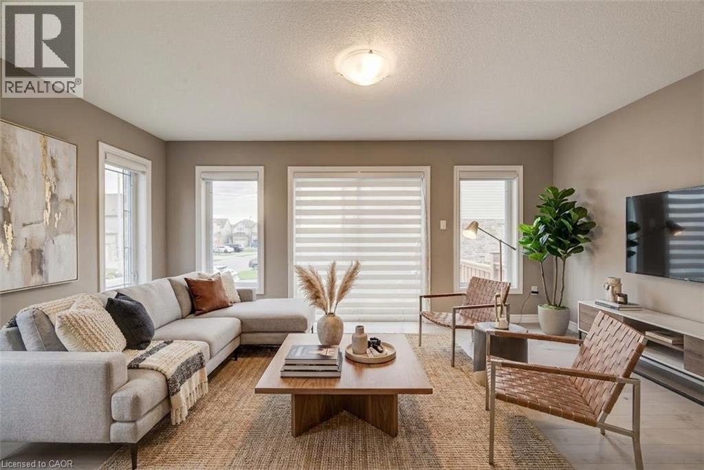 PUBLIC OPEN HOUSE SATURDAY MARCH 28TH 2PM TILL 4PM. Welcome to 77 John Brabson Crescent in Guelph!This two story semi-detached home is only five years old and is located in wonderful Kortright East which makes it ideal for commuters but also close to many amenities. Step inside and find a handy two piece bathroom for your guests. The modern dark cabinet set in kitchen contrasts nicely with the bright white hard surface counter tops. There is plenty of room for the home chef here to work and with the open concept layout also entertain or watch the kids. The main floor is very bright and inviting but follow me upstairs to find 3 bedrooms, the family bath and the laundry room. Just off the primary bedroom you will find a walk in closet and another four piece bath for the ensuite. The basement is unspoiled and just awaiting your ideas so don't wait book your showing today! (id:4555)