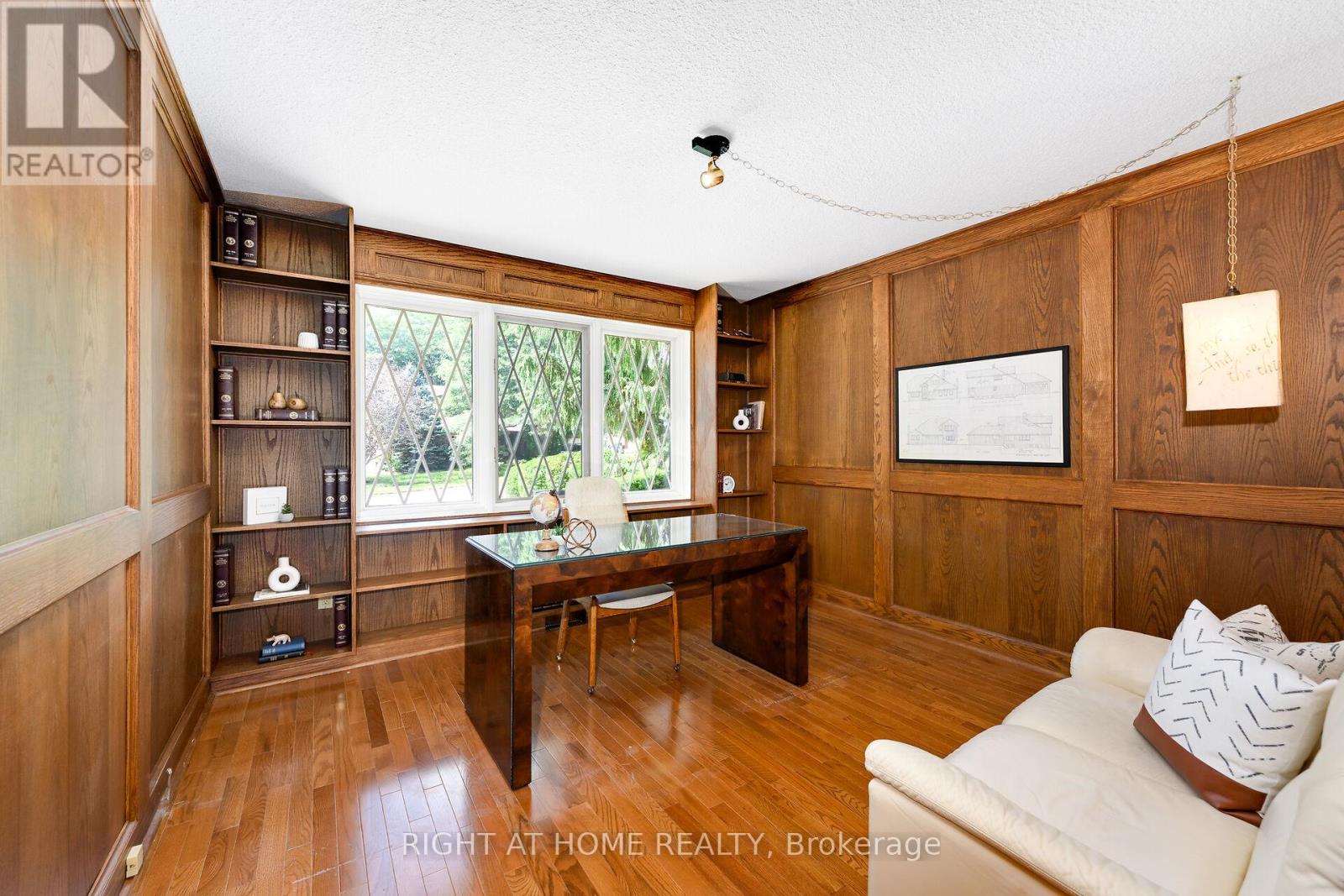 Offered for the first time, 33 Walnut Drive is a timeless Tudor-style residence, custom designed & carefully curated to exceed expectations. Boasting over 4,800 sq ft of thoughtfully designed interior space, this home is a true blend of character, craftsmanship, & comfort. From the moment you arrive, the curb appeal is undeniable - a stone walkway, mature trees, & professionally landscaped gardens create a picture-perfect first impression. Step inside to a gracious entry way & grand two-story living room featuring soaring ceilings, striking fireplace, & views of the private backyard. The dining room offers serene vistas of a cascading waterfall & includes a walkout to the private oasis with lush gardens & an expansive deck, ideal for entertaining or peaceful mornings with coffee. The chef's kitchen includes a generous eat-in area & opens to the family room, creating a warm, inviting space for gatherings. The main-floor primary suite is a private retreat, complete with walk-in closet & luxurious ensuite. Also on the main level is an executive office featuring custom millwork & built-in shelving, ideal for working from home. Upstairs, you'll find 3 additional spacious bedrooms, full bath, & a bright open loft, ideal as a secondary office, artists studio, or playroom. The lower level offers a large recreation space ready to be customized into a games room, home theatre, or gym. There is ample storage throughout. Additional features include double garage with inside access, main floor laundry, steel roof, 200 AMP service, new furnace & A/C. Ideally situated in an established neighbourhood, walkable to shopping & top notch schools. Floor plans & detailed construction specifications, which exceeded standard building codes, are available upon request. Built for the original family who has lovingly maintained it since 1984, this home has been the setting for a lifetime of memories. Now, it's ready for you to begin your own chapter. (id:4555)