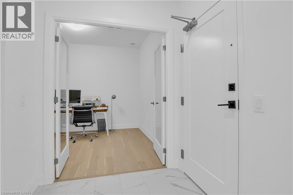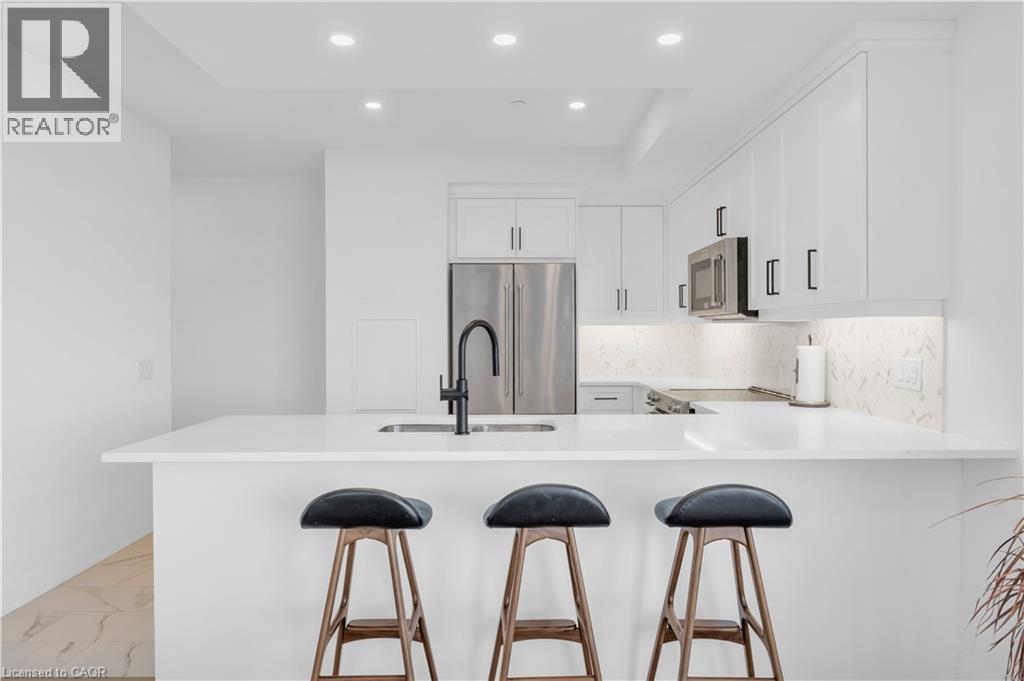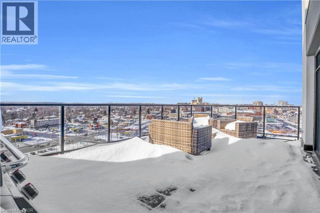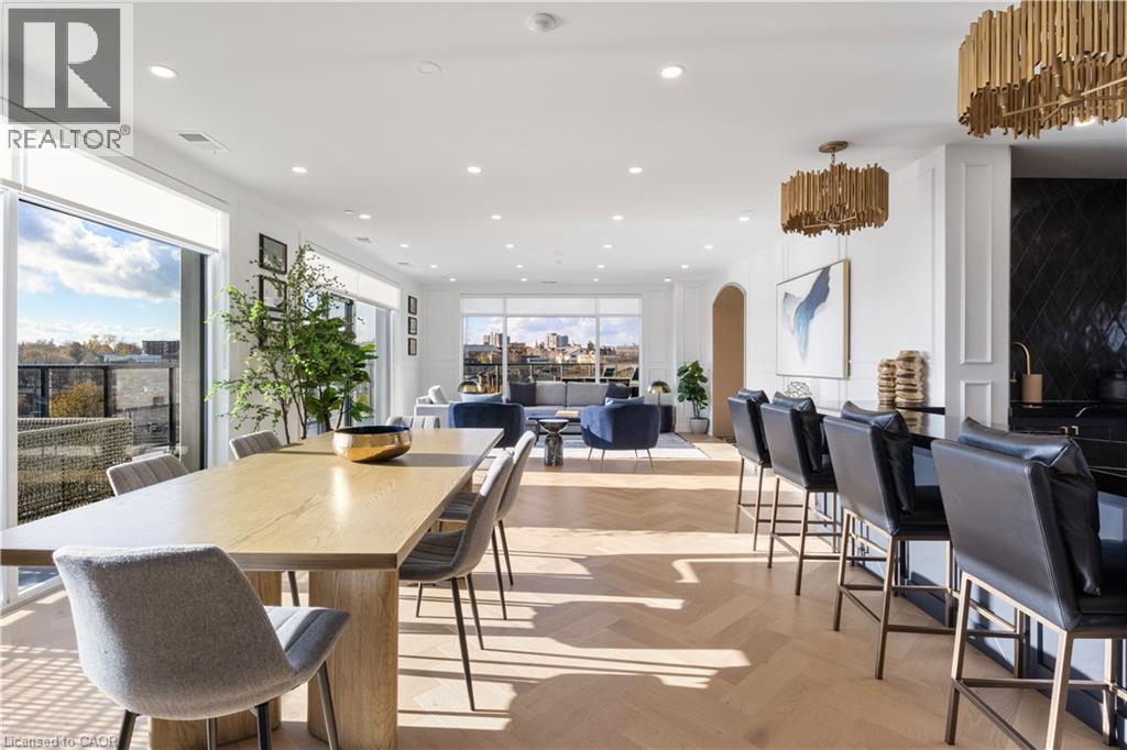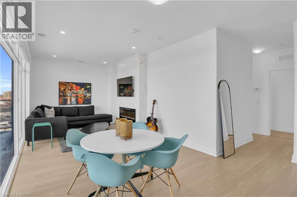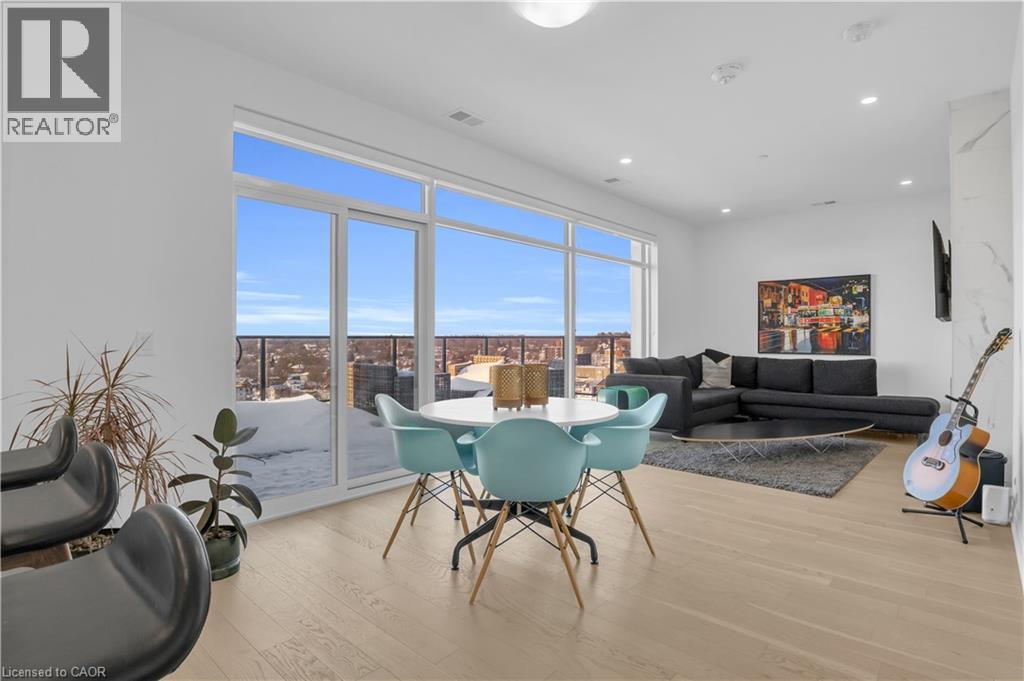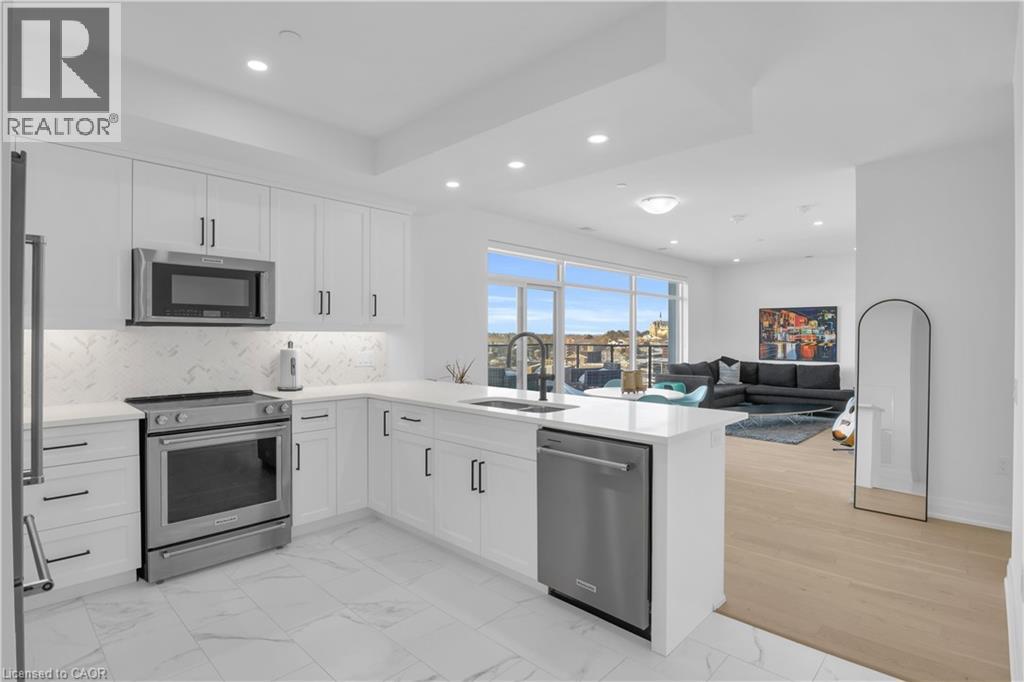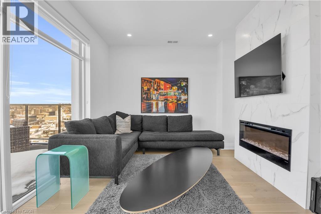 Welcome to 1105-71 Wyndham Street South, an elegant two bedroom plus den, two bathroom residence offering over 1,300 square feet of well-appointed living space in one of Guelph’s most prestigious condominium communities. Ideally situated along the Speed River and just steps to downtown, this suite combines generous proportions with a refined waterfront setting. A welcoming foyer with ample closet storage leads to a private den enclosed with French doors, ideal as a dedicated home office, reading retreat, or quiet lounge. This flexible space adds functionality while maintaining separation from the main living areas. The open-concept kitchen, dining, and living space is designed for comfortable everyday living and hosting. Large windows bring in natural light and showcase river views. The kitchen features built-in stainless steel appliances, quartz countertops, and a peninsula with seating. The living room is centred around a gas fireplace with a marble surround, creating a warm focal point. Step out to the expansive private terrace with views of the Speed River, offering ample space for outdoor seating and dining. The primary suite also enjoys its own private balcony overlooking the river, along with a walk-in closet and ensuite bath. A spacious second bedroom is located near a four-piece bathroom, and ensuite laundry provides added convenience. Residents have access to premium amenities including a library, games room, exercise room, and billiard room. With over 1,300 square feet, multiple outdoor spaces, and a walkable location close to downtown shops, and trails, this residence presents an exceptional opportunity in the heart of Guelph. (id:4555)