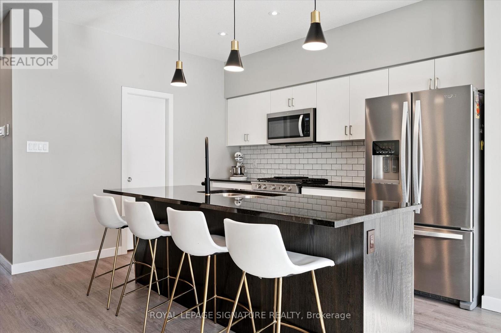 Welcome to this absolutely stunning 3+1 bedroom townhouse built by Granite Homes, where modern elegance blends seamlessly with everyday comfort. Meticulously maintained and exceptionally clean, this luxurious home features 9 ft ceilings and a bright, spacious open-concept layout enhanced by desirable east-west exposure, filling the home with natural light from morning to evening. The chef-inspired kitchen is designed to impress, showcasing granite countertops, a huge center island, stainless steel appliances, a gas range, and a walk-in pantry - offering both style and exceptional functionality. Thoughtfully laid out for cooking, gathering, and entertaining, it flows effortlessly to your private terrace where BBQs are allowed, creating seamless indoor-outdoor living for hosting family and friends. Upstairs, the versatile +1 space offers flexibility as a family room, home office, or additional sleeping area. The primary bedroom features two walk-in closets and a beautifully upgraded bathroom with a clean, modern finish. Convenient upper-floor laundry completes the level, making everyday routines simple and efficient. Parking for 3vehicles (2 driveway, 1 garage). Located near parks, trails, schools, highways, shopping, and dining. A beautiful blend of luxury, space, and functionality- It's more than just a house, it's a Lifestyle! (id:4555)