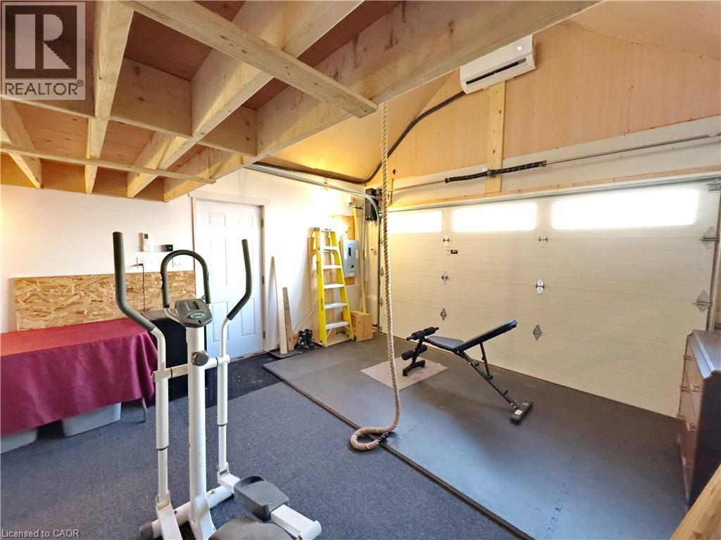 Experience the perfect balance of 1915 historic character and modern versatility in this charming gable-roofed century home, ideally located in downtown Guelph with excellent walkability and convenient access to transit, shops, parks, and everyday amenities. Exceptional curb appeal is enhanced by a cement and green “living” driveway—a permeable, eco-conscious parking solution that blends durability with natural aesthetics while supporting stormwater management and groundwater recharge. A welcoming covered front porch sets the tone and leads into a bright, sun-filled interior showcasing original hardwood floors and well-proportioned principal rooms. The spacious dining area flows seamlessly into a cozy living room anchored by a classic red gas stove, creating warmth and character. The kitchen features natural wood cabinetry, ample prep space, and a double gooseneck sink overlooking the side yard. A semi-finished mudroom offers future flexibility for customized storage or workspace and provides access to the rear sunken patio, ideal for outdoor grilling and entertaining. Upstairs, the primary bedroom features thoughtfully designed custom built-in storage (8 drawers and 3 doors), maximizing the home’s historic footprint without sacrificing functionality. A standout feature is the custom-built garage and studio (2020, $47K+), professionally finished and equipped with an air-source heat pump providing assistive, energy-efficient climate control. Skylights and a loft bed/den configuration make this an exceptional space for remote work, creative pursuits, or fitness use. Significant updates add confidence and long-term value: • 2023: New professional roof ($6,275) and water softener • 2022: Full bathroom renovation ($9,715) with subway tile and peek-a-boo shower window • 2017: High-efficiency furnace, A/C, and water heater ($9,492) A rare opportunity to secure a distinctive, well-maintained downtown Guelph property offering flexible living and working spaces. (id:4555)