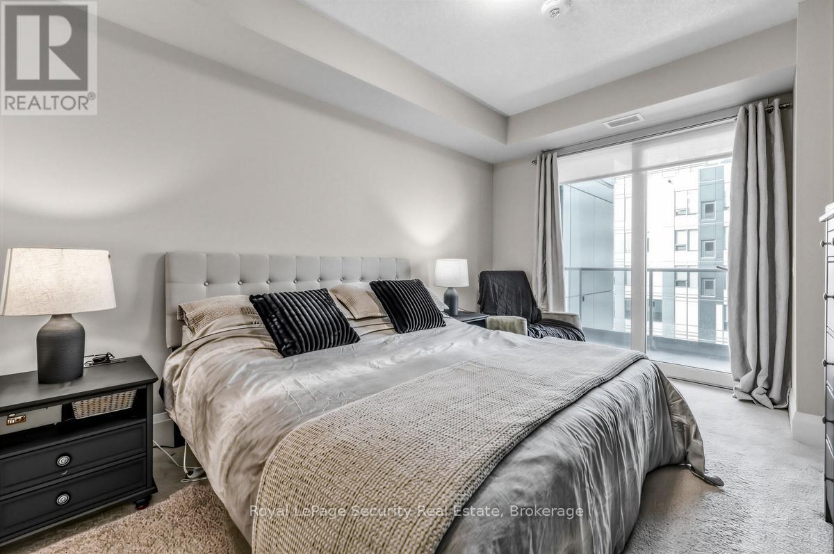 Welcome to luxury living in the heart of downtown Guelph at 73 Arthur Street. Perched on the 8th floor, this stunning 2-bedroom, 2-washroom suite is part of the building's exclusive Pyramid Collection, offering elevated design and premium upgrades throughout. Featuring upgraded flooring, high-end finishes, and upgraded appliances, this sophisticated residence blends style and comfort seamlessly. Extra ceiling height enhances the sense of space and fills the suite with natural light, creating a bright and airy atmosphere. The beautifully designed kitchen is anchored by a striking marble island perfect for entertaining, casual dining, or morning coffee. Step outside to your full-width private balcony and take in picturesque views of the Speed River and the city skyline an ideal setting to unwind or host guests. Copper Club offers an impressive selection of premium amenities including a guest suite, fully equipped fitness center, library/games room, speakeasy lounge, multi-purpose room with chef's kitchen and dining area, pet wash stations, and secure bike storage. Enjoy summer evenings outdoors with two shared firepits and five gas BBQs, perfect for entertaining and relaxing with friends and neighbors. The underground parking spot is conveniently located near the elevator door. Walking distance to great shopping, restaurants and public transportation. (id:4555)