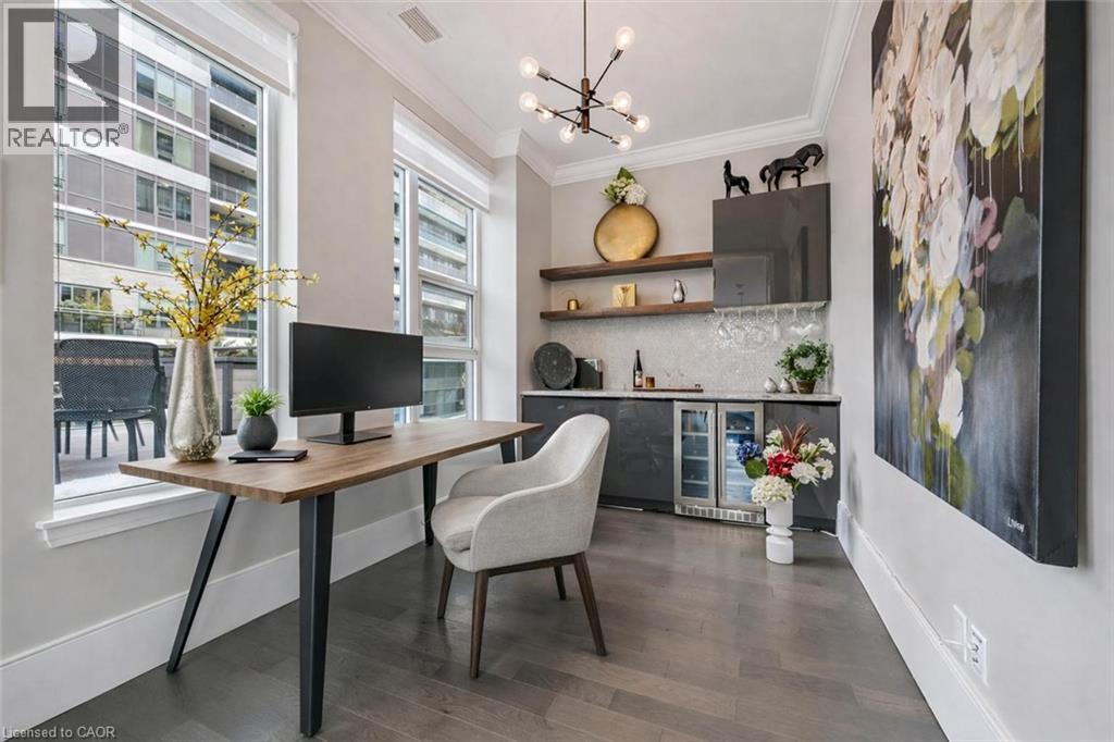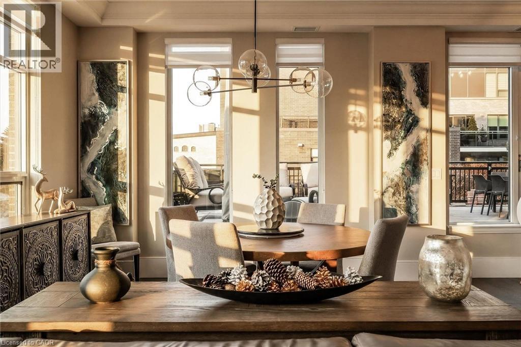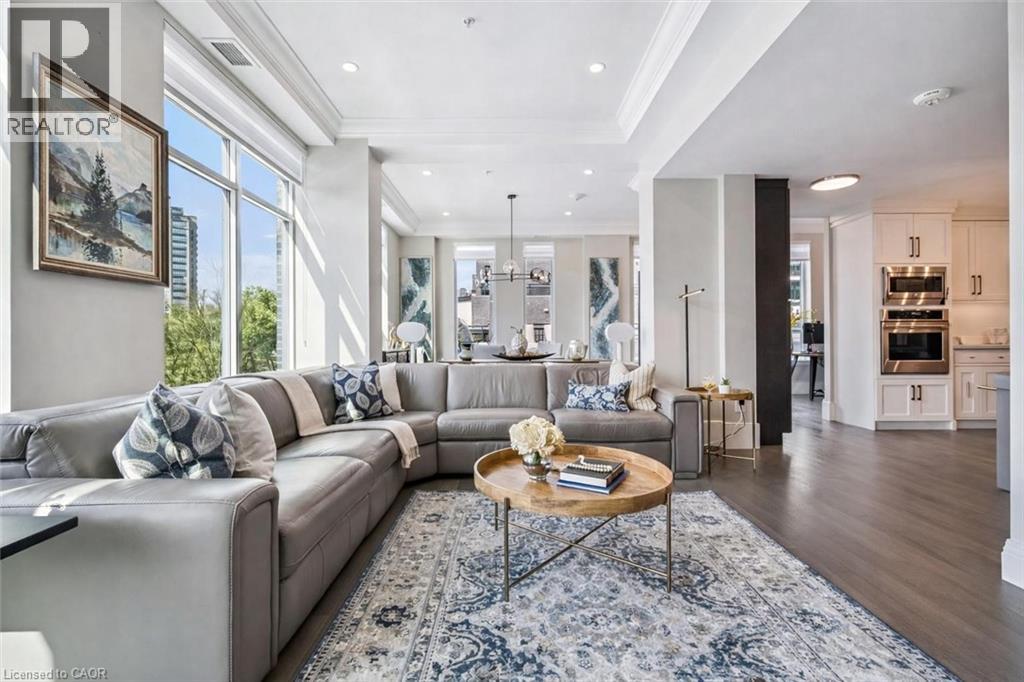 Stunning waterfront Bank House unit offering 1849sqft of sophisticated living & captivating river views! Located in the sought-after Metalworks complex just steps from downtown, this home delivers unparalleled blend of luxury, privacy & amenities in an unbeatable location. Perfect hybrid btwn penthouse elegance & detached-home, this unit offers best of both worlds. Enjoy low-maint. living & amenities of condo life while having the rare luxury of direct outdoor access from your unit to the River Walk. Designed W/privacy in mind only a small portion of guest bdrm shares a wall W/neighbouring unit creating a quiet atmosphere that feels like a detached home. Perfect for downsizers refusing to compromise on luxury or professionals seeking downtown living. Inside you’ll find hardwood, 10ft ceilings, 9in baseboards, wood doors & attention to detail. Main living area W/windows offer river views. LR W/10ft ceiling, feature wall & crown moulding. Dining area W/designer light fixture & ample room to host. 666sqft patio offers stunning views & room to lounge & dine. Private gate provides access to River Walk. Kitchen W/quartz counters, backsplash, S/S appliances, custom cabinetry & centre island W/bar seating. Bank of P/O pantry cabinets for storage. Primary bdrm with W/I closet & add'l dbl closet both W/custom organizers. Sliding doors lead to balcony. Ensuite W/quartz counters, dbl sinks, soaker tub & W/I glass shower. 3-panel mirrored medicine cabinet W/hidden storage & sep linen closet. 2nd bdrm with W/I closet & 4pc ensuite. Open-concept flex space offers B/I bar & beverage fridge, ideal as office or den & can be enclosed to create 3rd bdrm! 2pc bath, foyer W/dbl closet & laundry room. 2 underground parking spots & locker! Amenities: fitness, pet spa, guest bdrm, chef’s kitchen, library W/speakeasy lounge. Downtown offers restaurants, shops & nightlife. On weekends visit Farmers market & shows at The Bookshelf, Sleeman Centre & River Run. GO Train station is 2min walk away (id:4555)