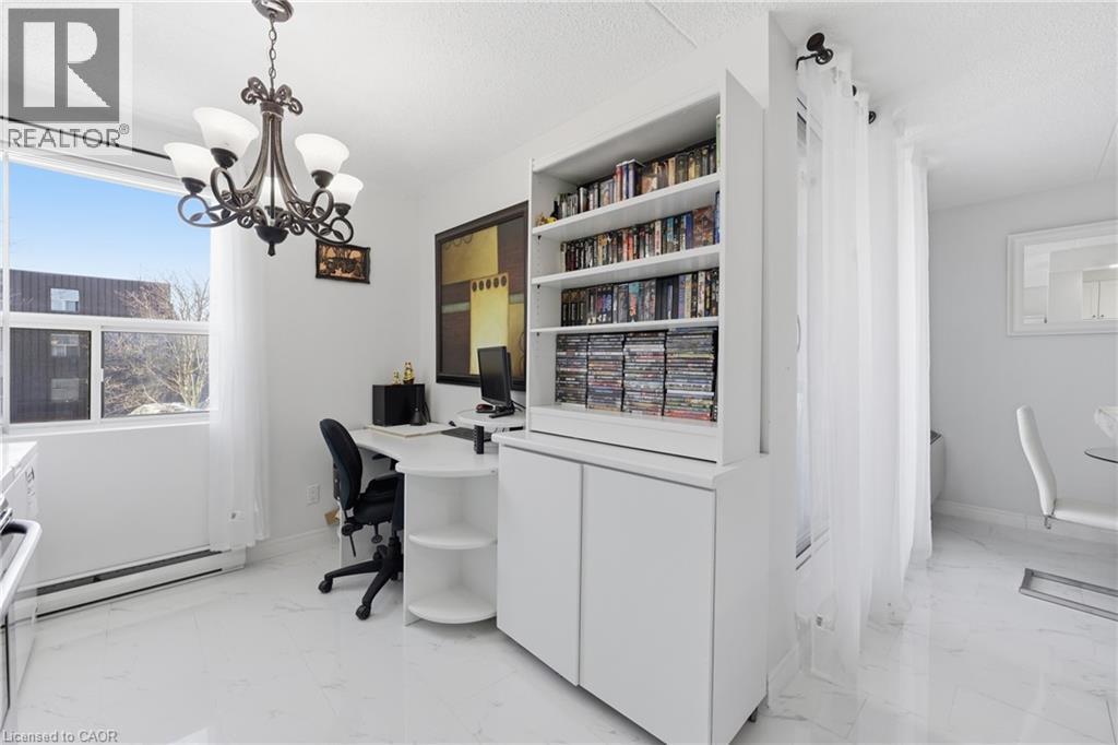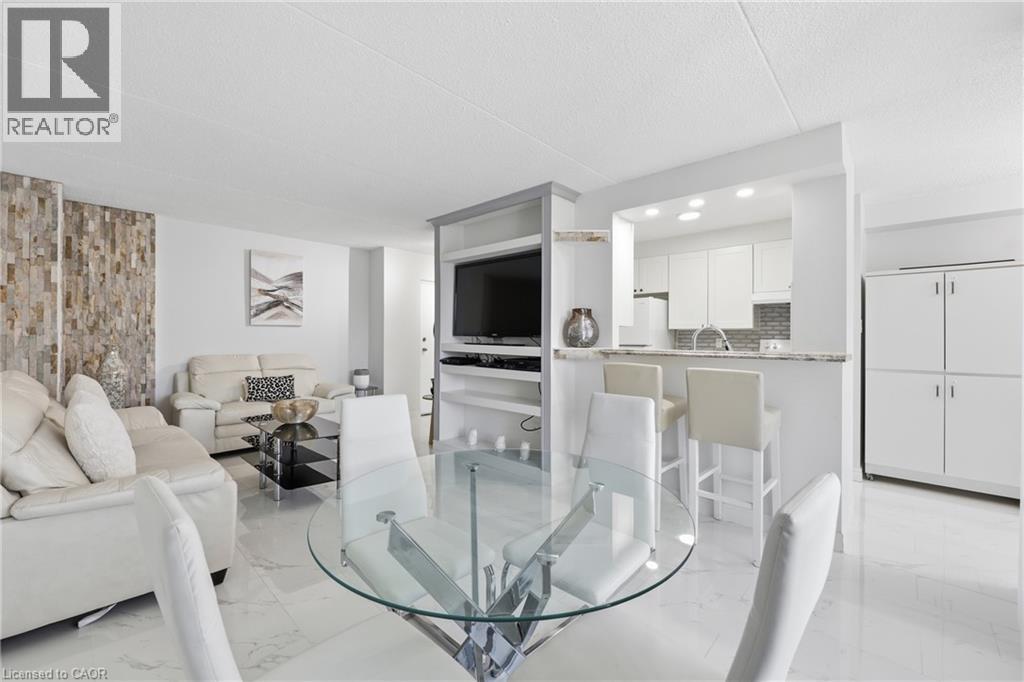 Welcome to 75 Silvercreek Parkway North, Unit 308, located in Guelph's West End. This bright, spacious, and updated corner unit is move-in ready. The two-bedroom, one-bathroom home features a fresh neutral paint palette and carpet-free living with luxurious vinyl plank and tile flooring throughout. The large living room leads to a private covered balcony with sliding doors, and large windows in every room provide ample natural light. The kitchen offers a sleek, contemporary design with pot lights, abundant cabinetry, a beautiful tile backsplash, and recently updated appliances (2024/2025). The kitchen flows seamlessly into the dining room, perfect for family dinners and entertaining.The primary bedroom includes a walk-in closet, and this unit offers plenty of storage throughout. For added convenience, the unit is located near the elevator and includes a dedicated parking spot close to the building entrance, along with ample visitor parking.Ideally situated near schools, parks, restaurants, the Hanlon Parkway, and the University of Guelph, this property is an excellent opportunity for first-time buyers, young families, investors or those looking to downsize.This is one unit not to be missed! (id:4555)