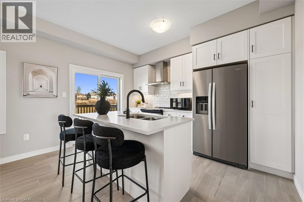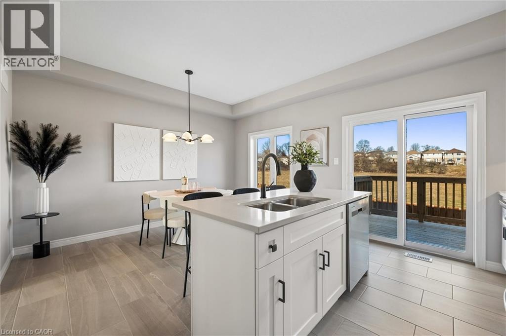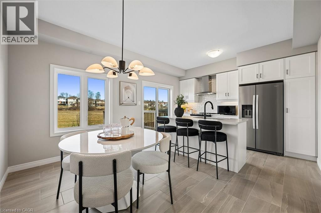 Welcome to 23 Sora Lane, located in the vibrant and growing Sora community in Guelph’s desirable east end. Surrounded by parks, trails, schools, and everyday amenities, this family-friendly neighbourhood offers the perfect balance of modern living and community charm. Thoughtfully built by Fusion Homes, this never-lived-in residence offers almost 1700 sq. ft. of finished living space, featuring 3 bedrooms, 3.5 bathrooms, and an attached garage. The main floor is designed for effortless living and entertaining, with an airy open-concept layout enhanced by quartz countertops and curated designer finishes throughout. The modern kitchen is both functional and stylish, complete with premium stainless-steel appliances and almost 100k in included upgrades that elevate the home’s overall appeal. Upstairs, the primary retreat includes a walk-in closet and a spa-inspired ensuite with a glass-enclosed shower. Two additional well-proportioned bedrooms and a contemporary shared bathroom complete the upper level. The walk-out basement offers outstanding versatility, ideal for a home office, recreation room, or guest accommodations. Offered fully furnished*, this home provides a true turnkey option well-suited for investors, university-bound occupants, busy professionals, or families relocating to the area (*inquire for details). Experience the Fusion Homes' difference, including their unrivaled home warranty that averages 2X the industry standard. Along with private garage parking and convenient access to nearby parks, and shopping. 23 Sora Lane delivers modern, low-maintenance living in one of Guelph’s most sought-after neighbourhoods. Designer Furnishing included in your purchase! (id:4555)