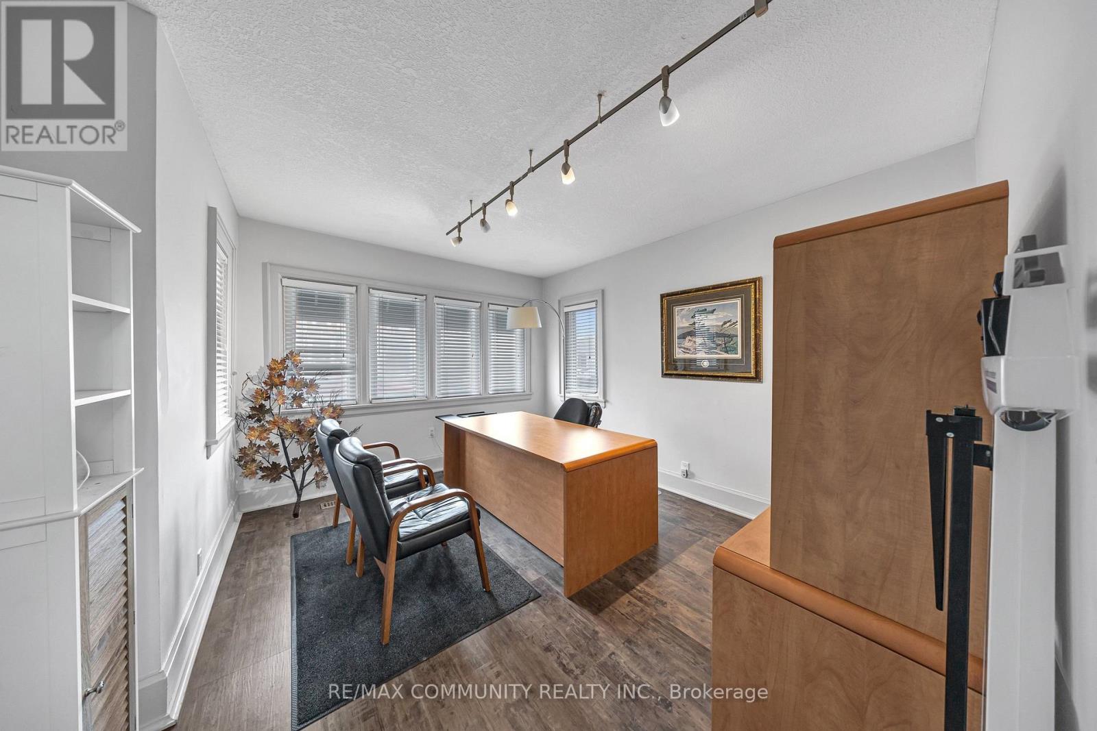 327 Woolwich St is a versatile mixed-use property offering strong potential for investors or owner-occupiers. The main floor features commercial office space with a reception/waiting area, kitchenette, and bathroom, along with a rear entrance leading directly to a convenient rear parking area. A front accessibility ramp provides easy entry for visitors and clients. The second and third floors can function as a separate residential unit with two bedrooms, a full kitchen, or be configured as additional office space. Both the commercial space and upper unit have separately metered utilities, providing flexibility for mixed-use or multi-tenant occupancy. The property also includes basement storage with a separate entrance, offering additional functional space. An excellent opportunity for businesses or investors seeking a flexible property with multiple potential uses. (id:4555)