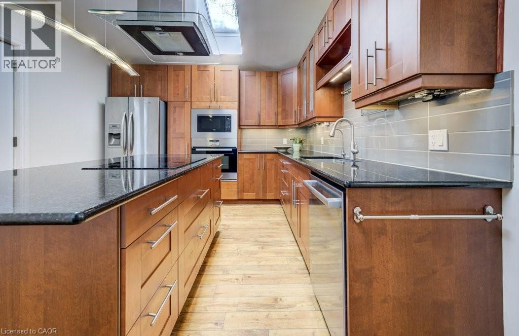 Backing onto peaceful conservation land, this freshly painted family home offers space, privacy, and the added benefit of a legal 1-bedroom basement apartment. Imagine preparing your favourite meal while enjoying tranquil views of the green space behind, then stepping out to entertain on the expansive two-tiered deck—perfect for summer BBQs with family and friends. The extremely private backyard also features gated access to scenic walking trails, ideal for nature lovers. The main floor offers excellent flexibility with a bedroom or home office, a convenient 3-piece bathroom, and main floor laundry. Upstairs, you’ll find three generously sized bedrooms and a spacious 5-piece main bathroom, providing plenty of room for the whole family. The thoughtfully designed legal basement apartment includes its own private entrance and separate laundry, making it ideal for extended family, guests, or additional income potential. Additional highlights include updated windows and mechanicals, an extra-wide driveway, and an unbeatable location within walking distance to Stone Road Mall and the University of Guelph, public transit, and quick access to the Hanlon Expressway and Highway 4 (id:4555)