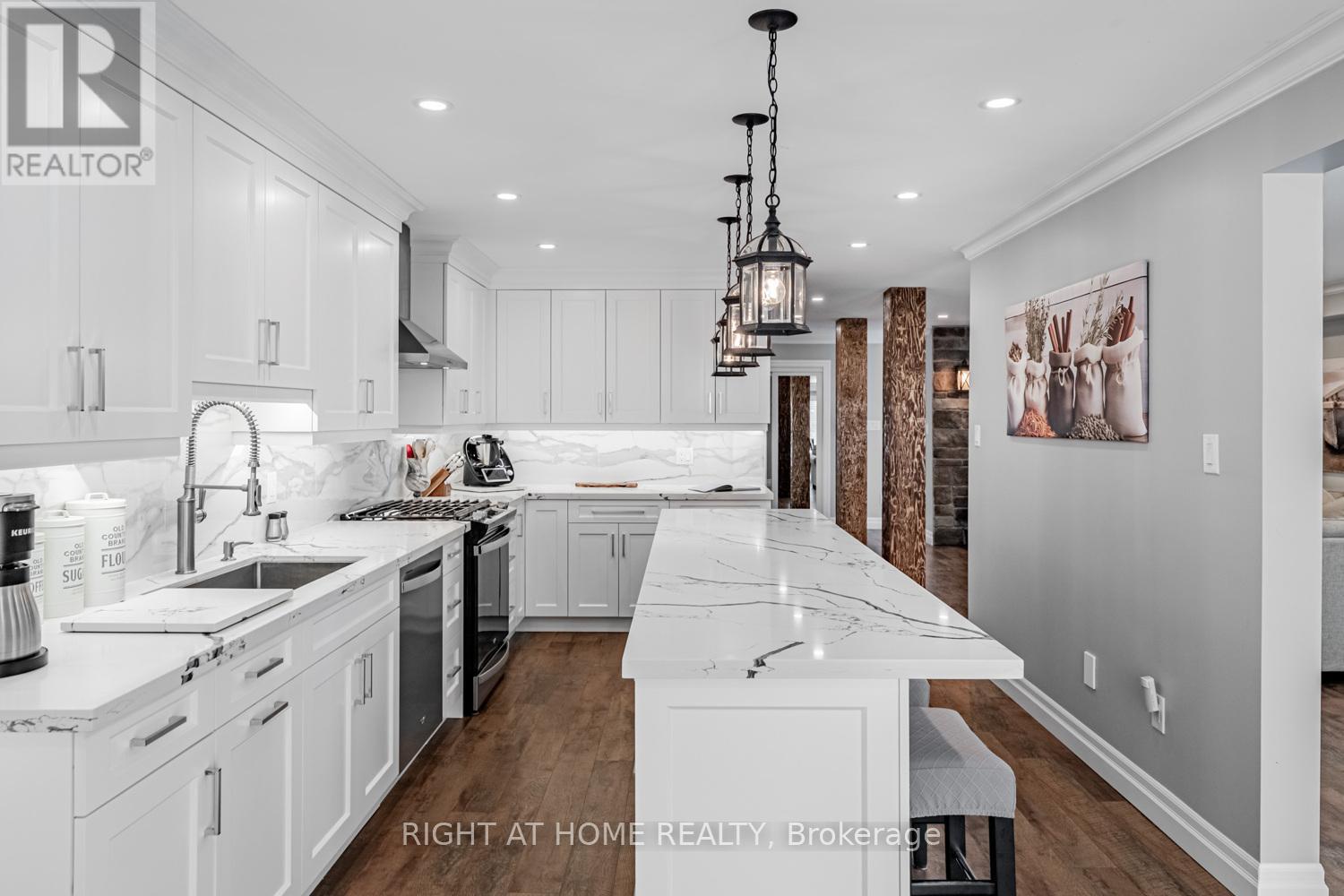 **See Virtual Tour*** Legal Basement Apartment/In Law-Suite!!! You must see this beautifully appointed property before it's too late. Living in Luxury and in the most desirable neighborhoods in Guelph is every buyer's delight. The main floor welcomes you with a very spacious open concept living and dining room with a beautiful natural stone mantel/media wall unit and electric fireplace, pot lights, flat ceilings, crown moldings, lots of windows and a convenient lower level laundry room. The chef's kitchen which has been recently renovated will have you want to cook dinners for your family and friends every day! It offers a huge island, quartz counters, gas stove, stainless steel appliances and lots to cabinet space. As you head upstairs the elegant, modern and curved solid oak staircase leads you to the 2nd floor which offers 4 very spacious bedrooms each designed with comfort in mind, good size closets and sunlight galore. Indulge in this oversized Master bedroom with a large window, Walk-In Closet and renovated luxurious en-suite bathroom with a separate shower, his and hers sink and soaker tub. The lower level leads to a fully finished legal and separate entrance basement apartment with a huge open concept living room, kitchen, full bathroom, egress windows, separate laundry room, lots of storage and double drywall with insulation for sound proofing. Enjoy this fully fenced Backyard oasis which offers privacy with no back neighboring window in sight and gazebo for privacy. Conveniently located near YMCA, shopping, Hwy 401, schools and transportation. Don't wait!!! This is your "Home Sweet Home". (id:4555)