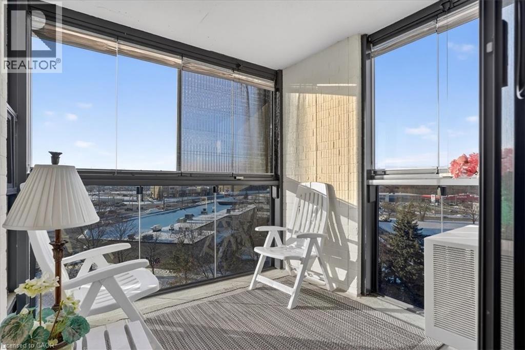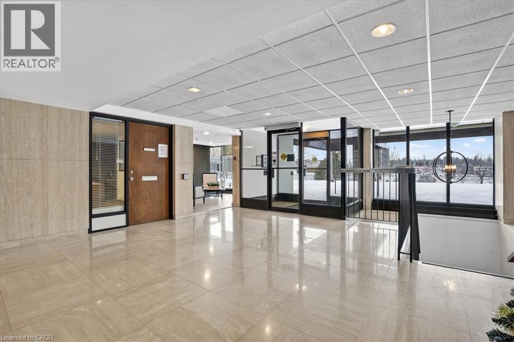 Super bright, 1380 sq ft CORNER unit in sought after complex of Riverside Park area in Guelph. HEAT, HYDRO, WATER included in condo fees! Excellent layout with floor to ceiling windows, sunroom/balcony with great sunset views. Large open concept design featuring formal Living, Dining rooms and spacious eat-in Kitchen offering ample cabinets and counter space. 3 good sized Bedrooms, one is used as a Den/Office with built-in wall unit, 3pc main bath and the Primary with 2pc ensuite. Tons of storage, in-suite laundry and one assigned parking space in covered garage. Very clean and airy home. Well maintained building with many amenities including: tennis courts, outdoor pool, sauna, games room, gym, guest suite, community rooms, library, workshop and more. Located in walking distance to Riverside Park, shopping, restaurants, trails, public transit and easy access to major routes. (id:4555)