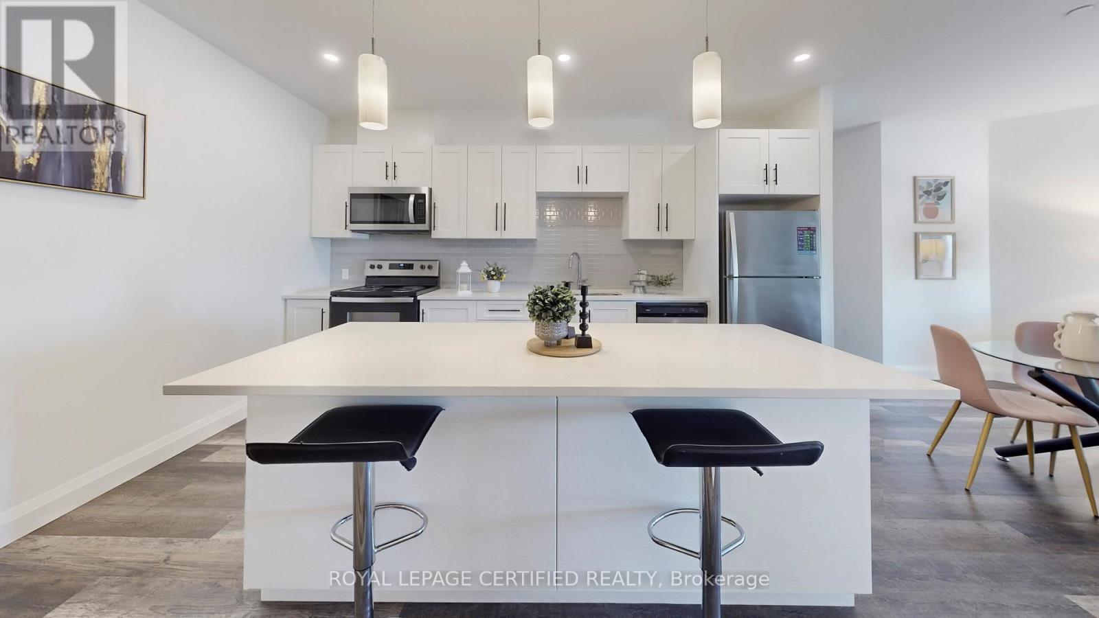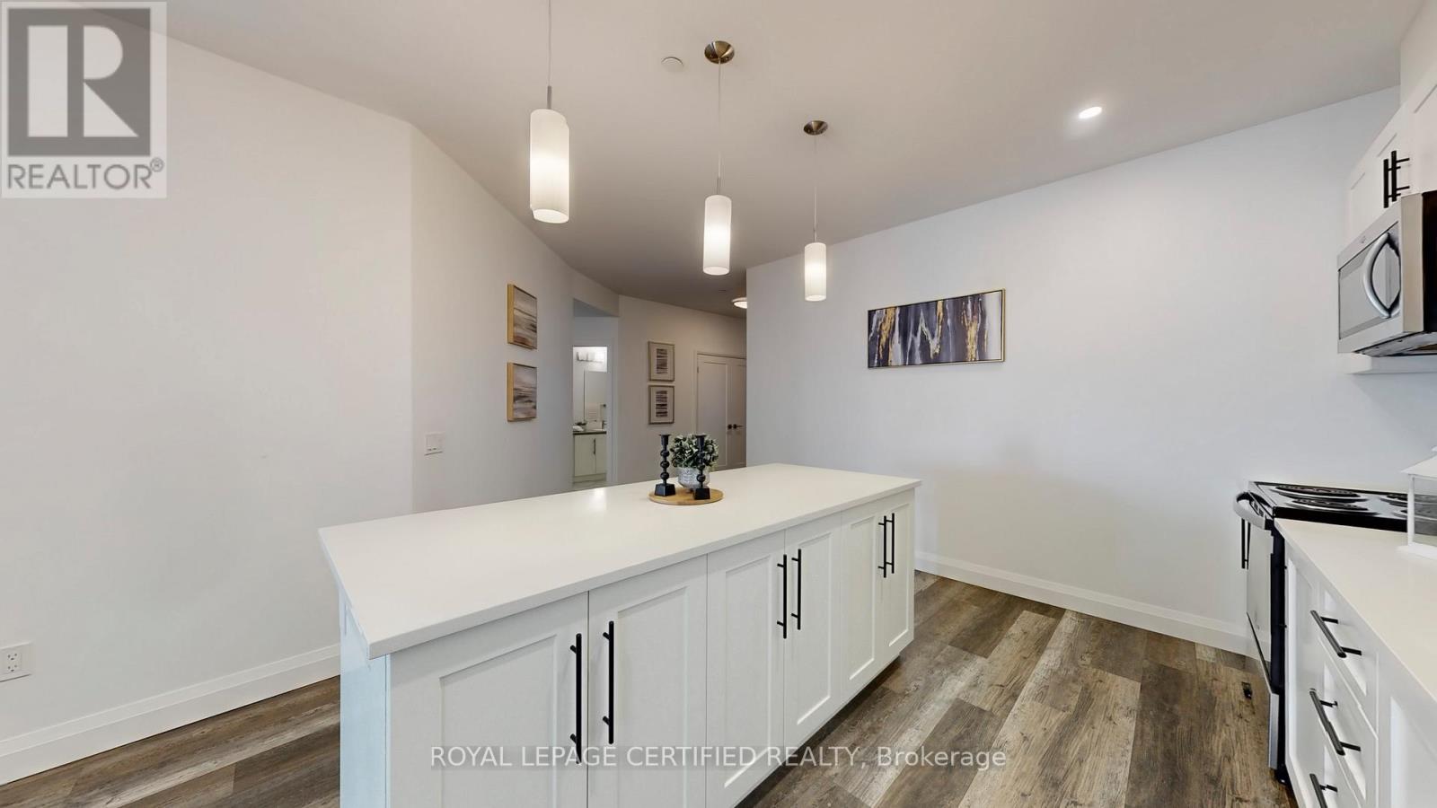 Executive Condo! This upscale South Hill suite offers a bright, open concept layout with complimenting décor and soaring 9 ft ceilings. The stunning eat in kitchen features sleek white cabinetry, quartz countertops, stainless steel appliances, pot lighting, and a centre island with pendant lighting-perfect for meal prep and casual dining at the breakfast bar. In addition to large eat-in kitchen, you will find two working spaces. The large den at the entrance is ideal for your home office with personal library. The second den beside kitchen is ideal add on space for play area or gaming room. The spacious living room is enhanced with modern vinyl plank flooring and a large sliding door that opens to a private balcony, creating an inviting indoor and outdoor flow. This suite includes 1 underground parking space and 1 locker for added convenience. (id:4555)