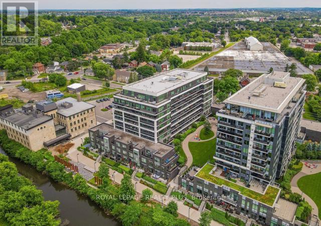 This stunning suite offers approx. 657 sqft of living space including the balcony. The perfect blend of modern elegance. Thoughtfully designed with a spacious open-concept layout, it's ideal for both relaxed living and effortless entertaining. The dining area flows seamlessly into a bright, inviting living space, externing onto an oversized balcony-your private outdoor retreat to unwind. Inside, the upgraded kitchen is sure to impress, featuring sleek quartz counter-tops, stainless steel appliances, updated flooring throughout, a generous bathroom, in-suite laundry, and underground parking. Bu what truly sets this opportunity apart is the lifestyle. This complex offers resort-style amenities; a gym, elegant party room, pet spa, and beautifully designed outdoor spaces complete with BBQs and fire-pits. Enjoy the exclusive lounge, host unforgettable evenings in the Chef's Kitchen with private dining for 12, or simply relax in the Wi-Fi Lounge. Step outside and you're instantly connected to nature and the city. Located along the Speed River, with direct access to scenic trails leading all the way to Guelph Lake, and just steps to downtown restaurants, cafes, boutiques, and the Go Station - making commuting to Toronto effortless. This is the one buyers wait for. Book your private showing today - and experience it yourself. (id:4555)