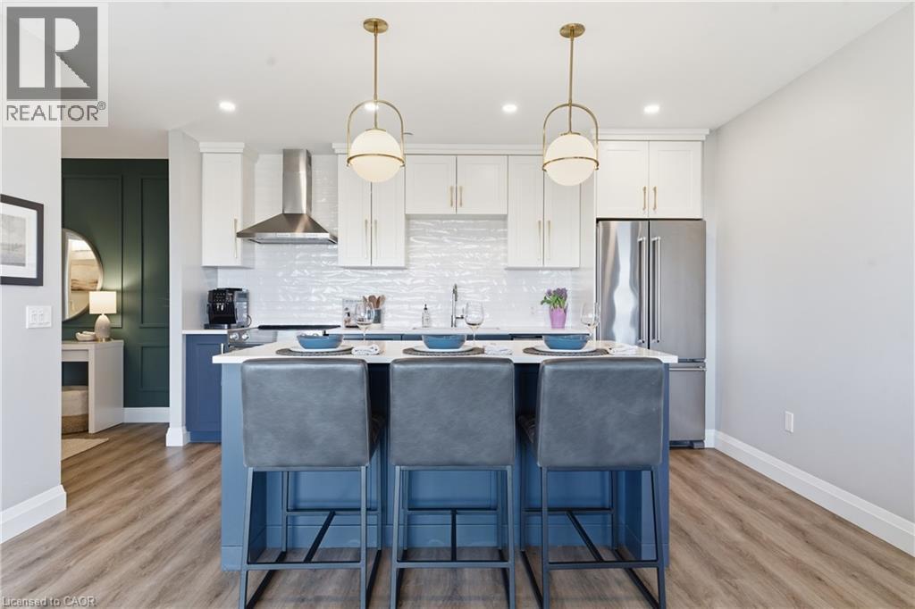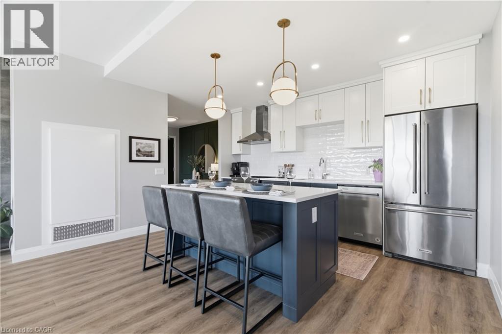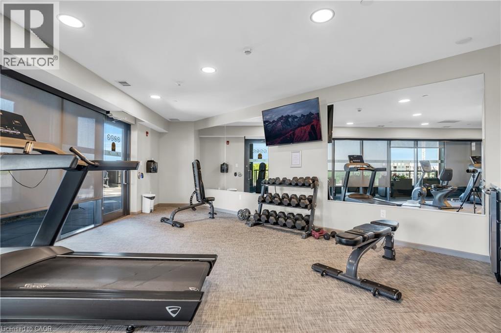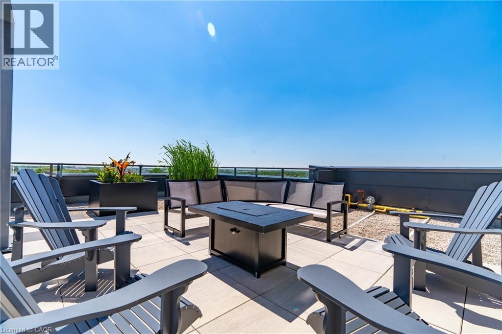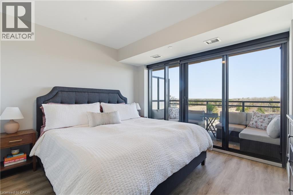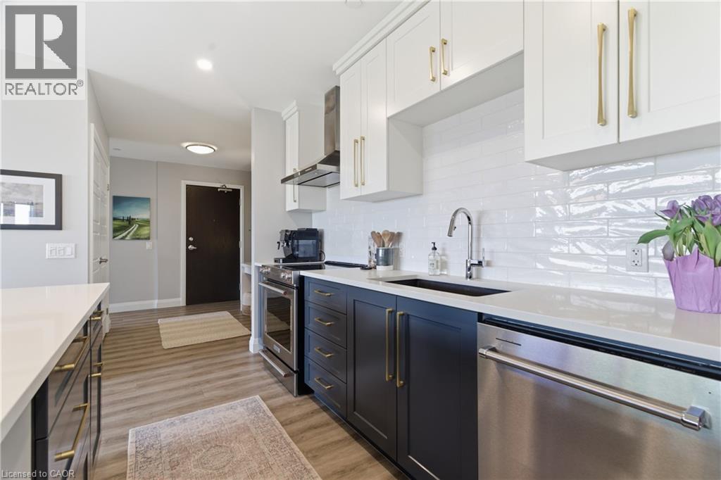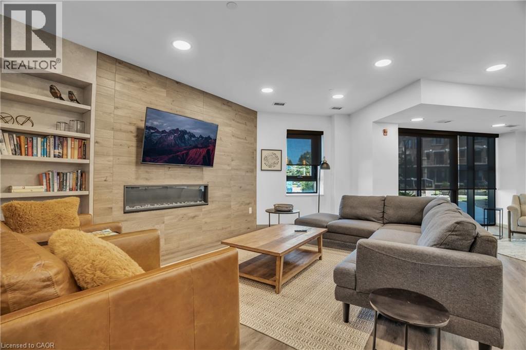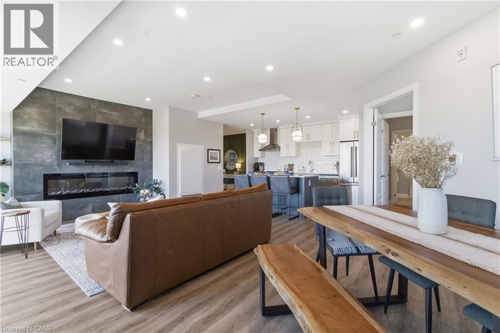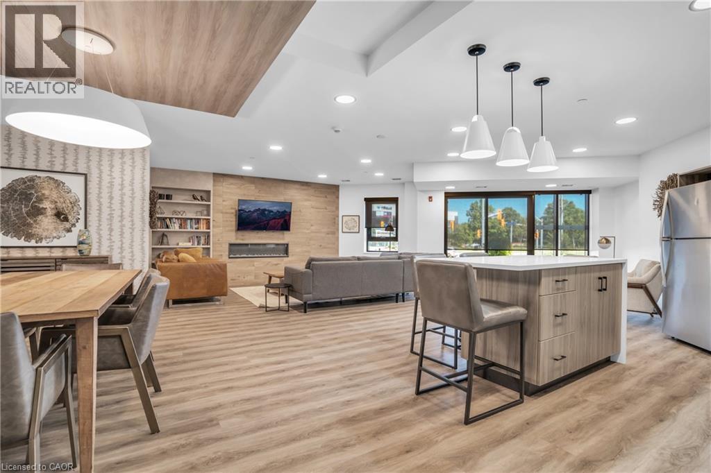 Welcome to penthouse living at its finest in the heart of South Guelph. Perched above the trees, this renovated 2-bedroom, 2-bathroom condo offers a rare combination of privacy, space, and truly unobstructed views of lush greenery. Spanning just under 1,300 square feet, the thoughtful floor plan offers an ideal balance of open-concept living and well-separated bedroom spaces—perfect for both everyday comfort and entertaining. The main living area is flooded with natural light from expansive floor-to-ceiling windows, creating a bright and inviting atmosphere while showcasing the stunning panoramic views. Fully renovated from top to bottom, this suite features modern finishes throughout, including stylish accent walls and a sleek built-in fireplace with TV mount—creating a true focal point in the living space. The kitchen connects to the dining and living areas, making it ideal for hosting or relaxing. The spacious primary bedroom retreat includes walk-in closet and a beautifully updated ensuite, while the second bedroom offers flexibility for guests, an office, or growing family. Enjoy the luxury of two private balconies—perfect for coffee, unwinding, or simply taking in the peaceful surroundings. With desirable southern exposure, the unit is bathed in natural sunlight throughout the day. This condo offers a low-maintenance lifestyle—no stairs, no grass to cut, and no snow to shovel. Underground parking adds year-round convenience and ease. Residents also enjoy access to premium building amenities, including a fully equipped gym, a stylish party room for entertaining, and a dedicated media room—adding even more value and lifestyle appeal to this exceptional property. Located just minutes from everything you need, you’re only a 5-minute drive to the highway and just 2 minutes from grocery stores, dining, gyms, and parks—offering the perfect blend of tranquility and accessibility. A rare penthouse opportunity in one of Guelph’s most sought-after neighbourhoods. (id:4555)
