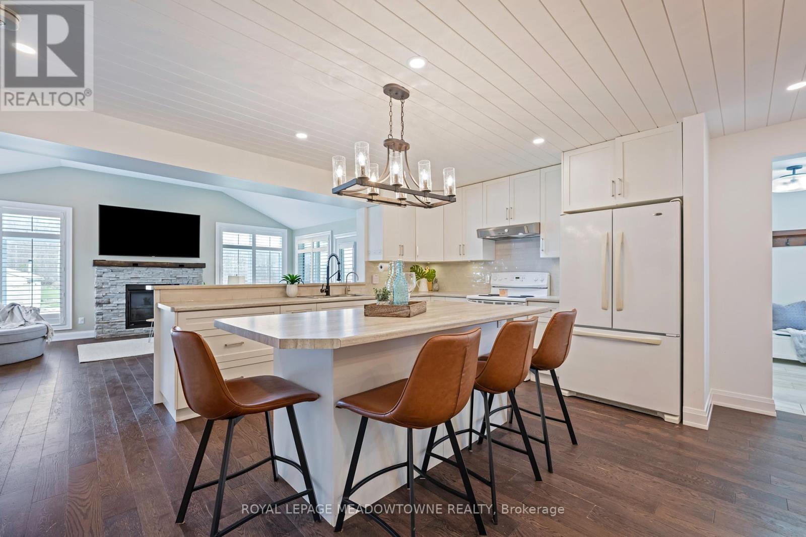 Welcome to your dream home, set on a scenic just-under-2-acre lot only minutes north of Guelph. This stunning detached residence offers over 3,000 sq. ft. of beautifully designed living space, combining modern luxury with the tranquility of country living. The bright, open-concept kitchen is the heart of the home, featuring a large central island with breakfast bar, walk-in pantry, and a dedicated coffee bar-perfect for entertaining or everyday family life. The main-floor primary suite provides a private retreat with a spa-inspired five-piece ensuite and custom built-in closet organizers. Upstairs, three generously sized bedrooms each include walk-in closets, offering exceptional storage, while second-floor laundry adds everyday convenience. The finished basement extends your living space with an additional bedroom and a stylish three-piece bathroom complete with heated floors-ideal for guests or extended family. Step outside to the inviting front porch and take in peaceful views and breathtaking sunsets. A standout feature of the property is the impressive 630 sq. ft. shop, equipped with 120-amp service and a woodstove, perfect for hobbies, storage, or a workshop. This exceptional property delivers space, comfort, and countryside charm in a location that truly has it all. (id:4555)