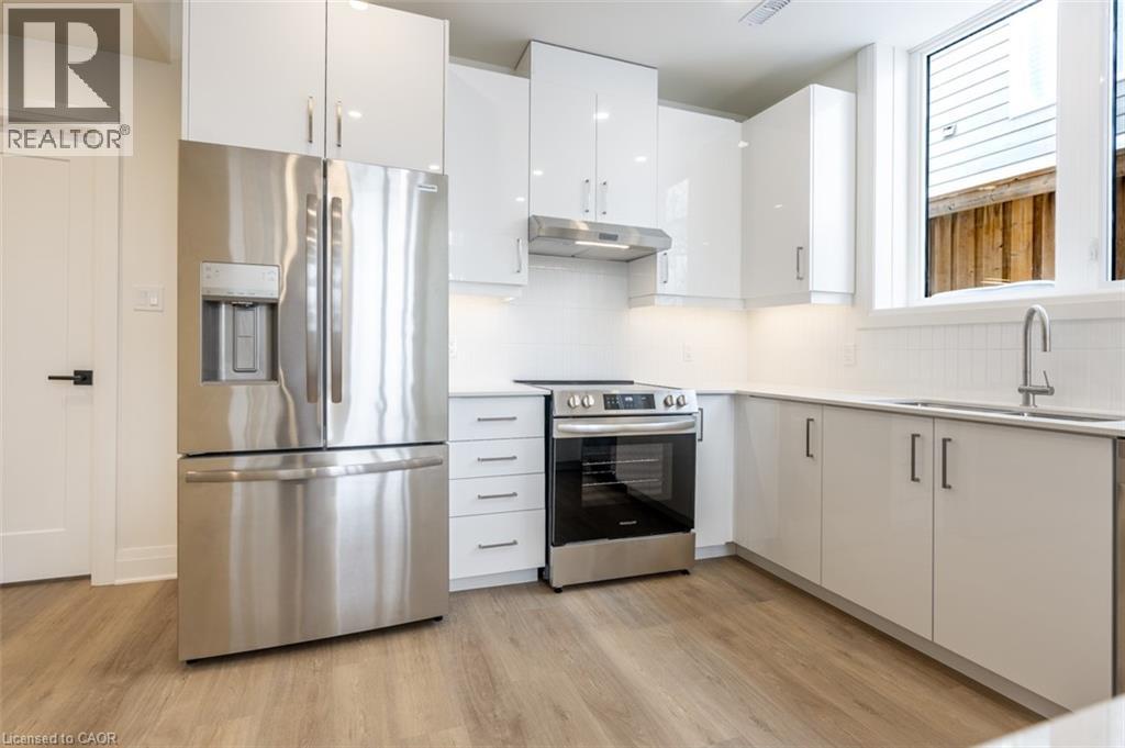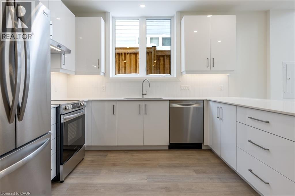 Welcome to this bright and modern lower-level apartment offering approximately 950 square feet of thoughtfully designed living space in a quiet, sought-after setting. The standout feature is the dramatic living room with soaring 20-foot ceilings and expansive windows that fill the home with natural light — a unique feature not found in homes like this. The contemporary kitchen includes under-cabinet lighting, clean finishes, and a functional layout perfect for everyday living. This unit features two bedrooms, a four-piece main bathroom, plus an additional two-piece powder room for added convenience. Step outside to your private covered patio, ideal for relaxing or enjoying fresh air year-round. Even better, the unit includes two tandem driveway parking spaces — something most rentals of this size simply don’t offer. Tucked away at the end of a quiet street and overlooking forest and parkland, this is the perfect place to call home. (id:4555)