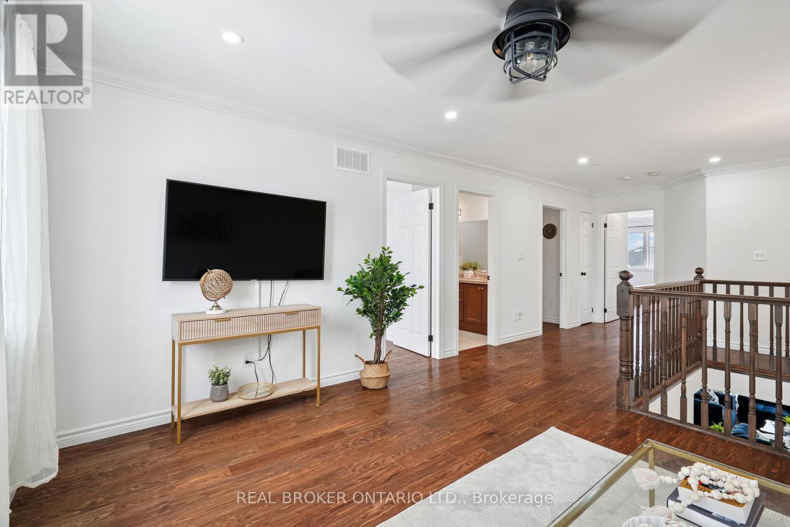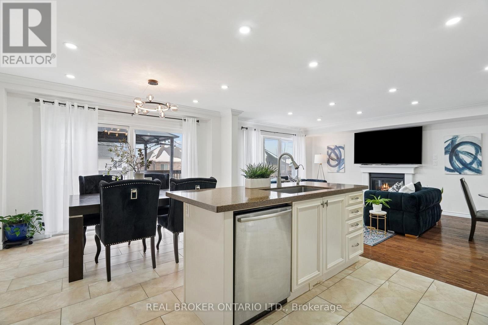 Welcome to 132 Coker Crescent in the heart of Rockwood, a beautifully maintained detached family home on a generous 36 x 116 ft lot in one of the community's most sought-after neighbourhoods. From the moment you step inside, you'll appreciate the bright and open main floor layout designed for everyday family living. The combined living and dining room features hardwood flooring, elegant crown moulding, pot lights, and a cozy gas fireplace. Large windows allow natural light to pour in. The kitchen is truly the heart of the home, complete with quartz countertops, a stylish stone backsplash, stainless-steel appliances, gas stove, centre island, pantry, and pot lights. The adjoining breakfast area includes crown moulding and a walk-out to a raised deck. Perfect for summer barbecues. Convenience is key with main floor laundry and direct access to the double car garage. A 2-piece powder room completes this level. Upstairs, hardwood flooring continues throughout. A spacious second-floor family room offers additional living space with crown moulding, ceiling fan, and large windows. Ideal for movie nights or a kids' hangout area. The primary bedroom retreat features a walk-in closet and a 5-piece ensuite designed for relaxation. Two additional generously sized bedrooms with double closets share a well-appointed 5-piece main bathroom, making busy mornings easy. The finished walk-out basement expands your living space beautifully. The recreation room includes a gas fireplace, and above-grade windows that keep the space bright and welcoming. With a fourth bedroom, 3-piece bathroom, patio walk-out, and cold storage, this level is perfect for teens, guests, or extended family. With parking for up to six vehicles, including a double car garage and four-car driveway, this home checks every box for modern family living in Rockwood. If you are searching for a detached home with finished walk-out basement near parks and conservation areas, this is the one. (id:4555)